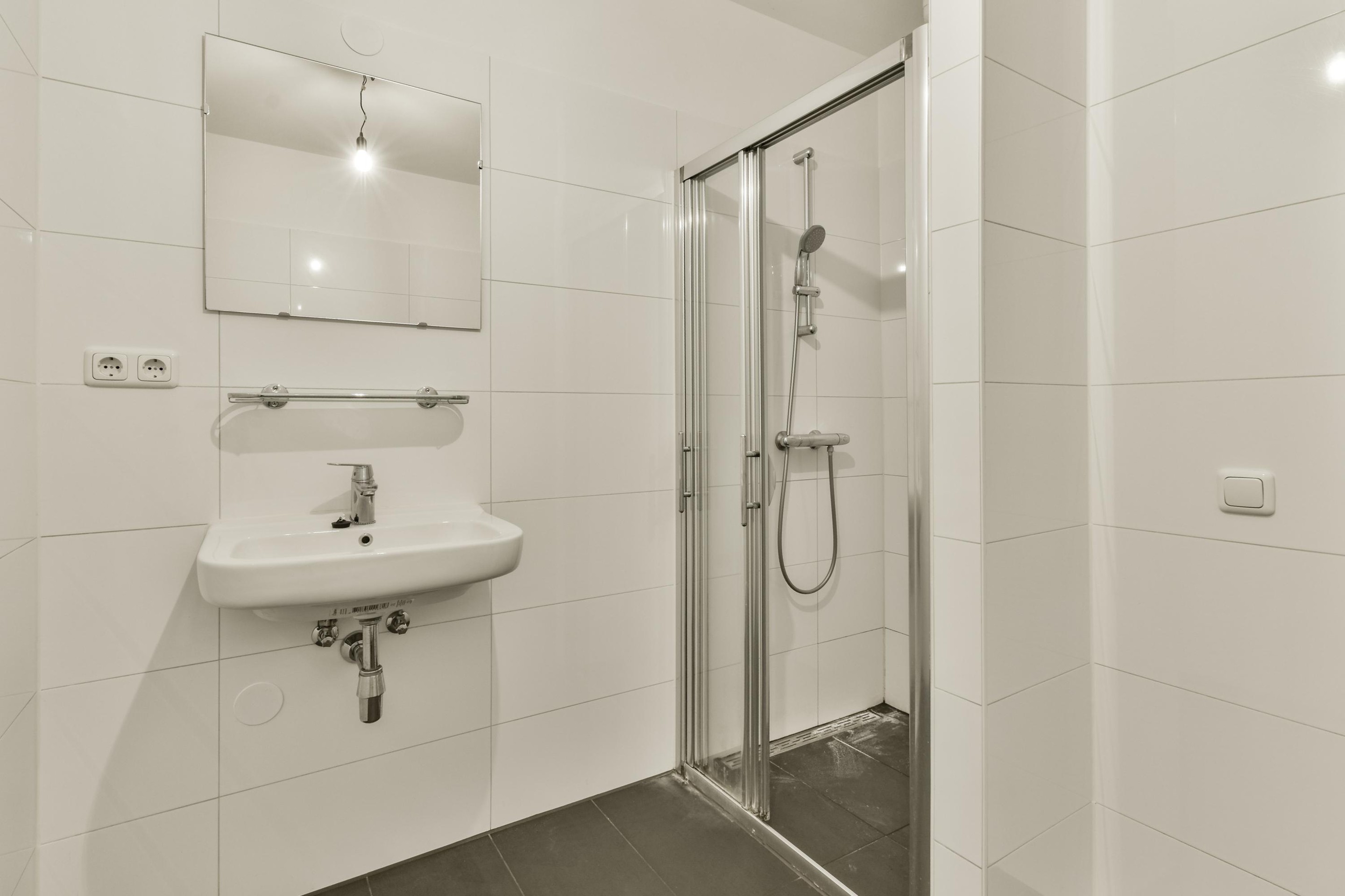 - Eenvoudige badkamer voorzien van douche en wastafel