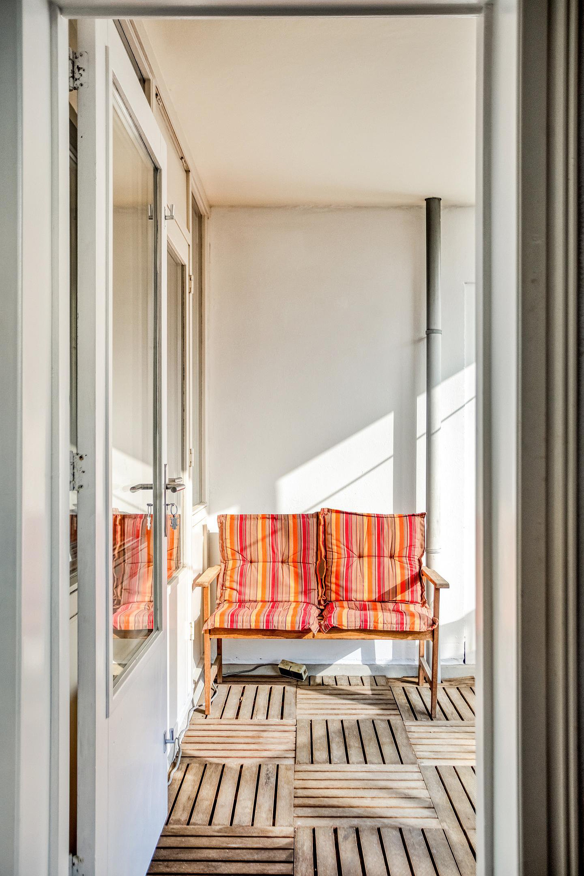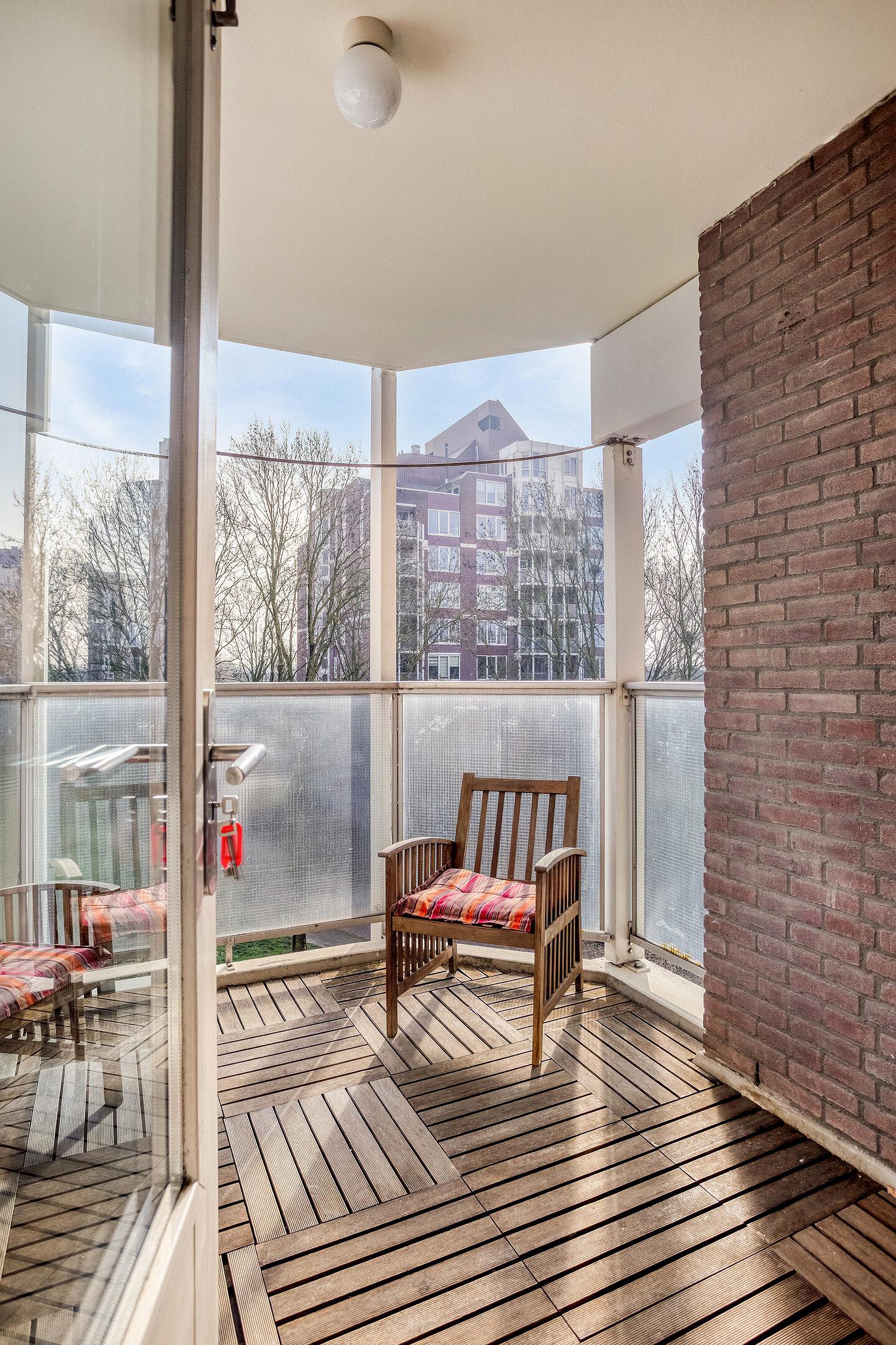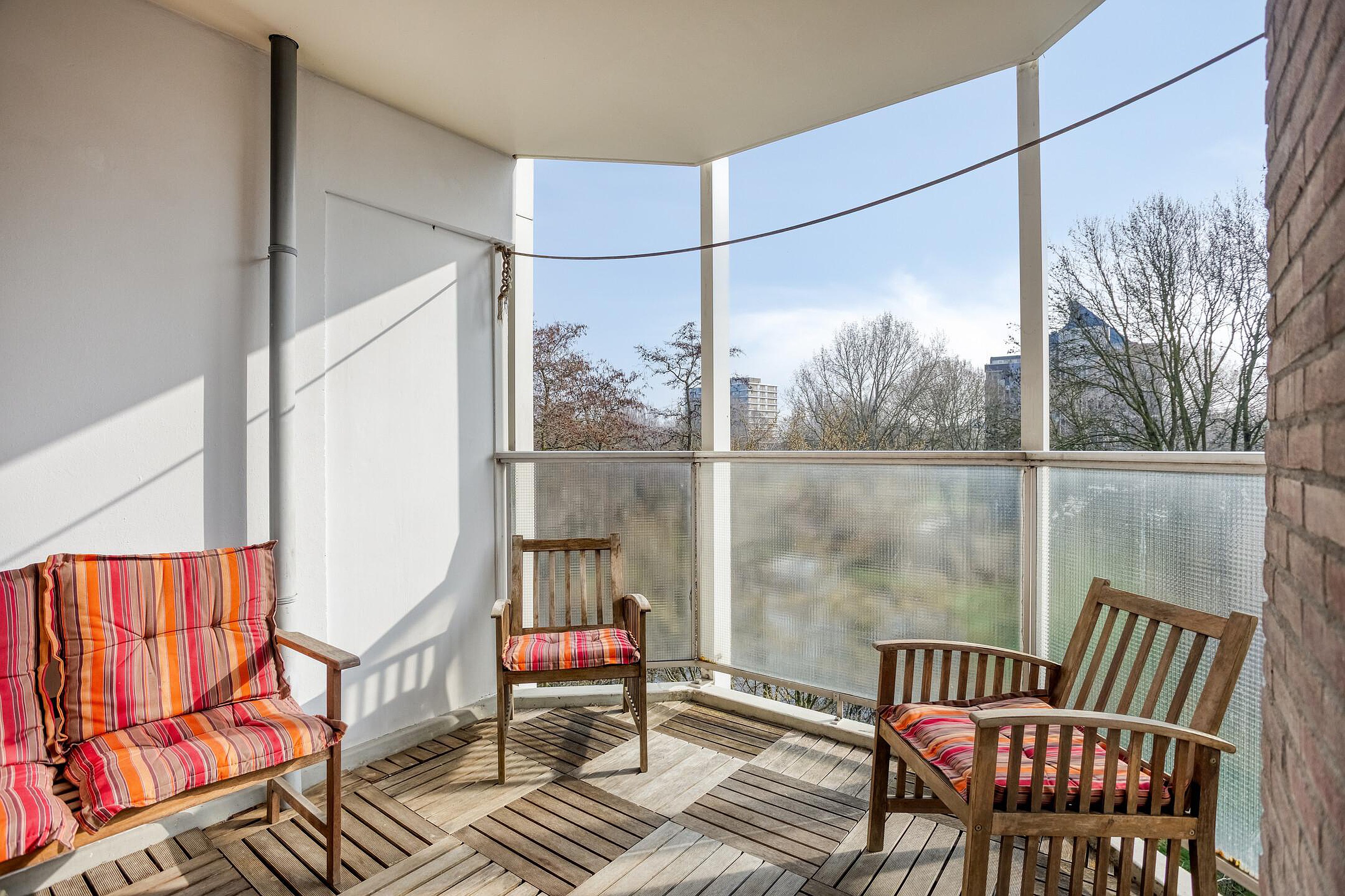 Vanuit de woonkamer is er toegang tot het balkon op het oosten, waar u heerlijk kunt genieten van de ochtendzon en het vrije uitzicht.