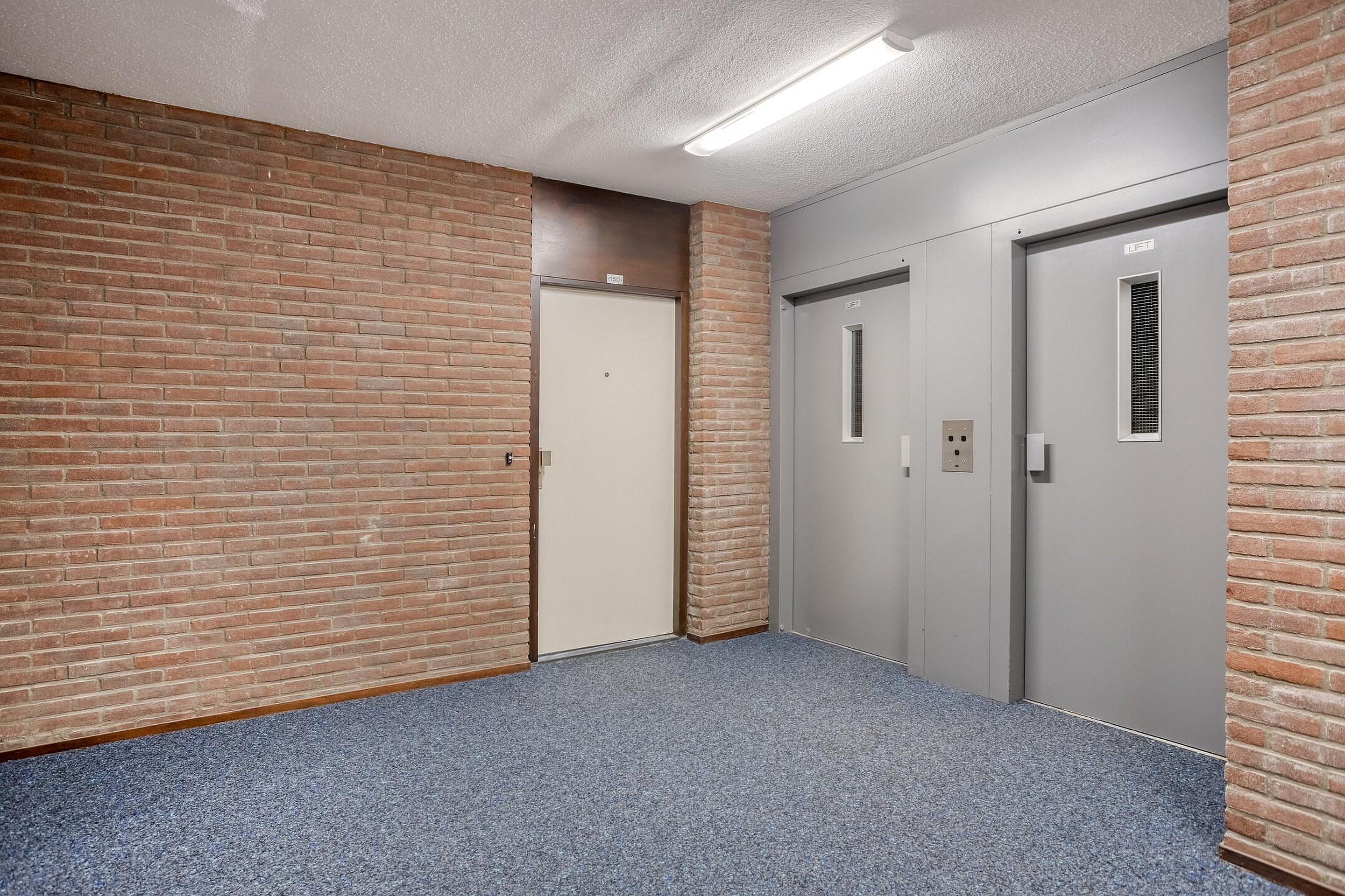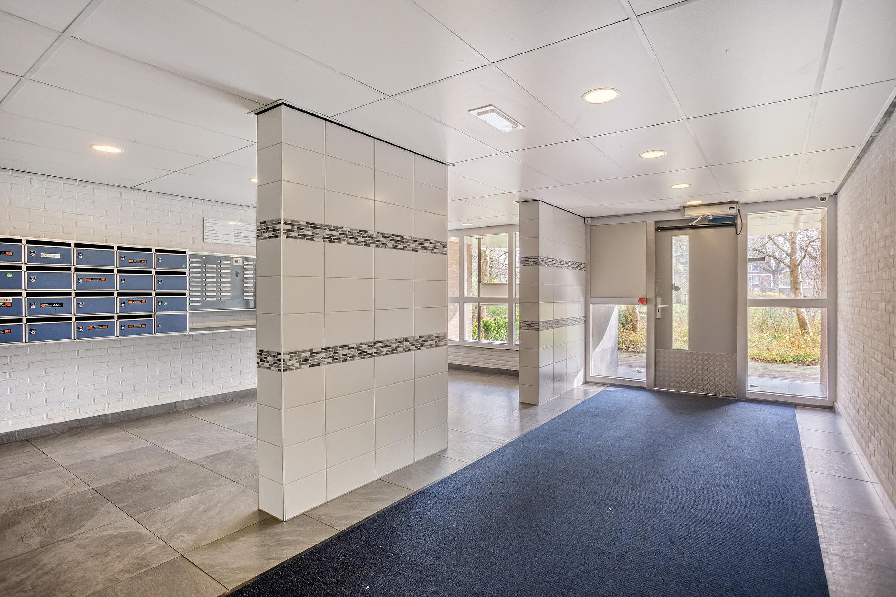 Centrale entree met bellentableau, brievenbussen, liften en trappenhuis.