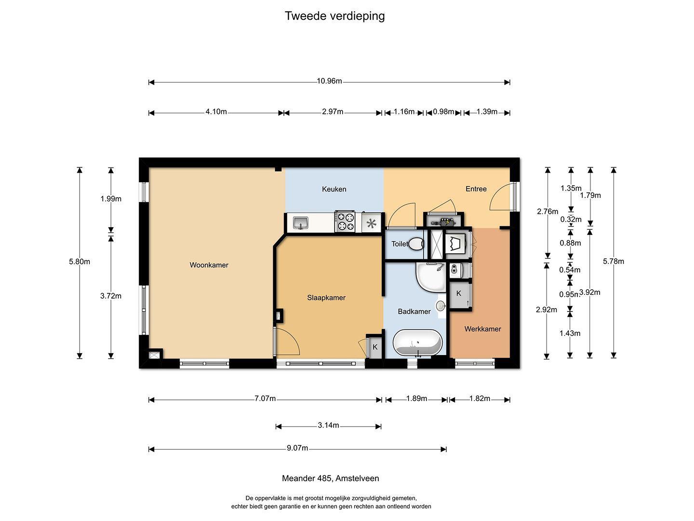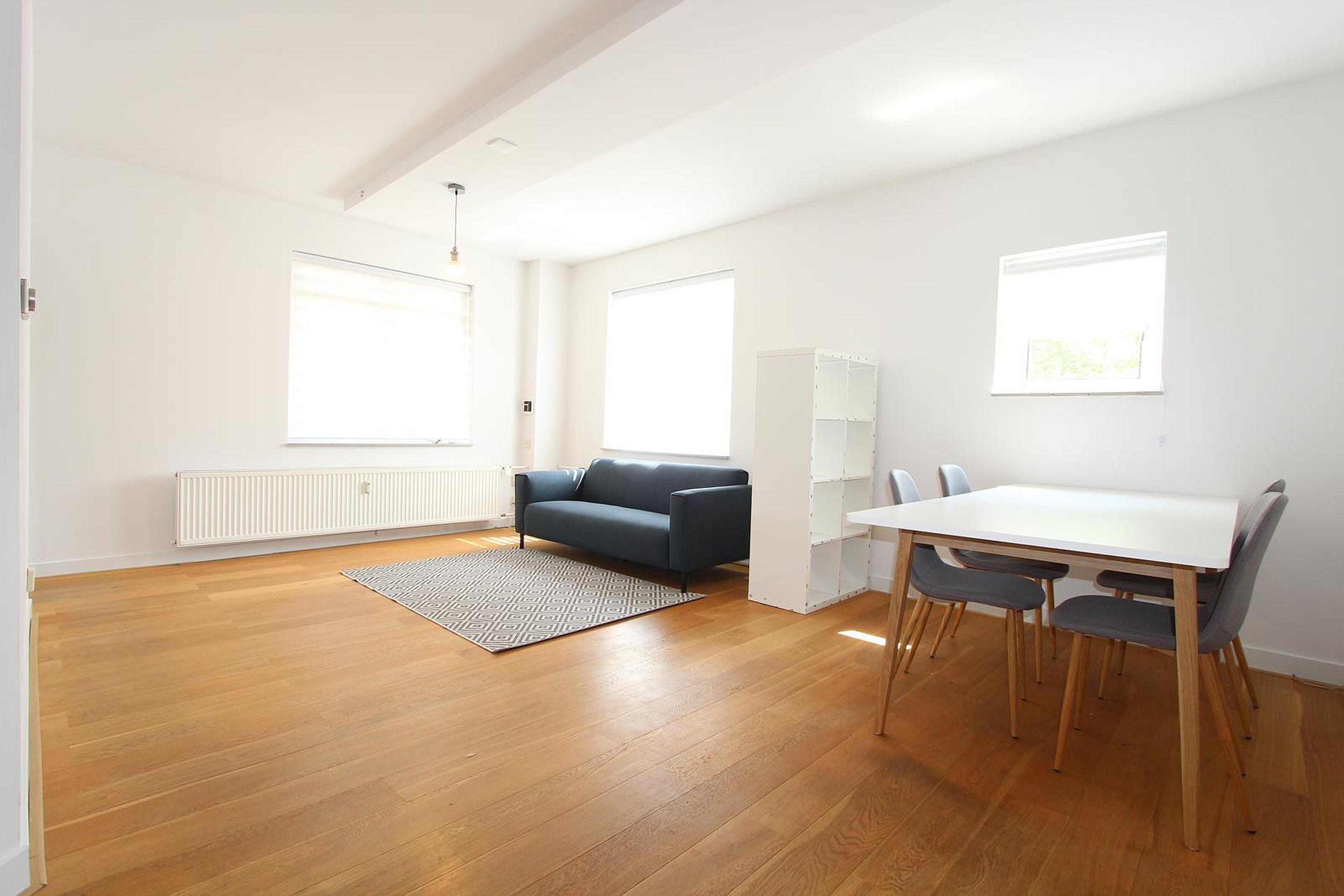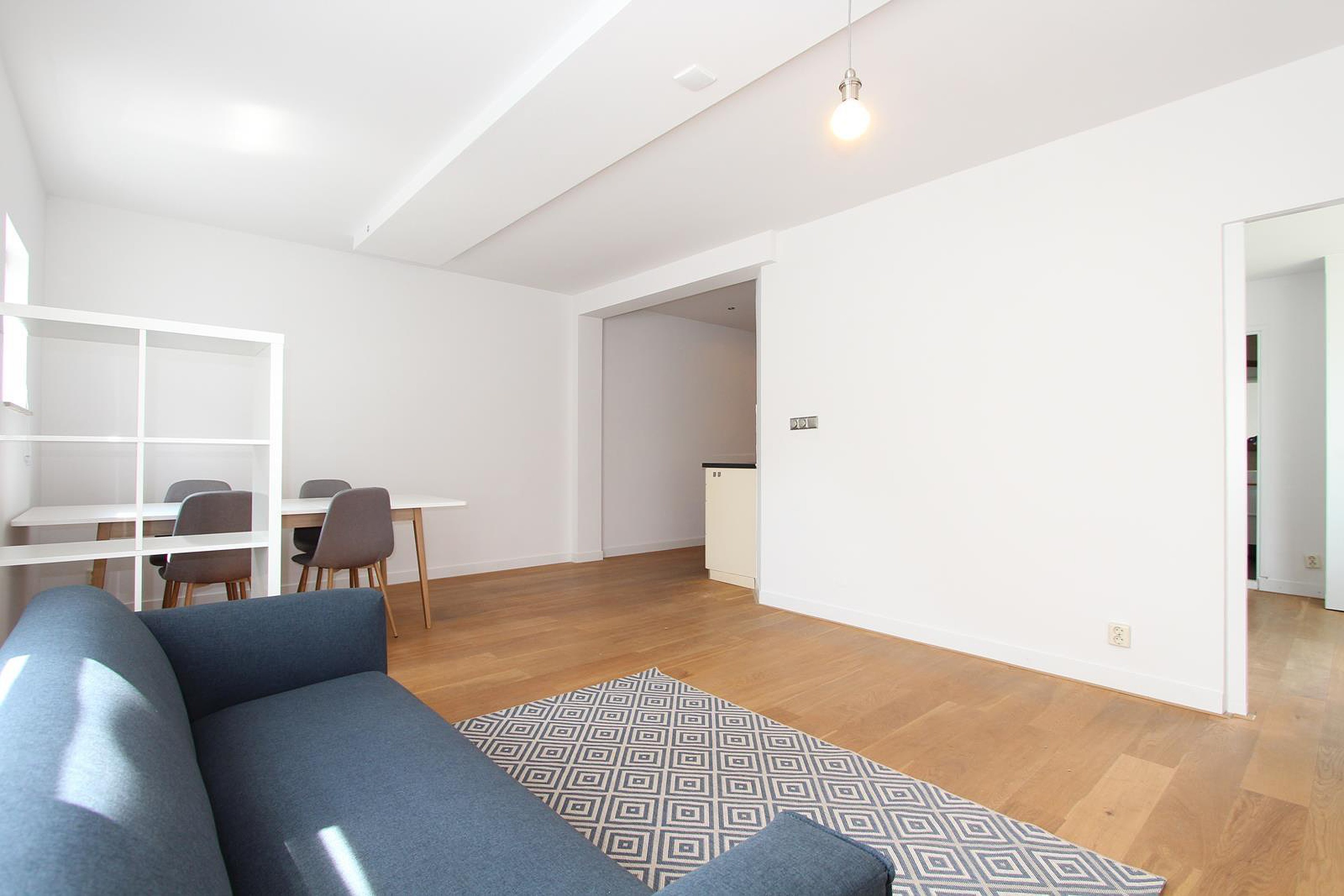 Ruime woonkamer, met veel lichtinval door de hoekligging, die toegang geeft tot de ruime slaapkamer. De slaapkamer is uitgerust met een vaste kast en via de slaapkamer is de badkamer bereikbaar.