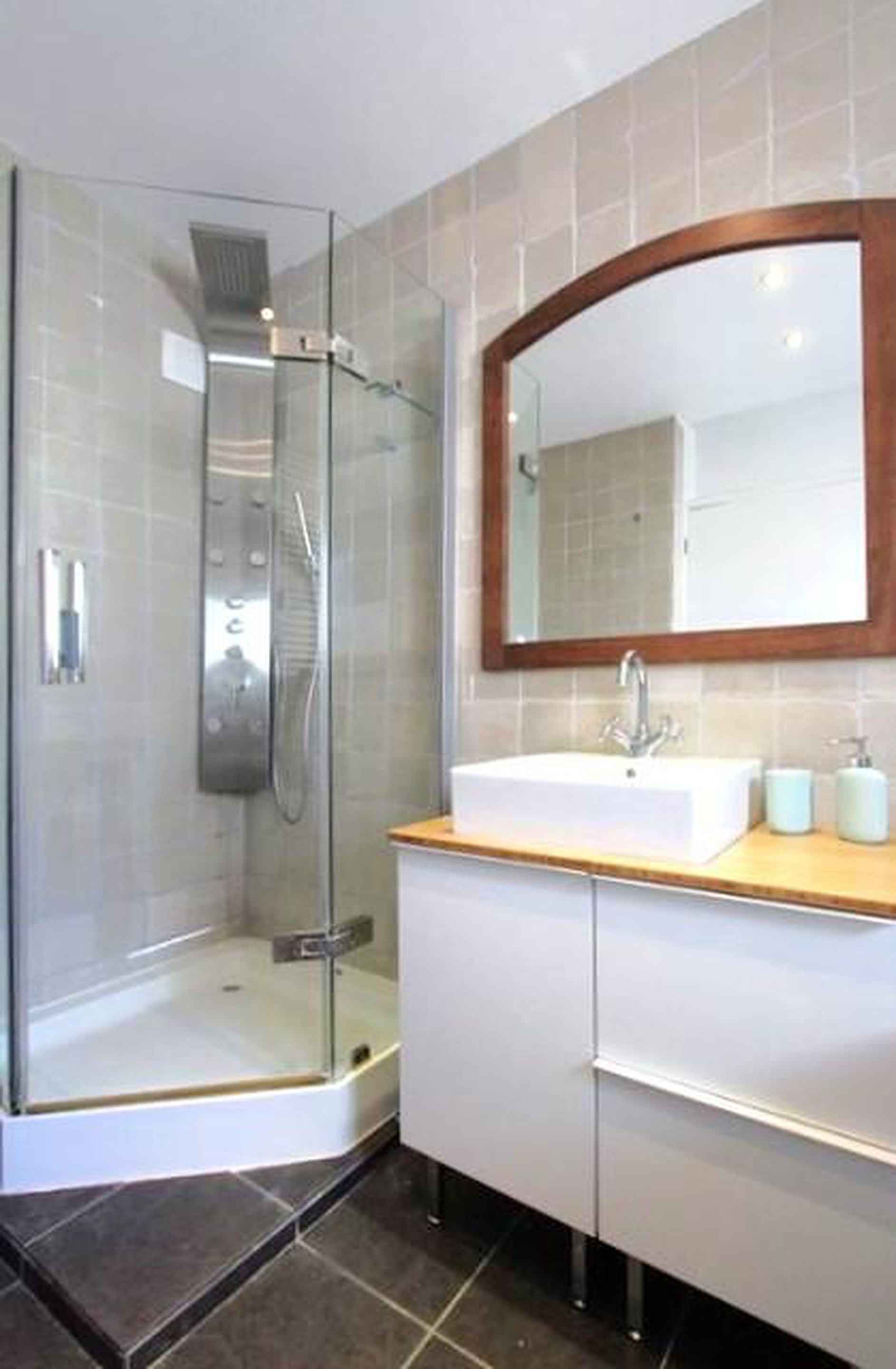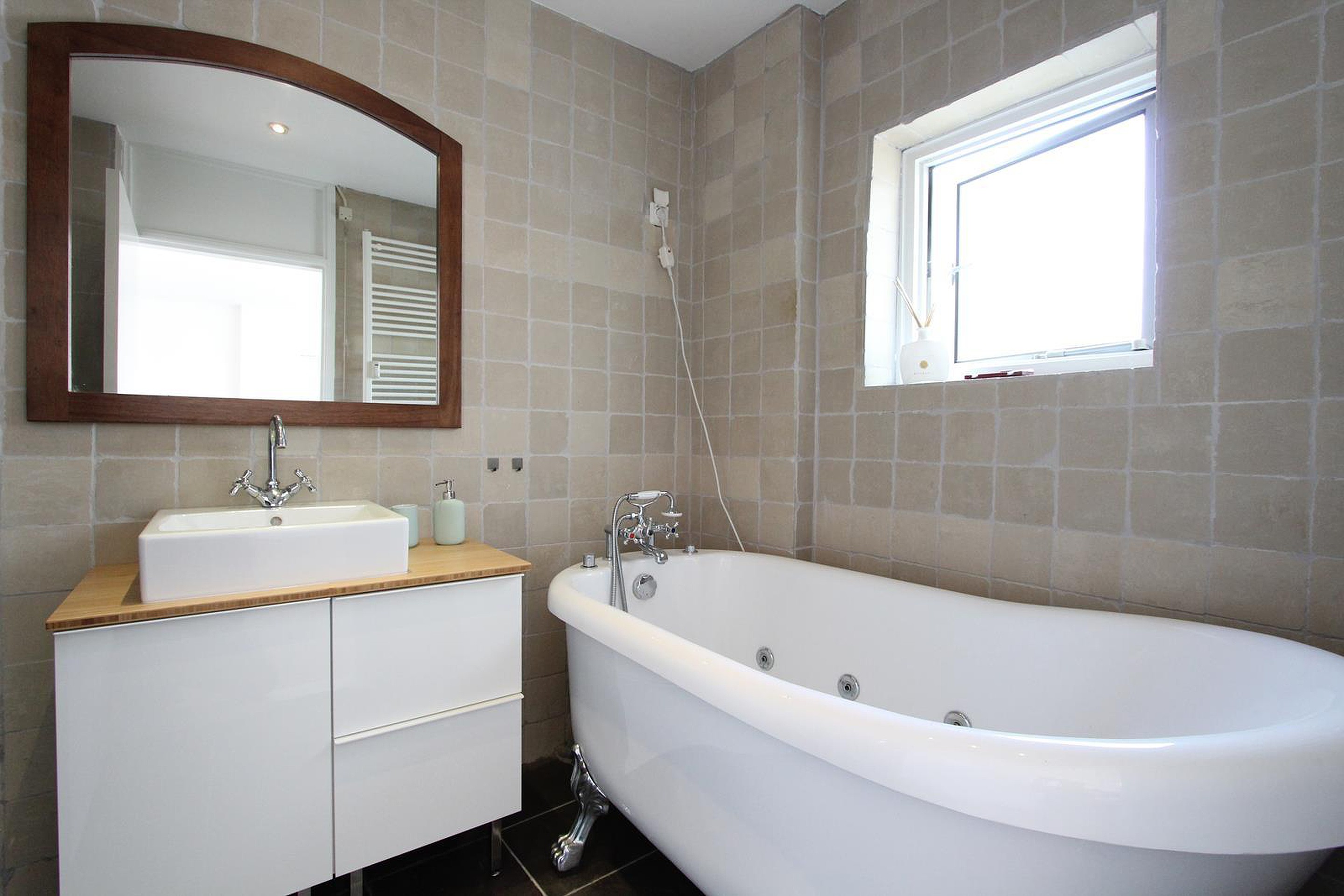 De badkamer is afgewerkt met een hoekdouche, wastafel in fraai wastafelmeubel en een ligbad met jacuzzi. Separate individuele (fietsen)berging op de begane grond.