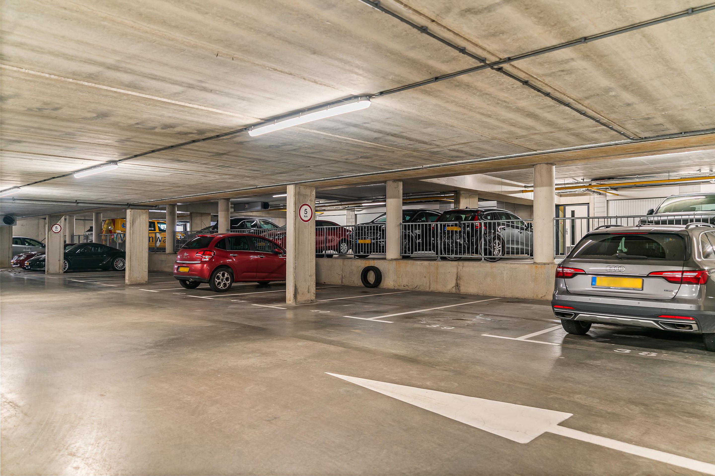 Comfort is a given in this building: think of the elevator that effortlessly takes you upstairs with two bags of groceries. You can park your car safely and dry in your own spot under the complex. Need a little more space? There is even a separate garage box for sale (for €50,000), ideal for your second car, bicycles, or all your seasonal items.