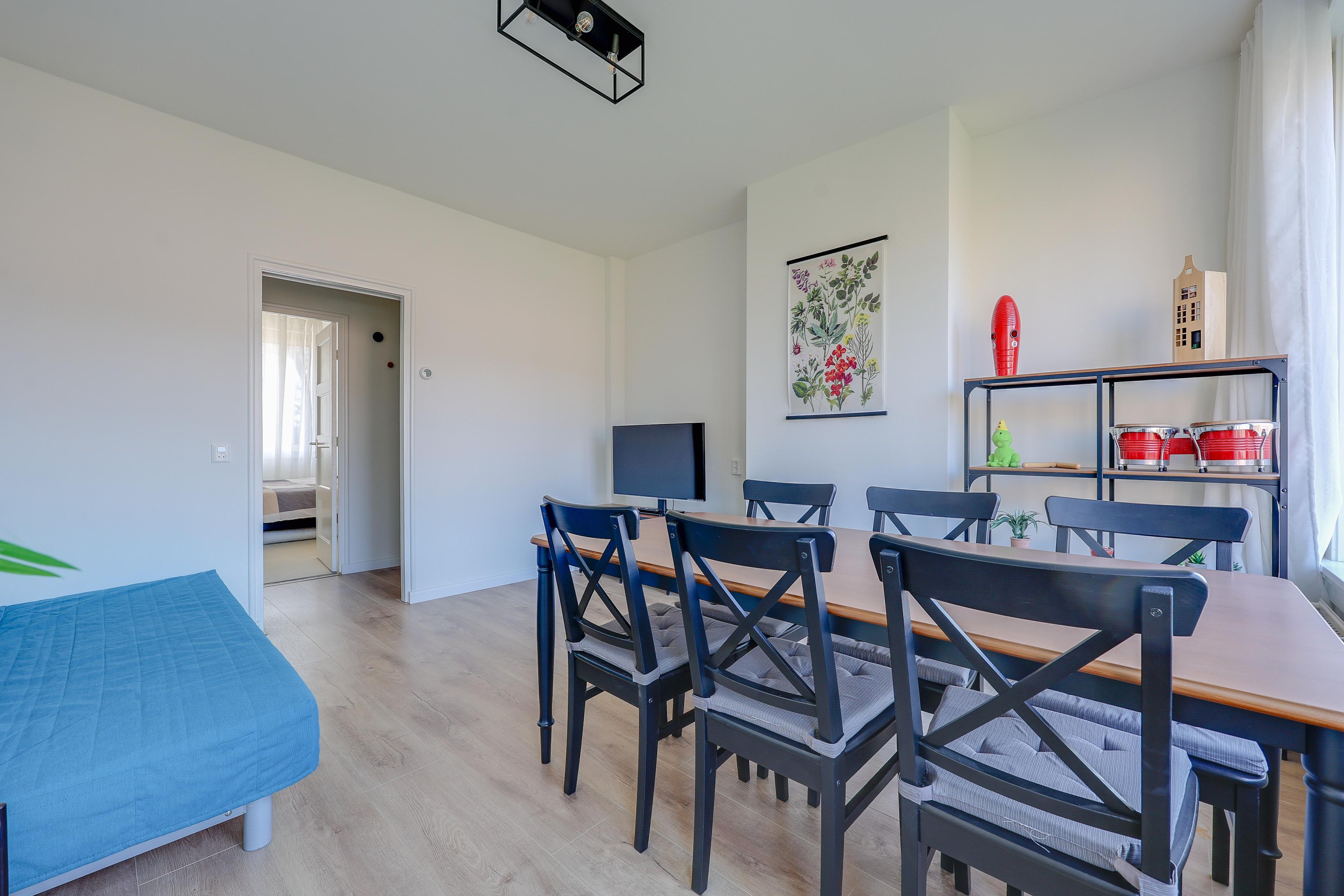 Upon entering, the well-maintained and fresh finish immediately stands out. In 2022, the kitchen, bathroom, toilet and laminate flooring were all renovated, giving the apartment a contemporary look and allowing for immediate occupancy. The walls and ceilings are neatly finished, creating a calm and modern base throughout the home.