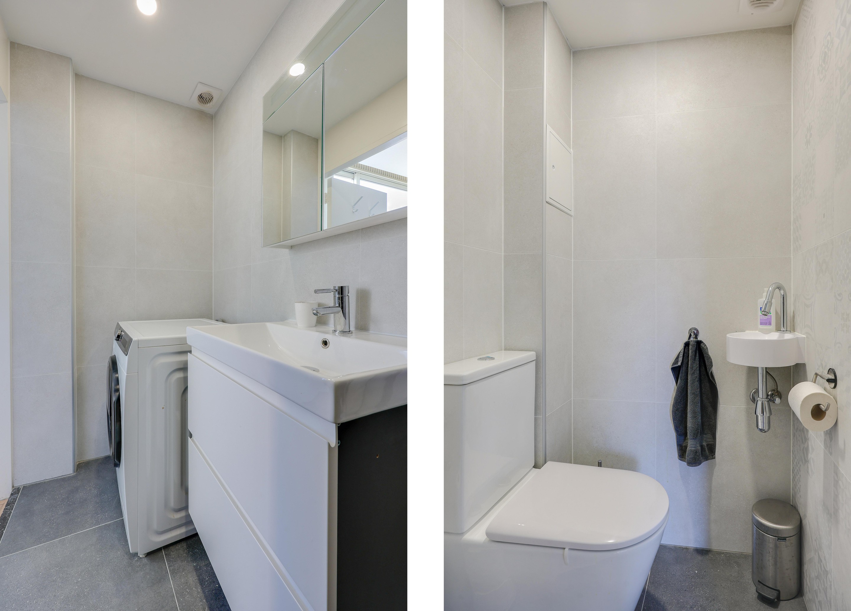 De badkamer is in hetzelfde jaar gemoderniseerd en voorzien van een inloopdouche, wastafel en aansluiting voor de wasmachine. Ook het separate toilet is in 2022 vernieuwd, wat het wooncomfort verder verhoogt en bijdraagt aan de instapklare staat van het appartement.