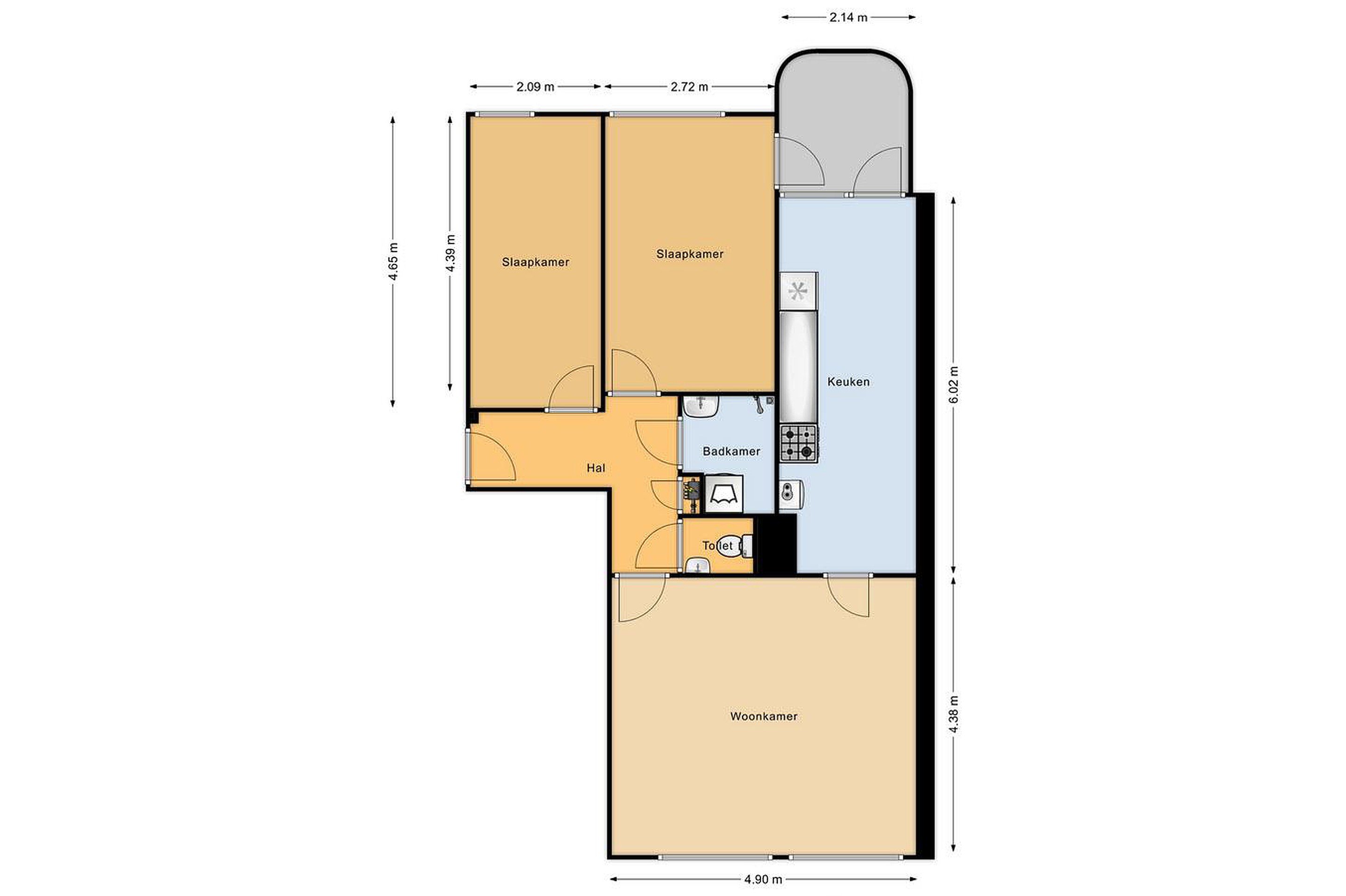 De woning kent twee slaapkamers. De grootste slaapkamer heeft een oppervlak van bijna 12m2 en biedt hiermee ruim voldoende ruimte voor een groot bed en uitgebreide garderobekasten. Daarnaast heeft deze kamer toegang tot het balkon. De tweede kamer is iets kleiner van formaat, maar met een oppervlak van 10m2 prima geschikt als kinderkamer of werkkamer.