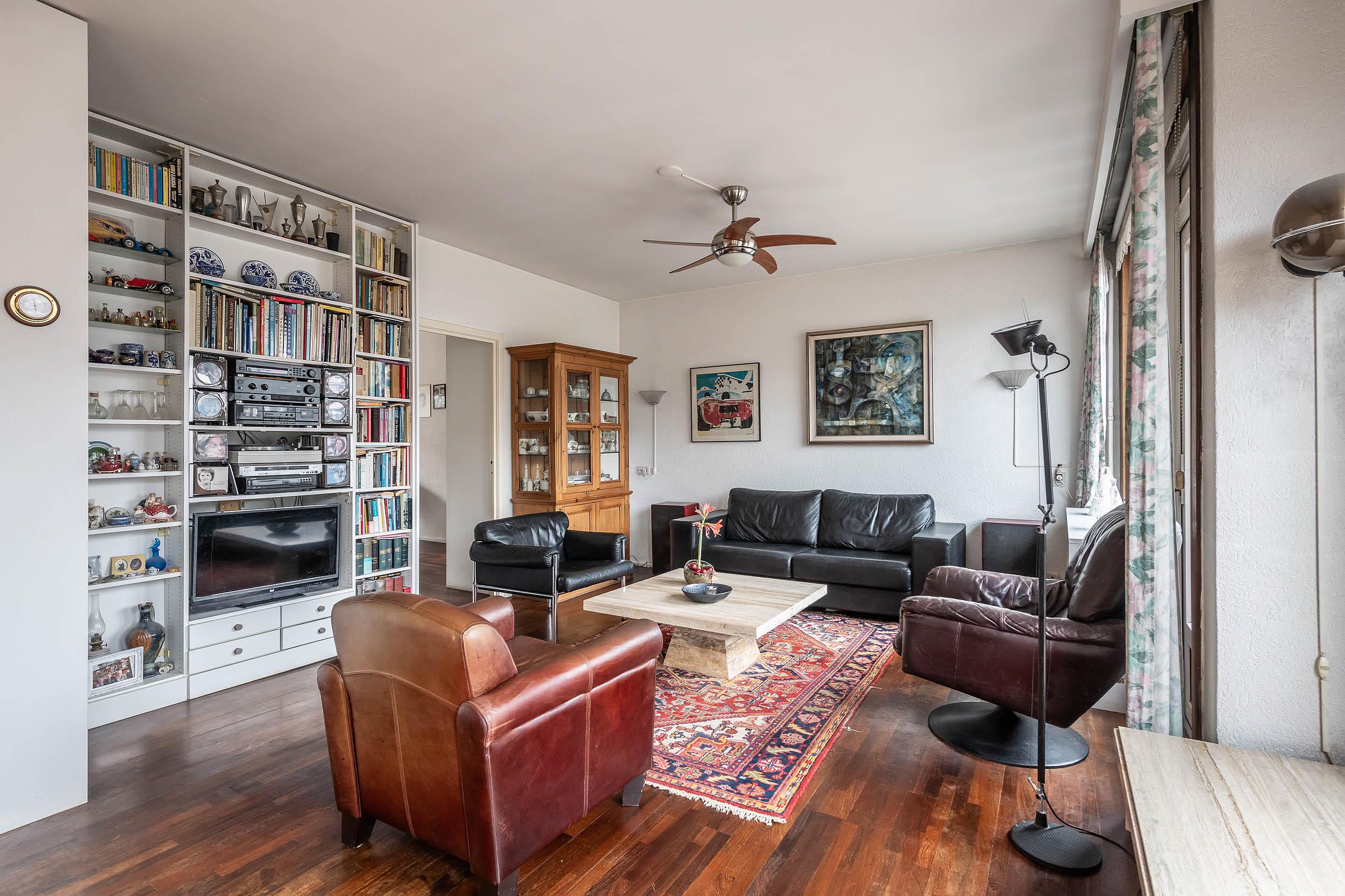 What may we offer you? An efficient and practically laid-out apartment on the first floor with a balcony at the front and a roof terrace at the rear. The property is part of a small-scale and characteristic 1960s building with shops on the ground floor and homes located above. Space and lots of light is the first thing that comes to mind and of course the large terrace.