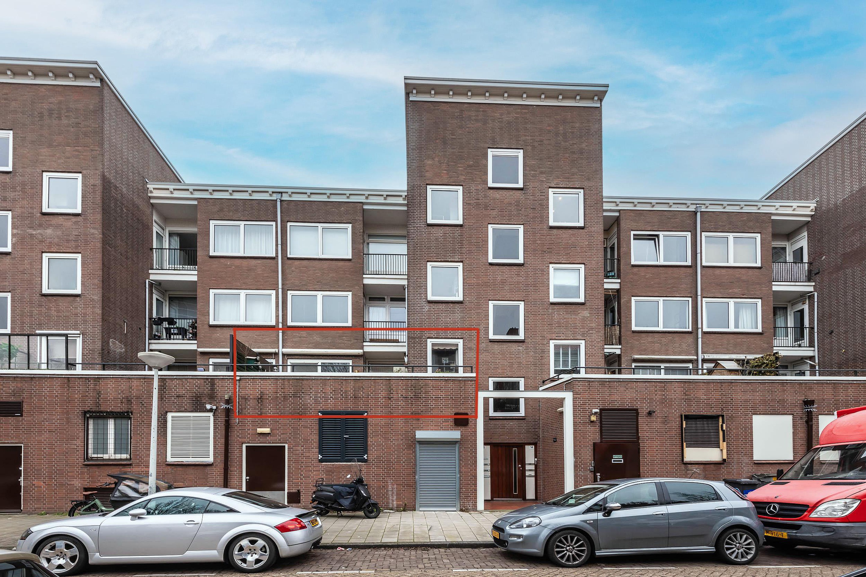Entrée van de woning op de eerste verdieping, via de gemeenschappelijke entrée en het trappenhuis. 1e verdieping; Hal, toilet, badkamer, ruimte met opstelplaats voor de wasmachine en droger, ruime woonkamer (samengevoegd met een slaapkamer) over de volle breedte aan de voorzijde van het gebouw, keuken, twee slaapkamers en het royale dakterras. Het dakterras is vanuit de keuken en een van de slaapkamers bereikbaar. Tot slot is er nog een bijbehorende berging op de zolderverdieping en een gemeenschappelijke fietsenstalling in de kelder.