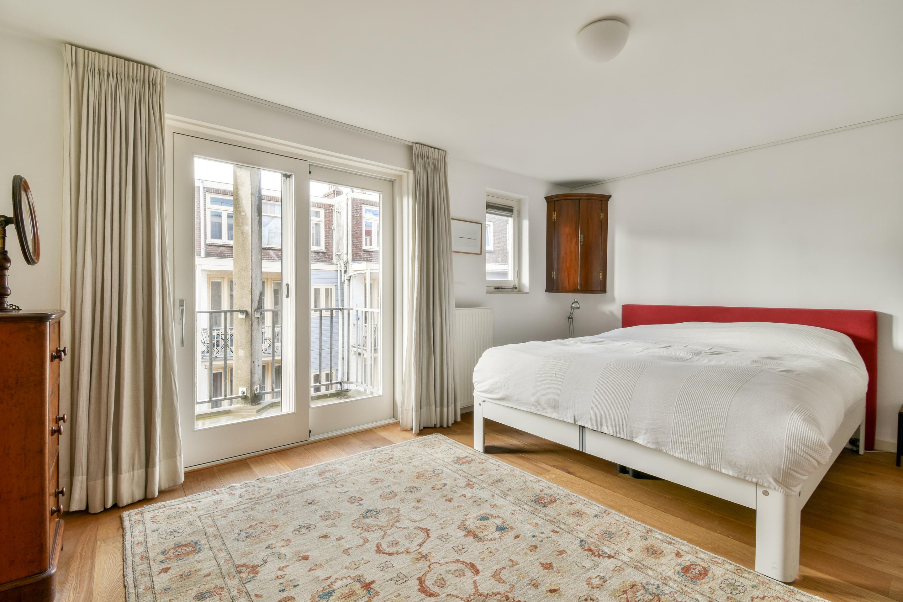 Aan de voorzijde ligt de brede, lichte woonkamer met openslaande deuren naar een Frans balkon. Hier kijk je uit over de Prinseneilandgracht, met langsvarende bootjes en de historische gevels van de pakhuizen. Een unieke, bijna schilderachtige setting voor iedere dag.