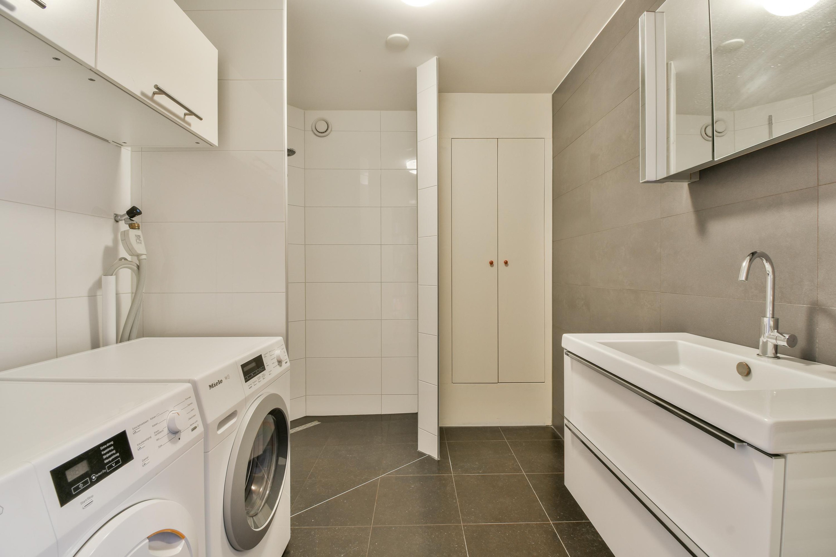 De moderne badkamer, gelegen tussen beide slaapkamers, is voorzien van een inloopdouche en wastafelmeubel. In de hal bevindt zich een royaal separaat toilet.