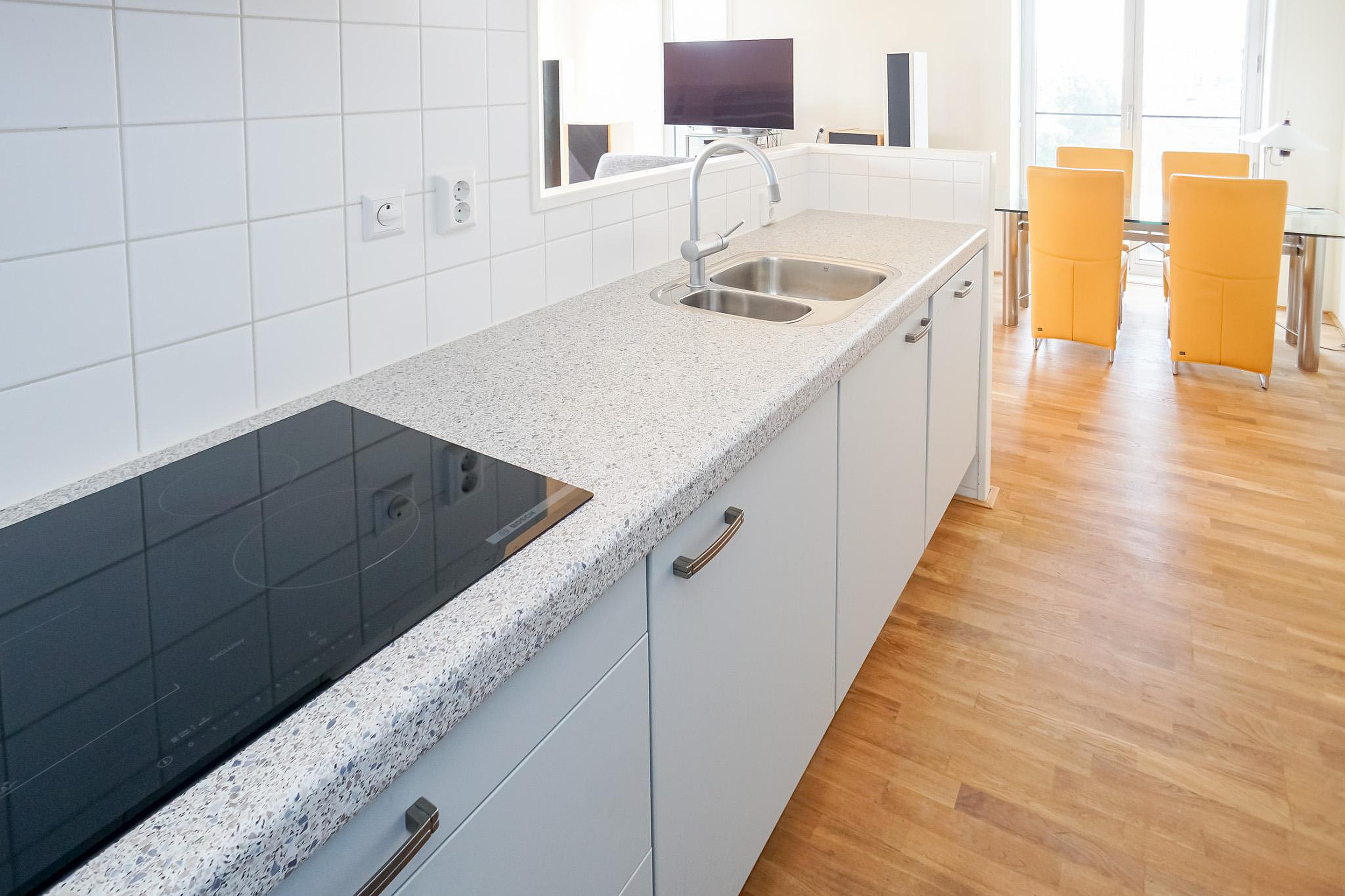 De halfopen keuken is functioneel ingericht, en de inductiekookplaat, combi/stoomoven, koelkast en vaatwasser zijn ingebouwd. Het appartement beschikt over twee ruime slaapkamers, ideaal voor een gezin of een thuiskantoor of logeerkamer. De badkamer is royaal opgezet en biedt volop ruimte voor comfort. Verder zijn er een separaat toilet en een berging voor extra bergruimte.