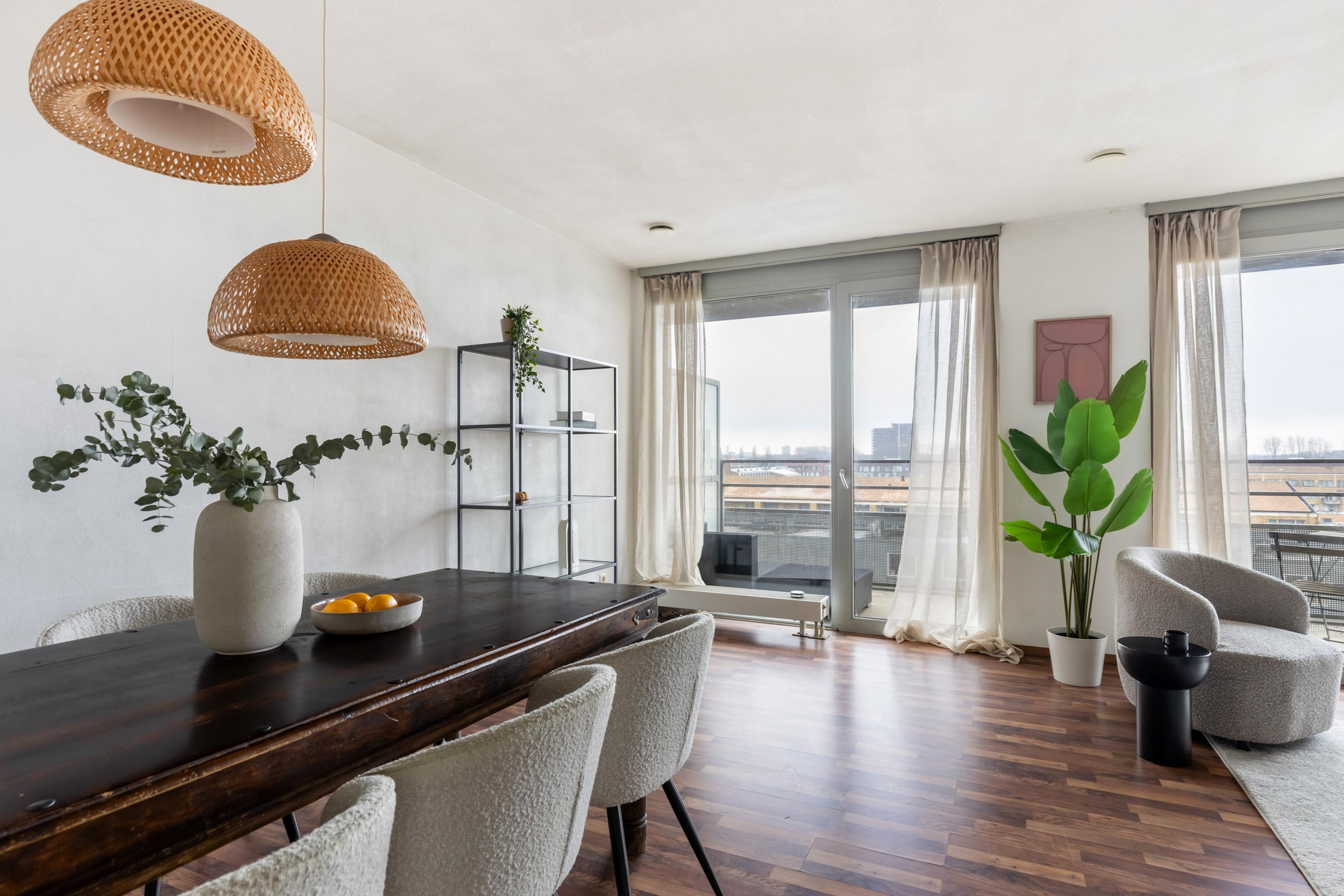 The apartment is a short distance from Rembrandtpark and Erasmuspark. A wide range of shops, supermarkets, and specialty stores are available in the immediate vicinity, including on Jan Evertsenstraat and around Mercatorplein. Various cafés and restaurants are also within walking and cycling distance. Amsterdam city center, Oud-West, and the Jordaan district are just a few minutes away by bike. The location is convenient for the A10 motorway and public transport (tram, bus), with excellent connections to Schiphol Airport, the Zuidas business district, and Central Station.