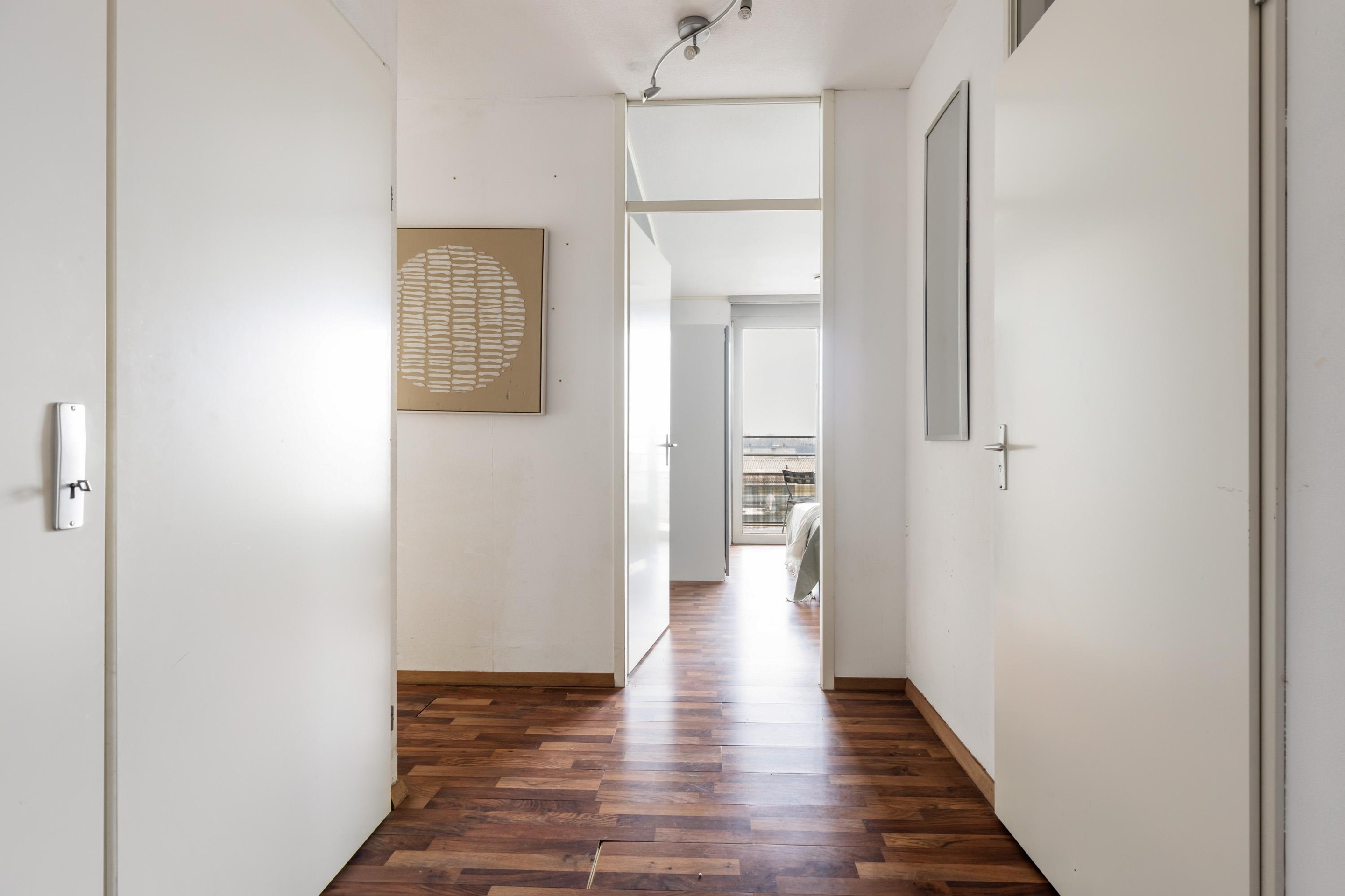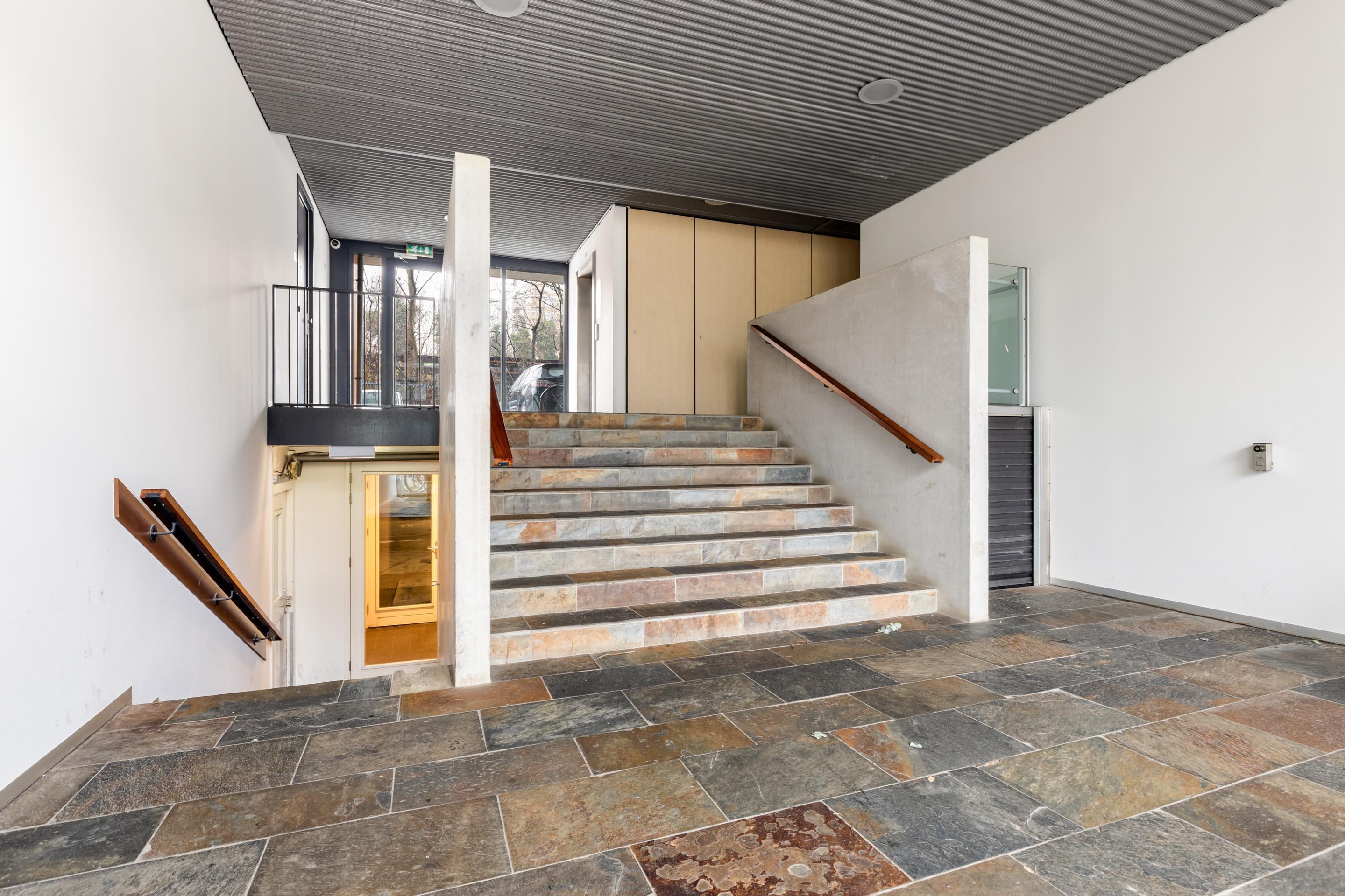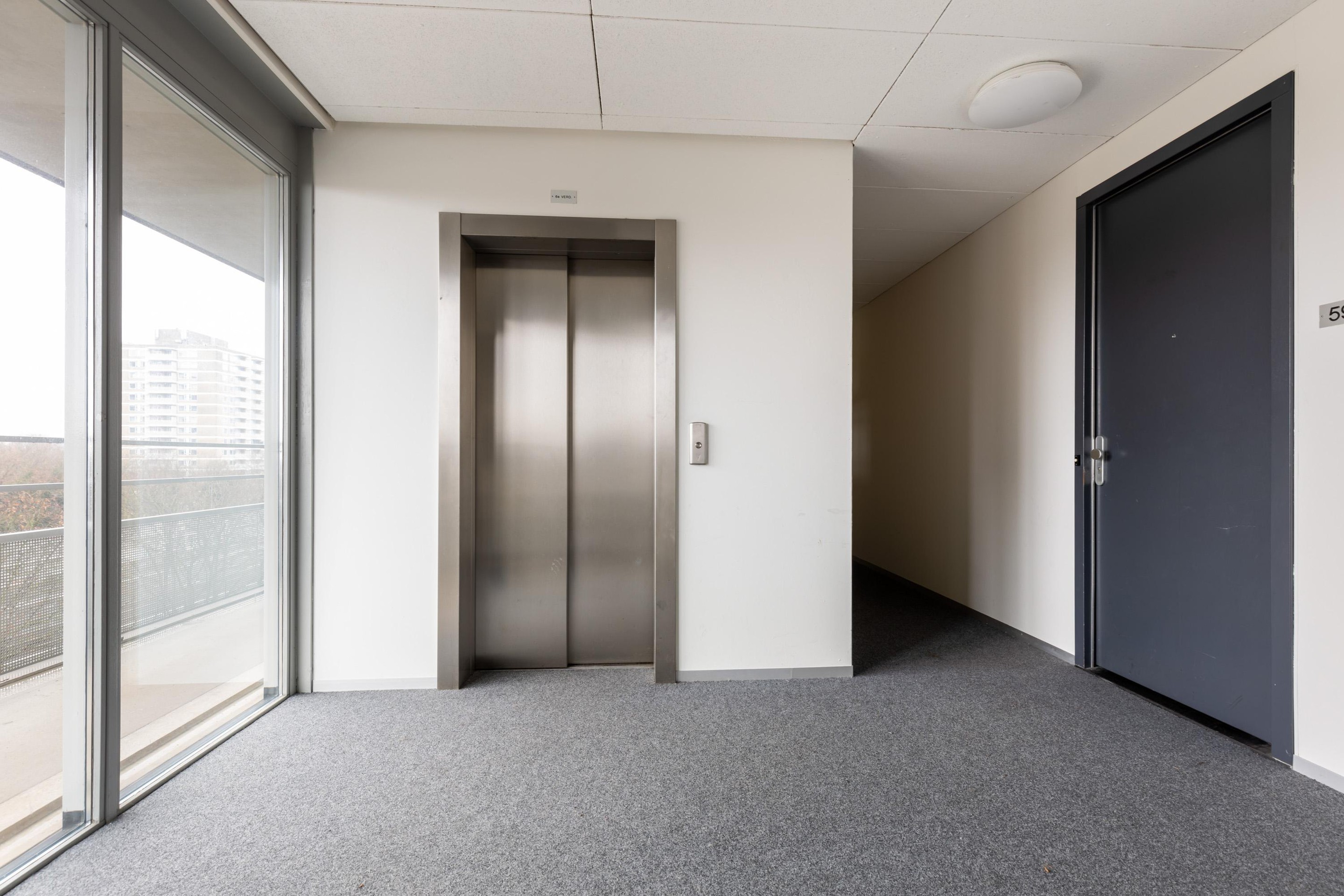 Via de gezamenlijke entree bereik je met de lift de vijfde verdieping. De berging en parkeerplaats bevinden zich op de begane grond.
