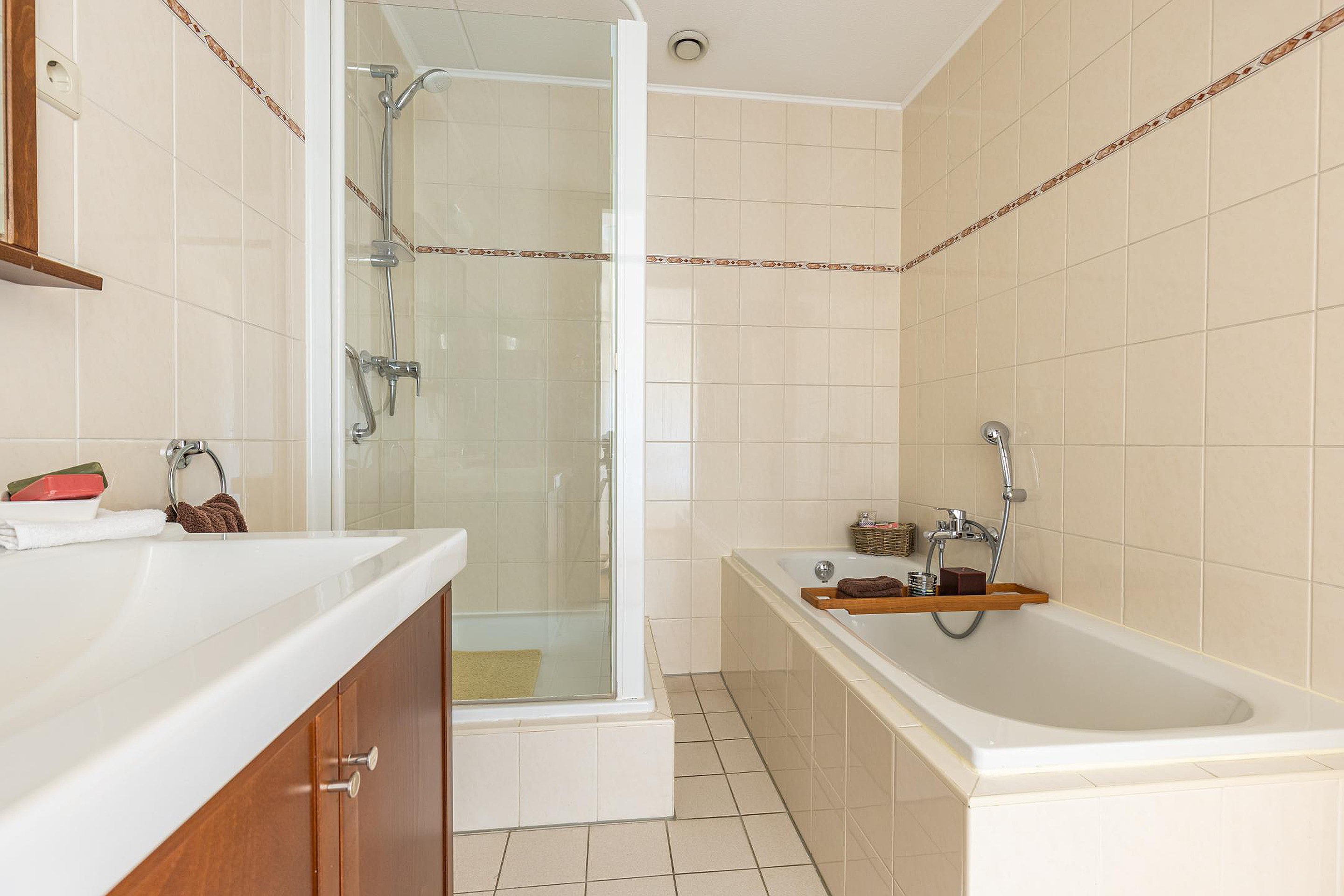 De badkamer is volledig betegeld en voorzien van een wastafelmeubel en douchehoek. De lichte kleurstelling en het keurige onderhoud maken het een frisse ruimte. Het separate toilet is in 2024 vernieuwd en past bij de verzorgde uitstraling van de woning.