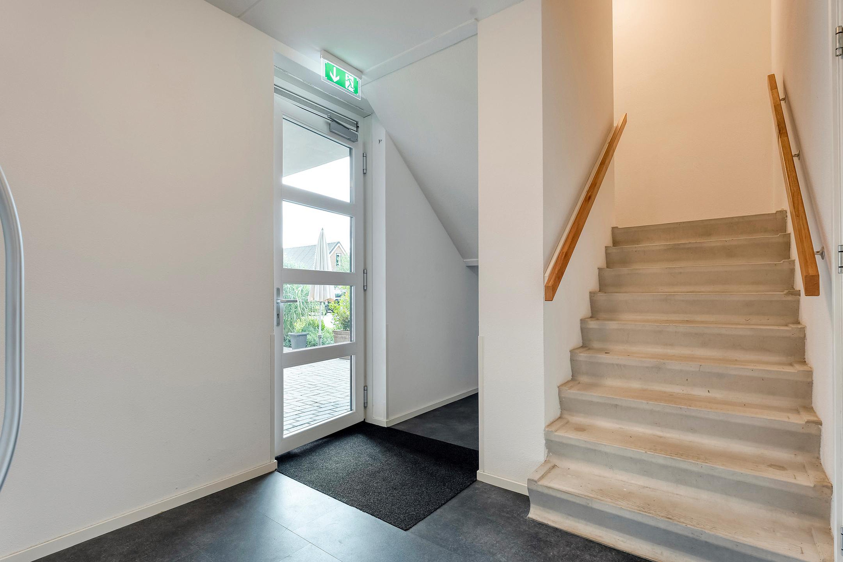 Via de centrale ingang vanuit de achterzijde van het complex betreedt men de hoofdingang met centrale hal. De centrale hal geeft toegang tot het trappenhuis en de liftinstallatie.