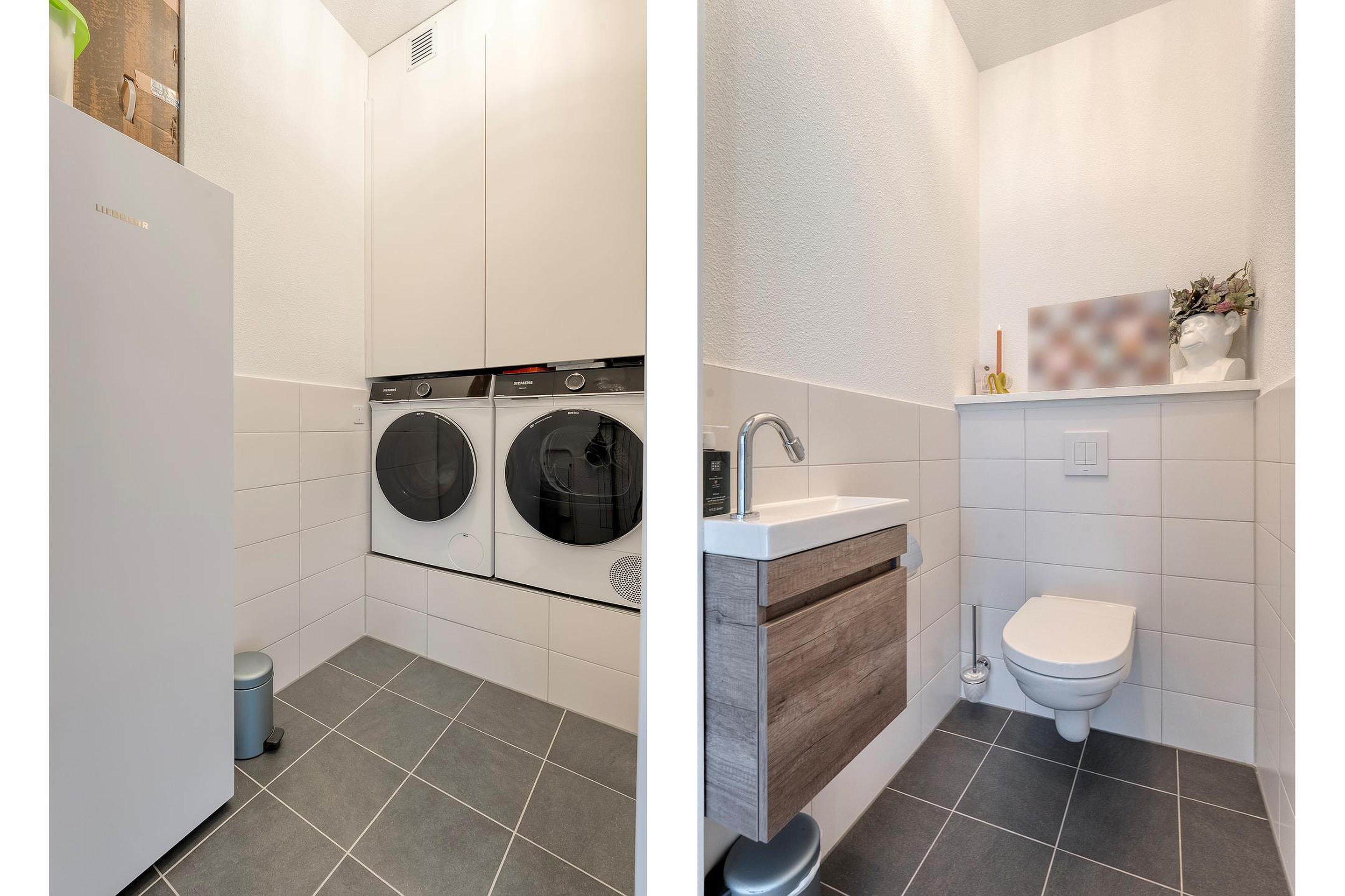 De hal geeft tevens toegang tot twee ruime slaapkamers die beide voorzien zijn van op maat gemaakte kasten door de interieurbouwer, stookruimte met o.a. warmtepomp en ook verdeler vloerverwarming en waterontharder, separaat toilet met fonteintje, Ruime berging (met meterkast, mv-box en omvormer zonnepanelen) en op maat gemaakte interieurkast en badkamer v.v. dubbele wastafel, en op maat gemaakte kast door interieurbouwer, inloopdouche met regendouche en toilet.