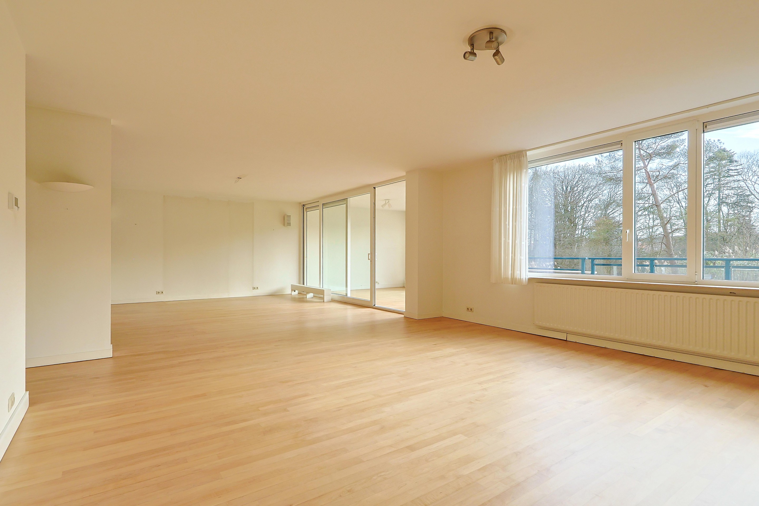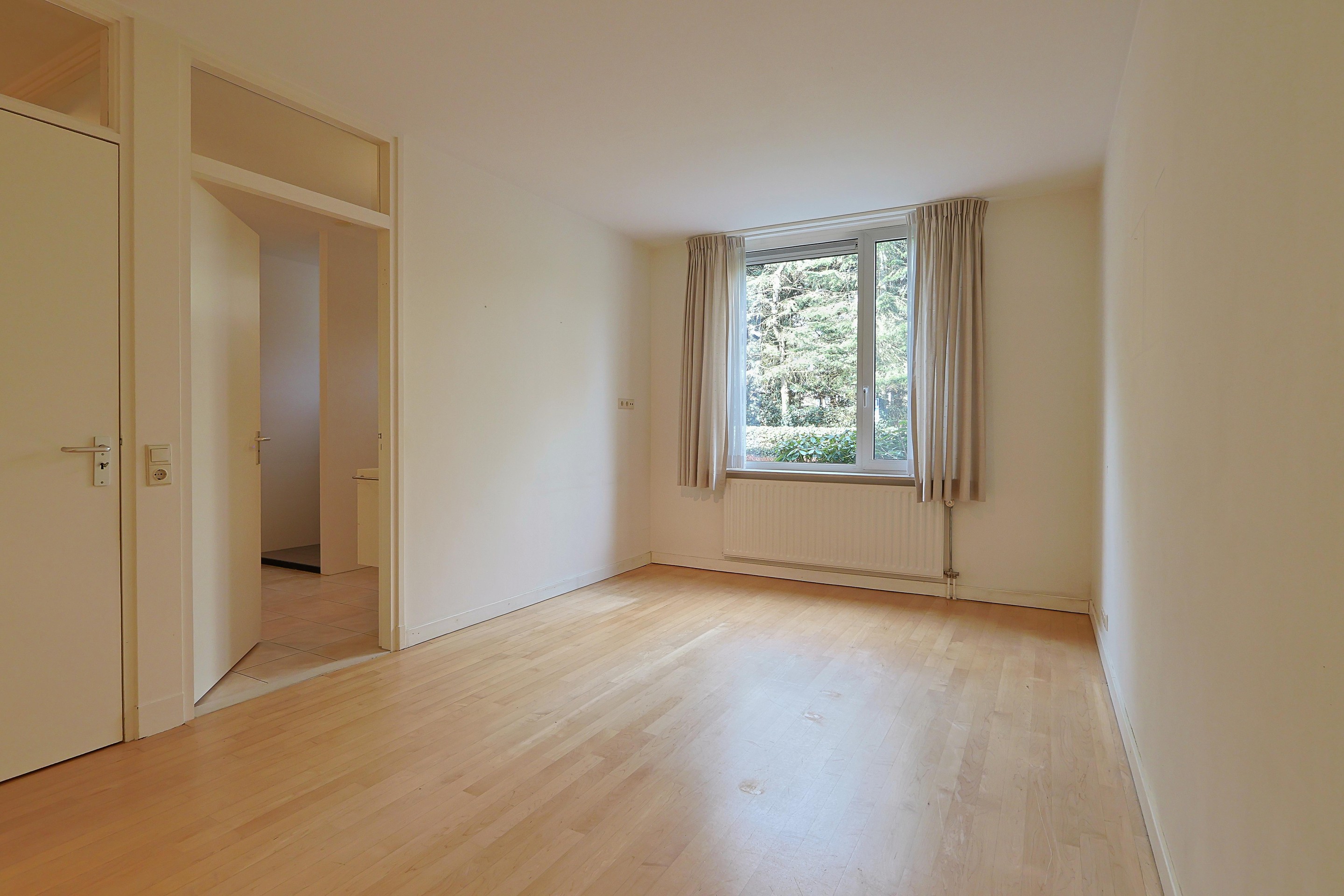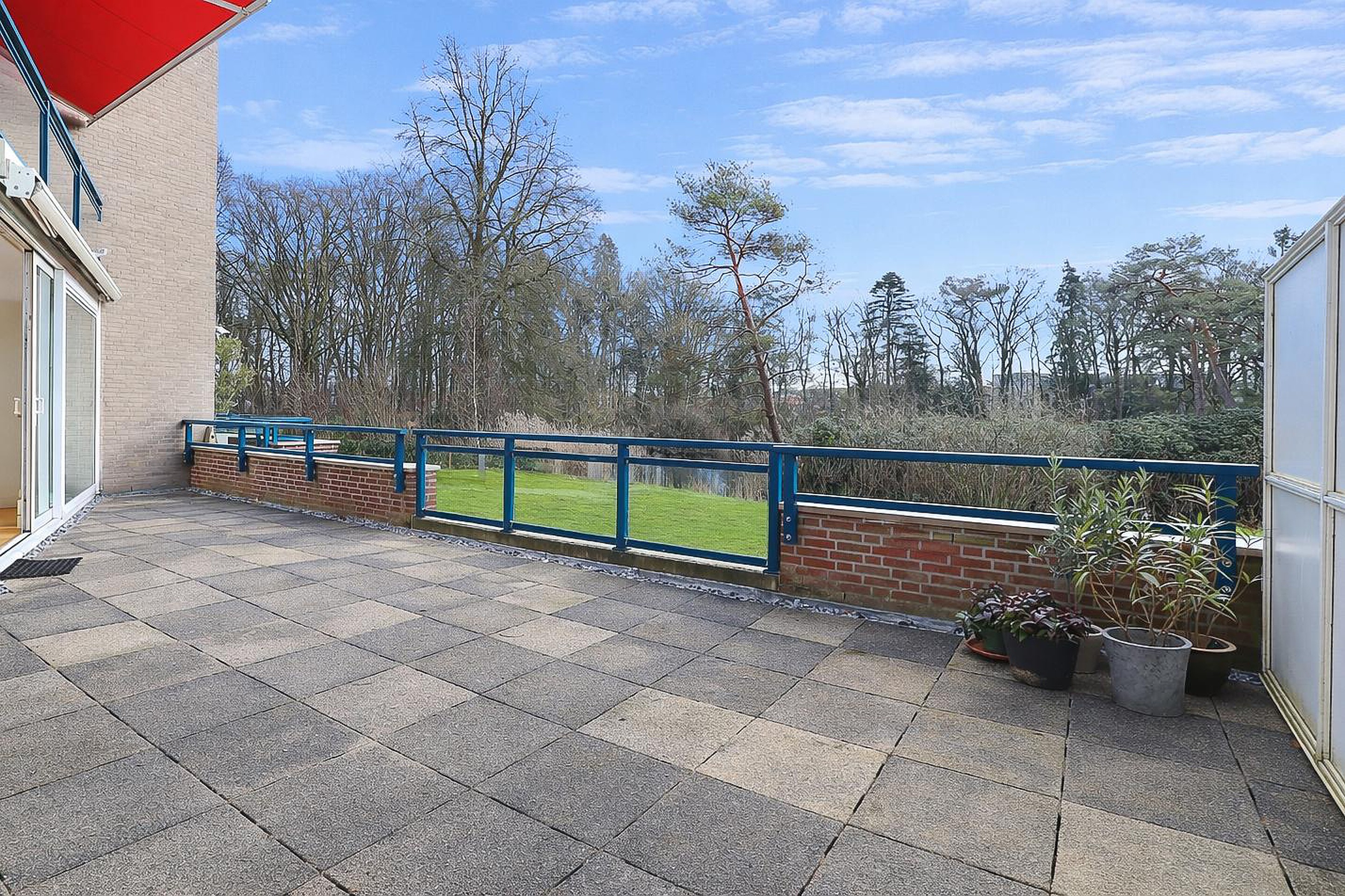 De tuinkamer beschikt eveneens over een schuifpui naar het circa 45 m2 grote terras op het zuiden, voorzien van luifels en dat prachtige uitzicht over het park en het ’s-Heerenven.