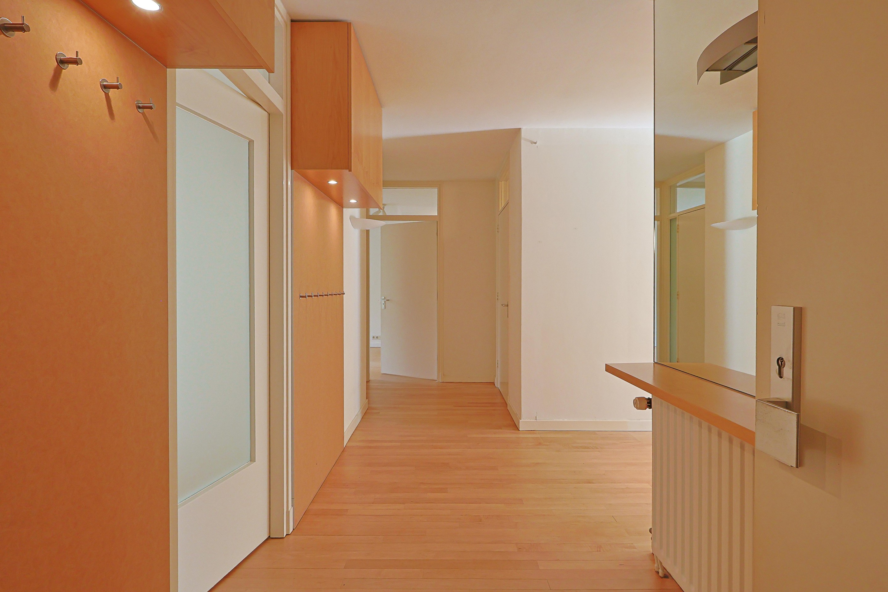 In het trappenhuis bevindt zich uw eigen voordeur. Vanuit hier bereikt u via de trap of lift het souterrain met uw privéparkeerplaats en twee bergingen.