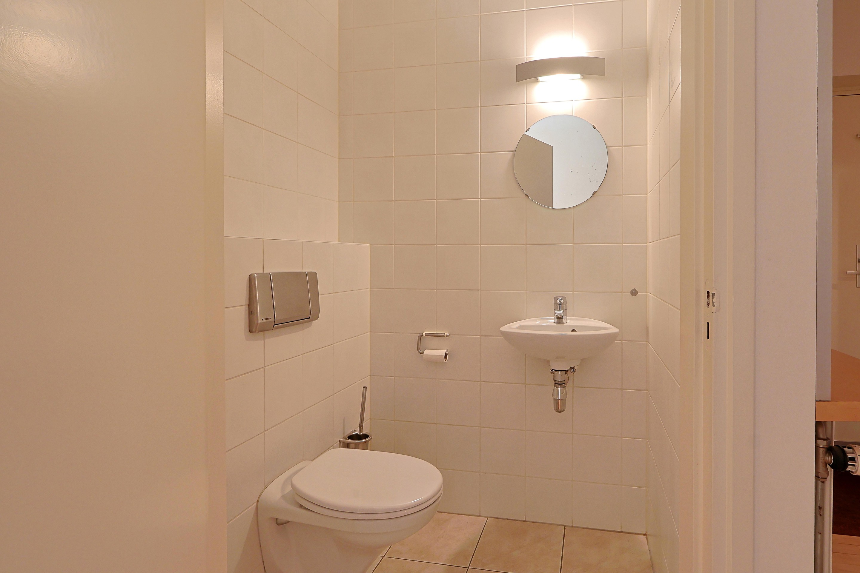 Separate toiletruimte met hangcloset en fontein.