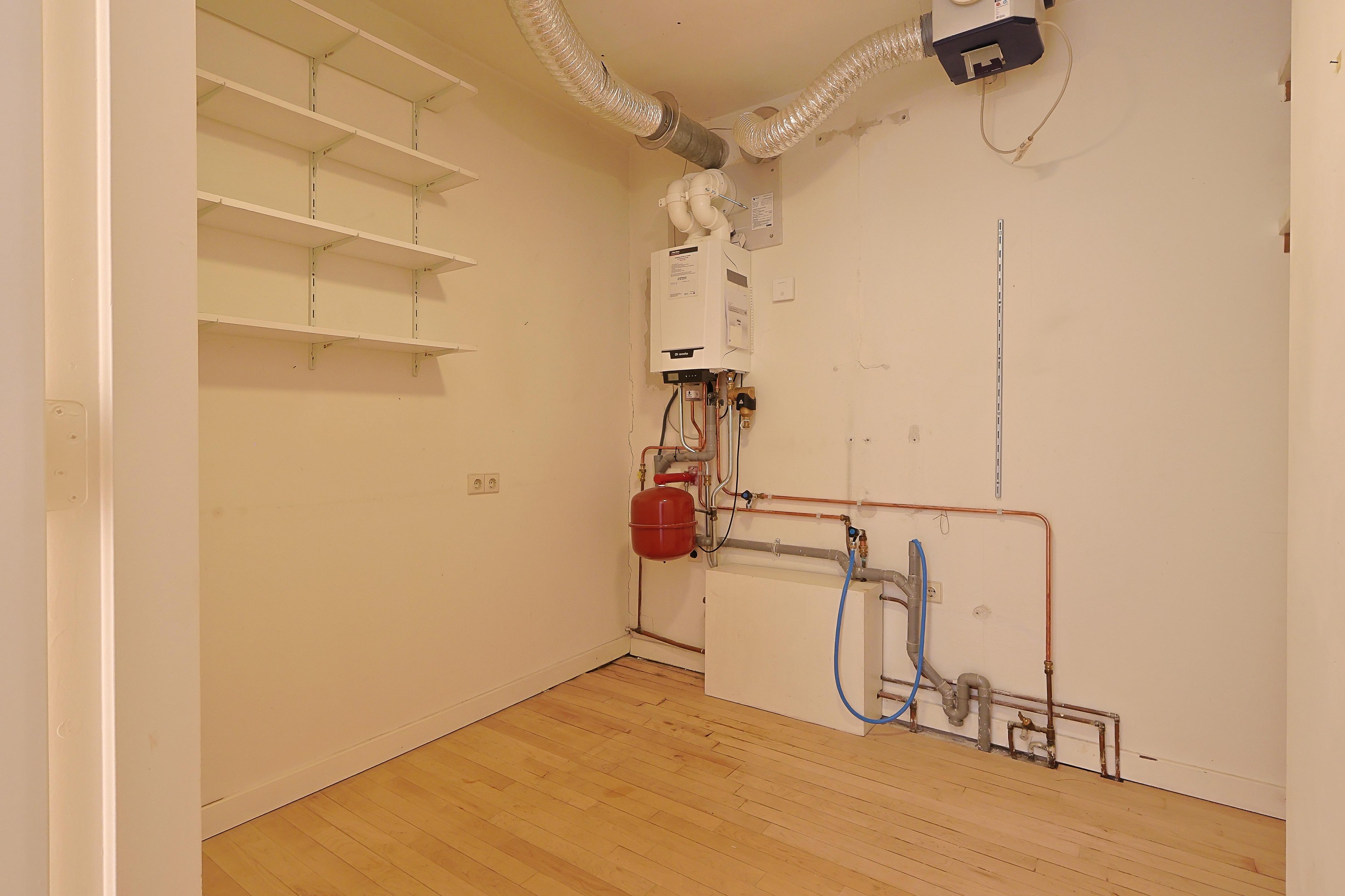Ruime berging met HR-combiketel en voldoende bergruimte.