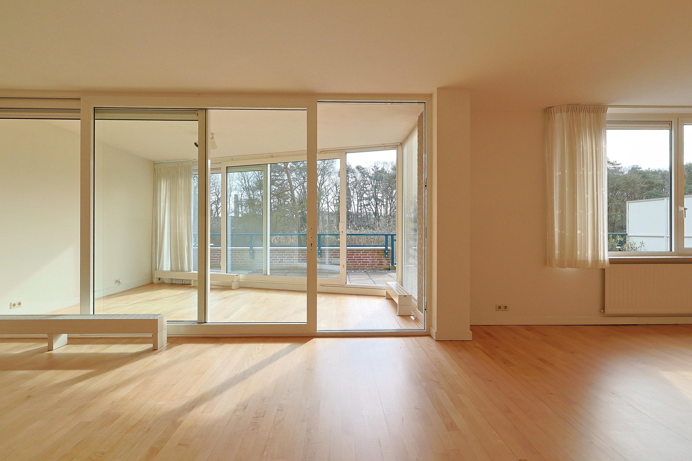 Royaal appartement op de begane grond van dit residentiële complex Moorwijk met vier kamers inclusief de tuinkamer en een riant terras met een prachtig vrij uitzicht over de parkachtige omgeving en natuurven ’s-Heerenven.