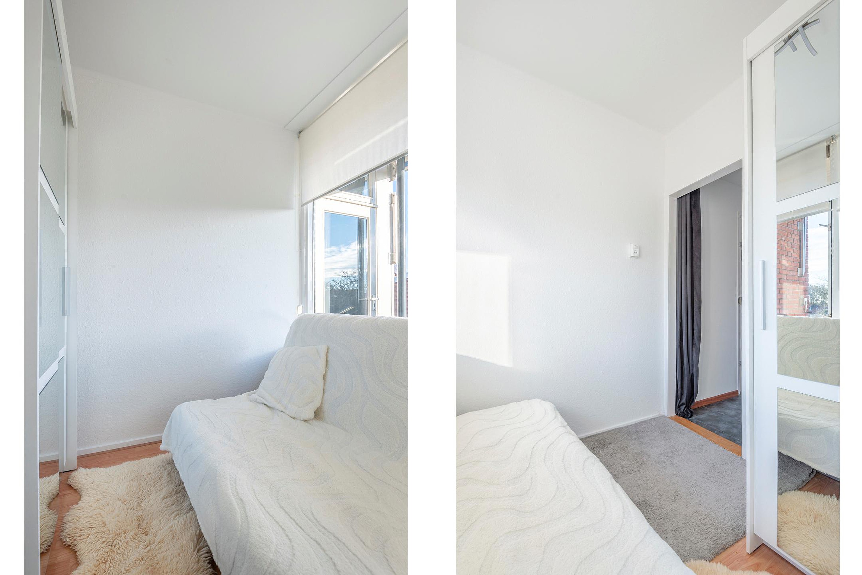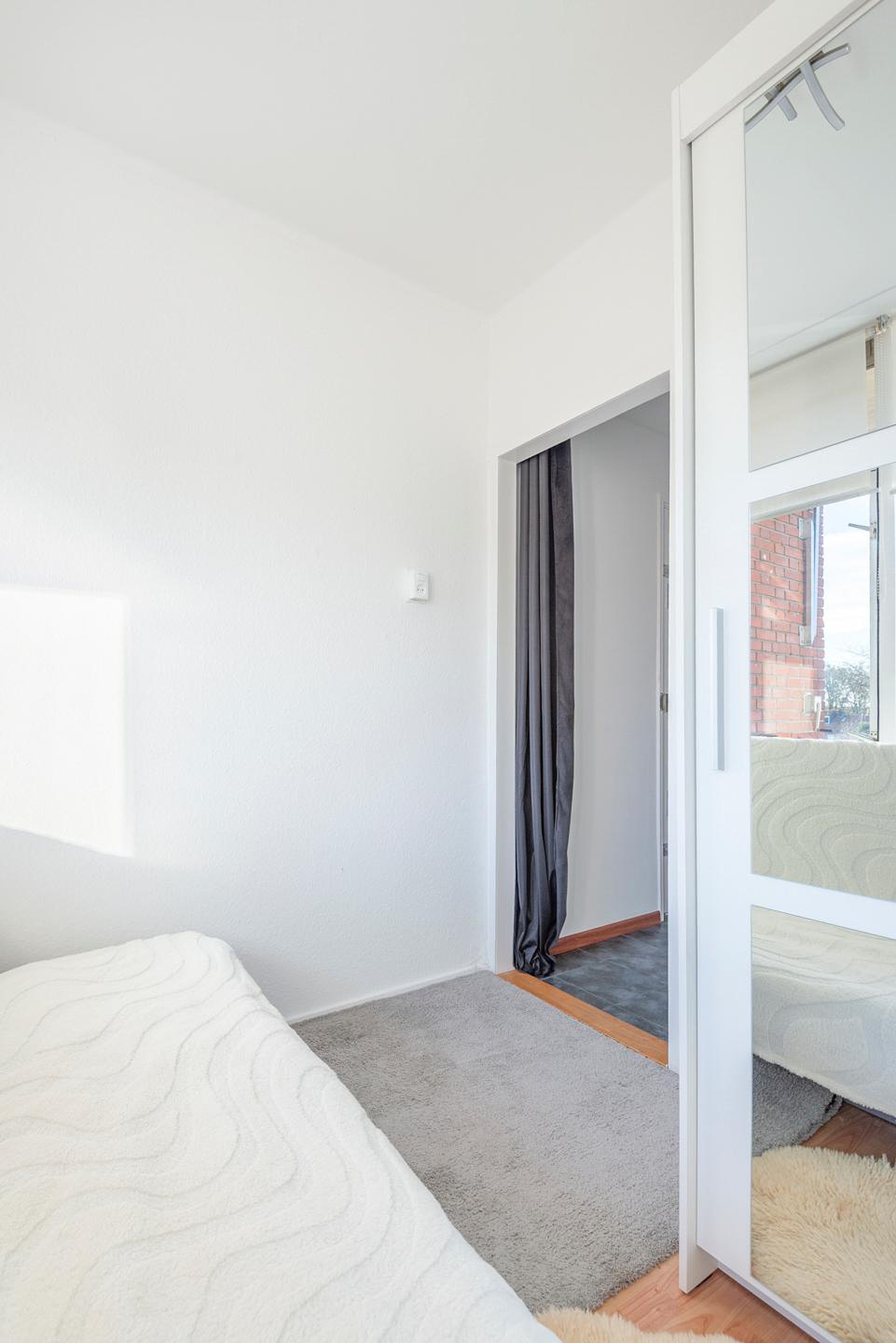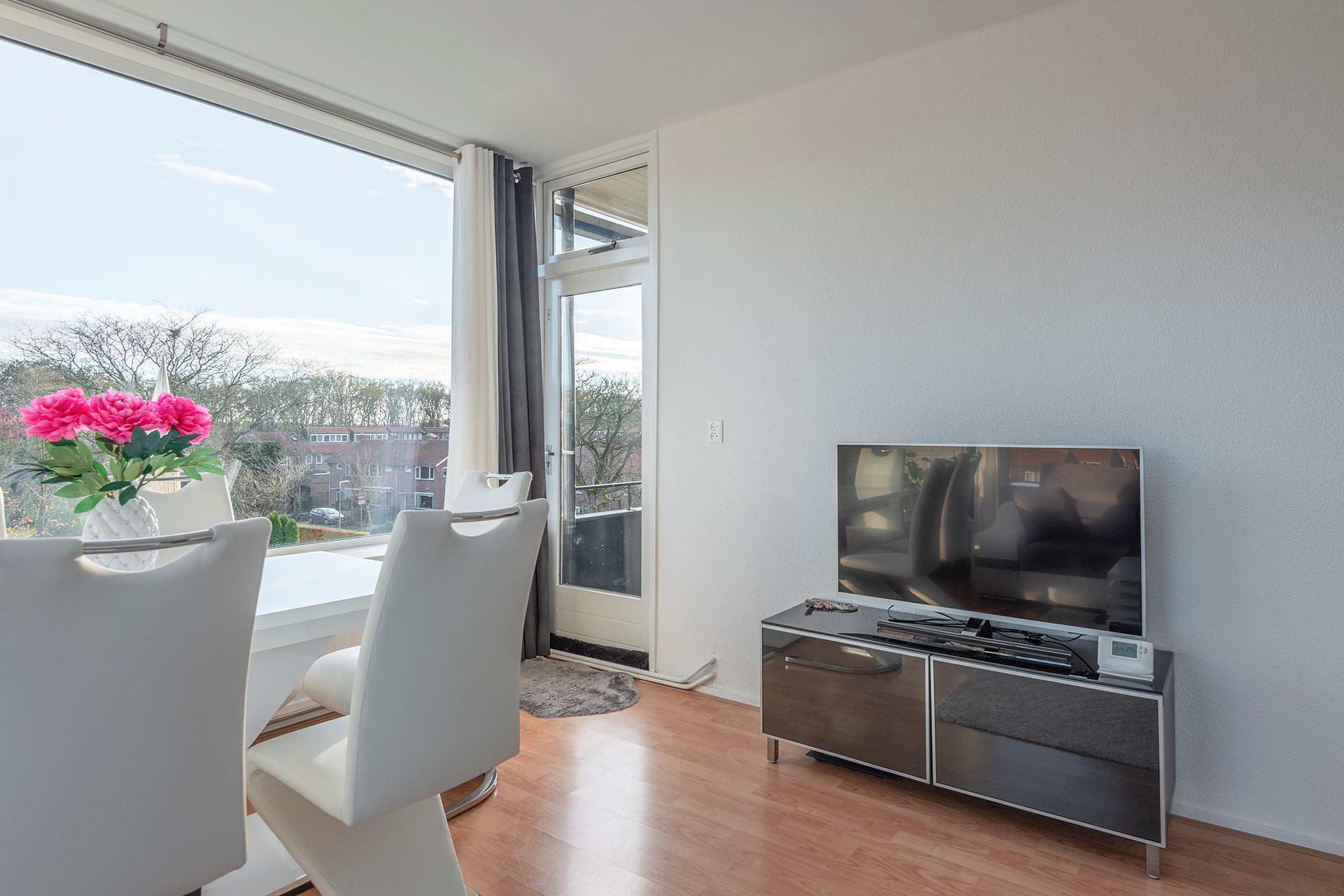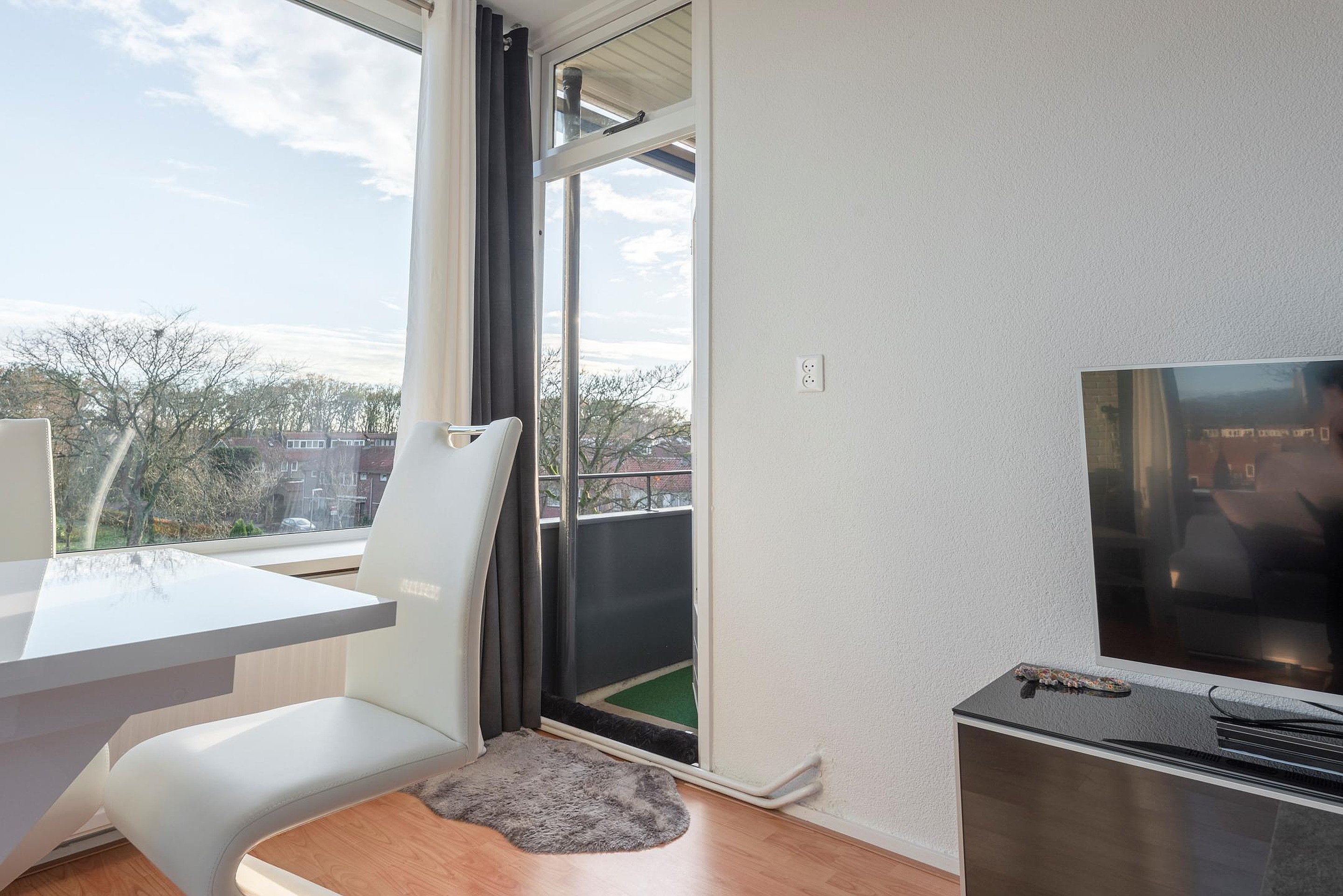 Vanuit de keuken toegang tot het balkon op het noordwesten welke via een separate deur toegang geeft tot de stookruimte met Atag combi cv-ketel (2010). Aan de achterzijde is de slaap/werkkamer en de riante lichte woonkamer. Vanuit de woonkamer is er door de 2 grote ramen een prachtig uitzicht over de wijk en het gemeenschappelijke plantsoen. De woonkamer geeft ook toegang tot het tweede balkon (zuiden).