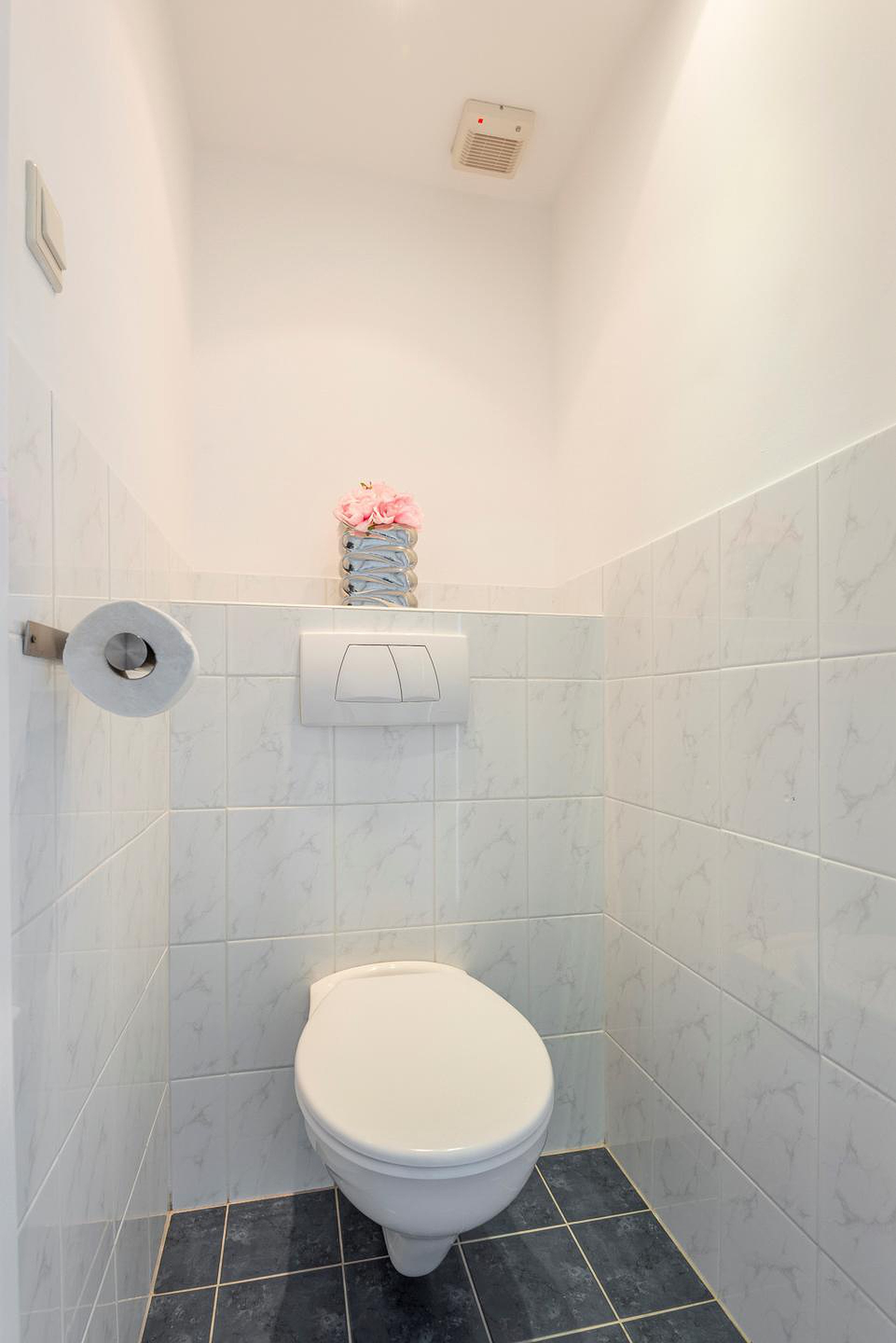 Begane grond Het appartement is praktisch ingedeeld: entree, hal met intercominstallatie, toilet en meterkast. Vanuit de hal heeft u aan de voorzijde van de woning toegang tot de keuken, toilet, de badkamer en een grote slaapkamer.