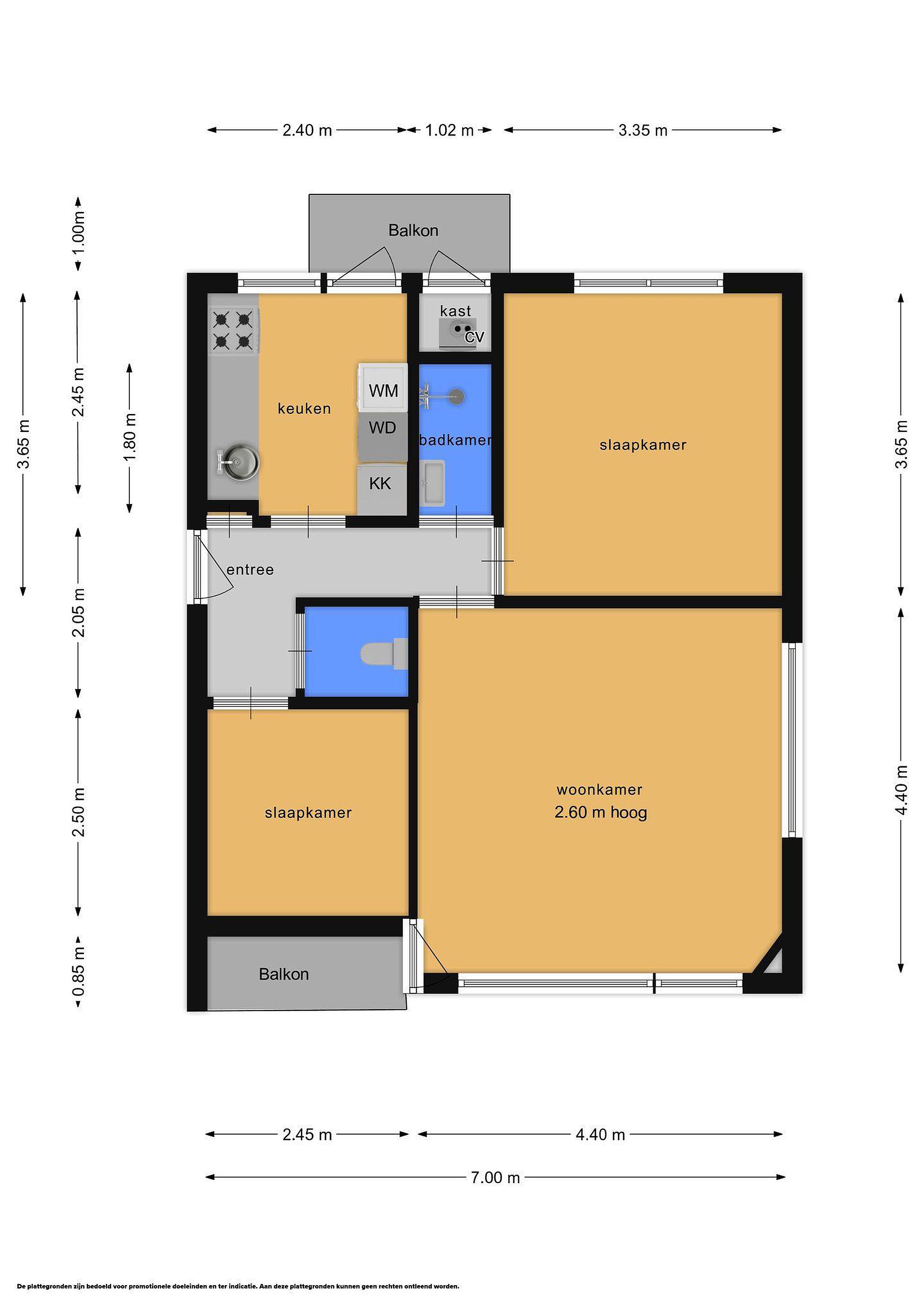 - Twee balkons, één aan de voorzijde en één aan de achterzijde;