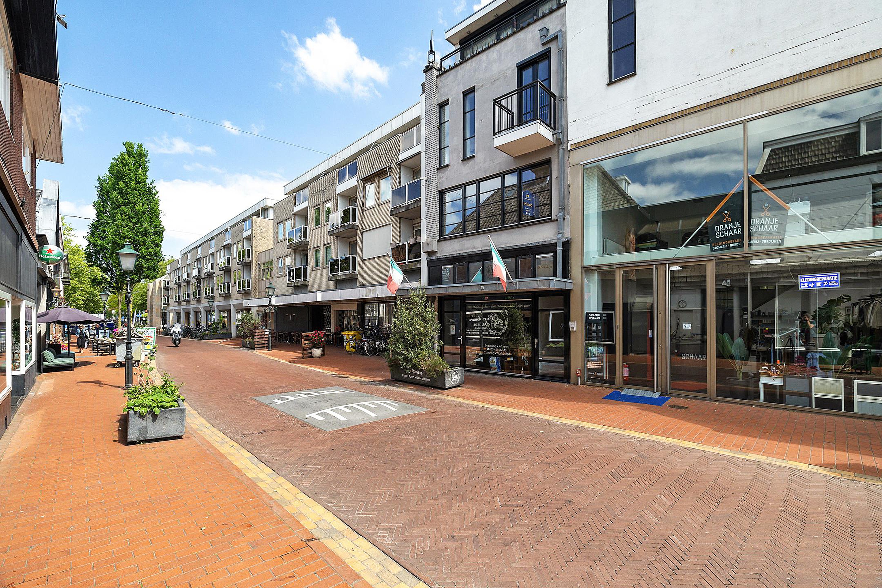 Het appartement is opvallend licht en ruim, netjes afgewerkt en heeft een speelse indeling met een deels splitlevel opzet. Aan de voorzijde vind je een klein balkon met uitzicht op de winkelstraat, terwijl je aan de achterzijde beschikt over een dakterras waar je heerlijk van de ochtendzon kunt genieten. De woning beschikt verder over een royale slaapkamer met een open badkamer.