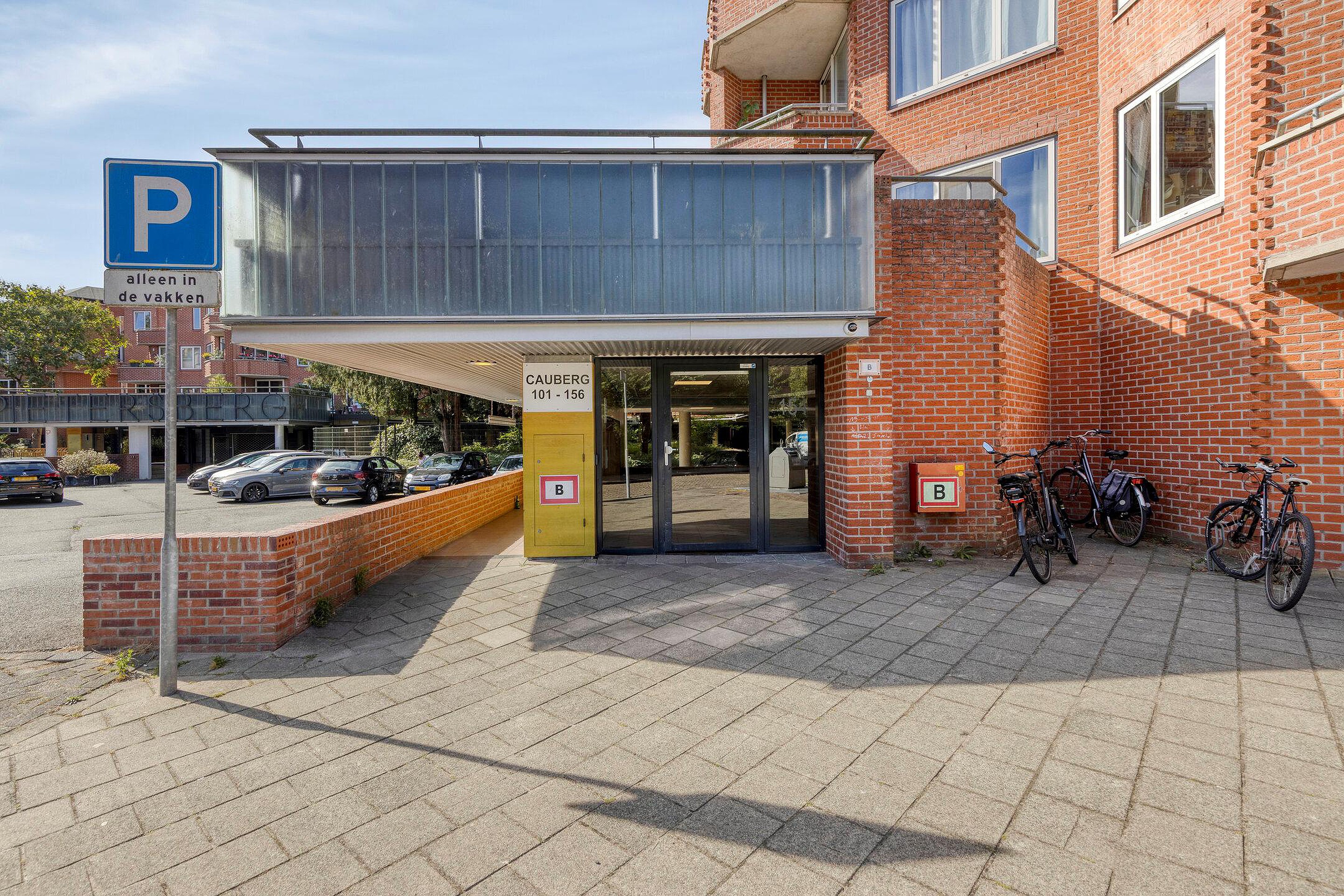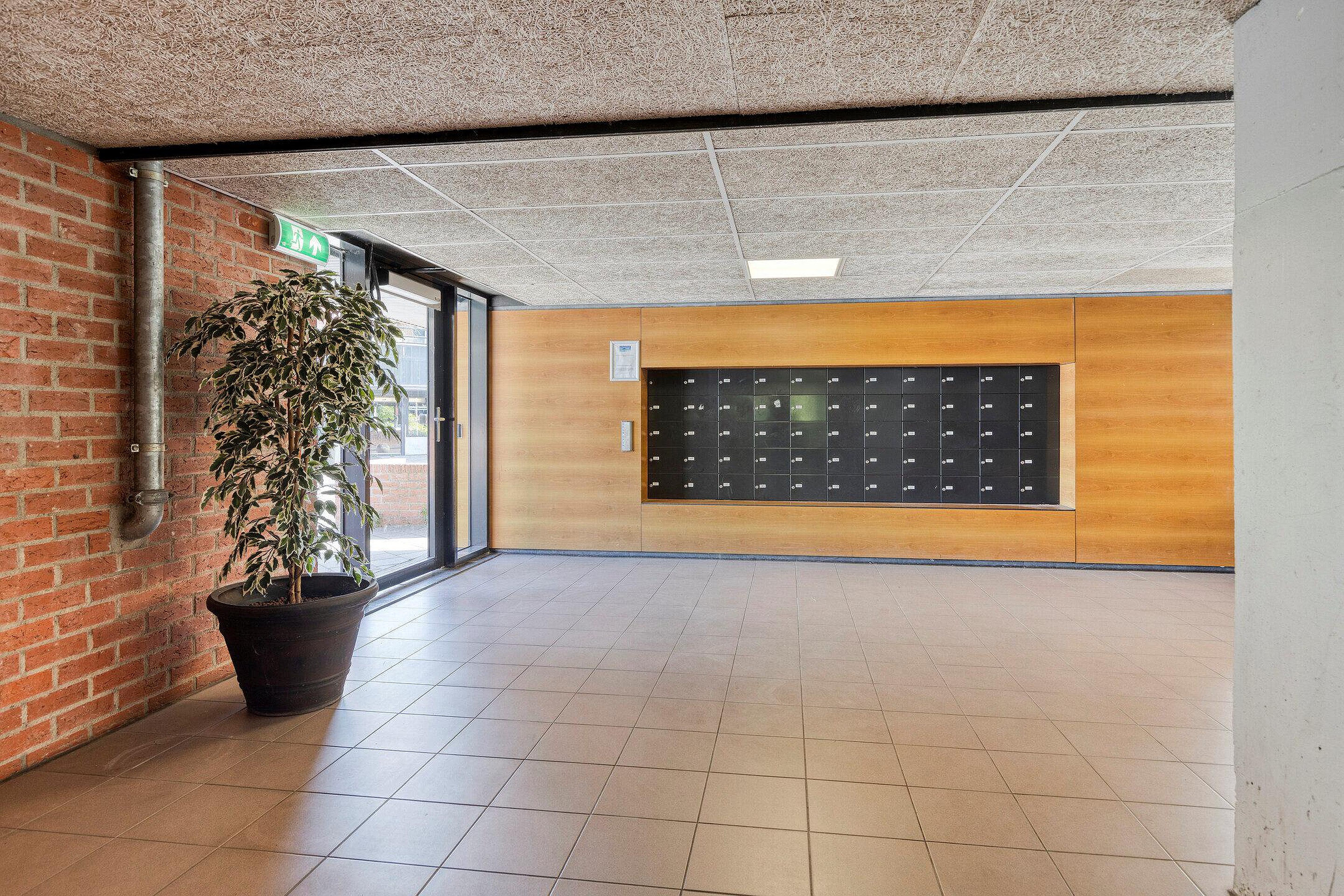 Een afgesloten entree met brievenbussen, bellentableau met videofoon en toegang tot de afgesloten parkeergarage, bergingen in de onderbouw, trappenhuis en liftinstallatie