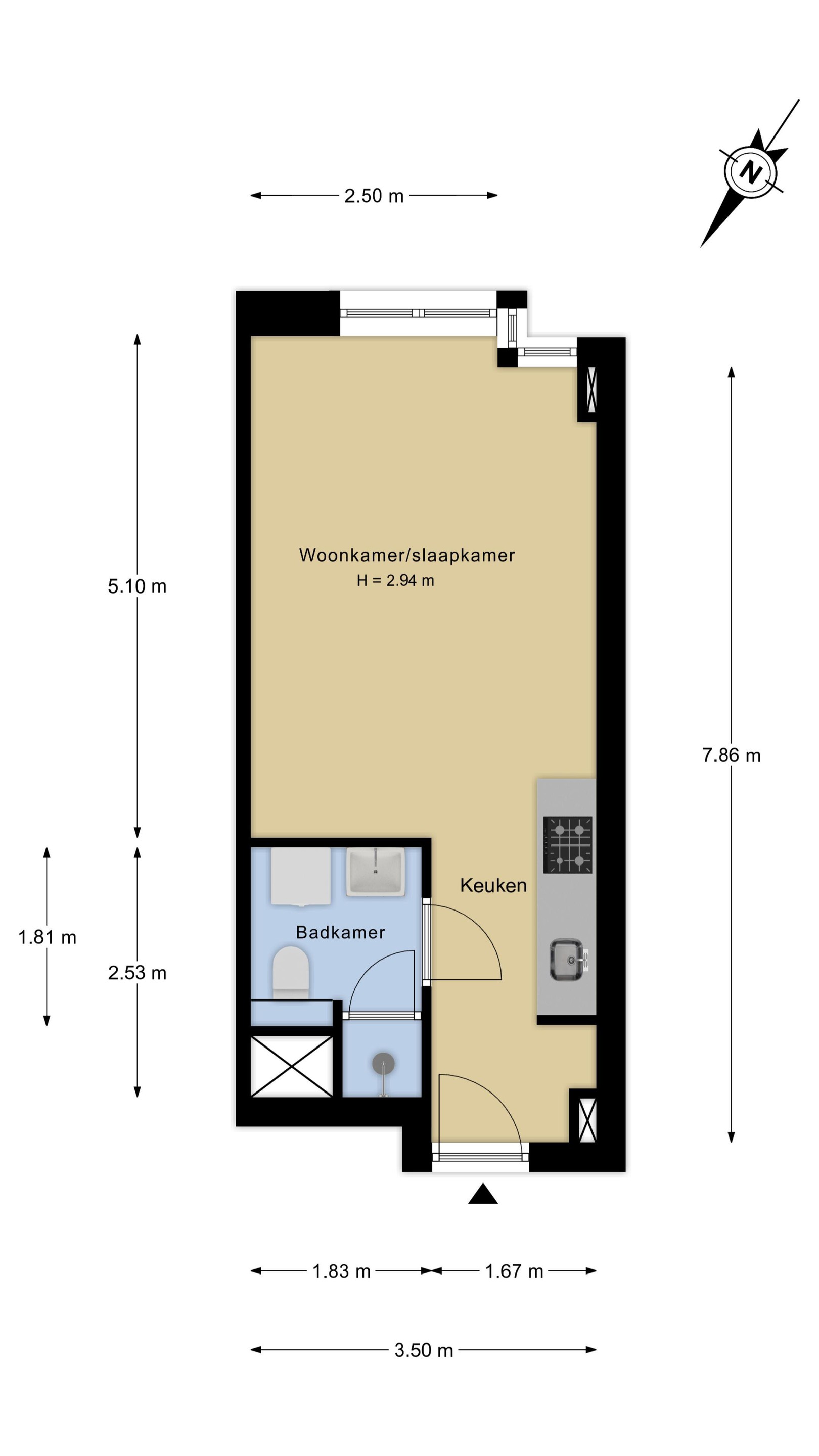 Oppervlakte woning ca. 27m2