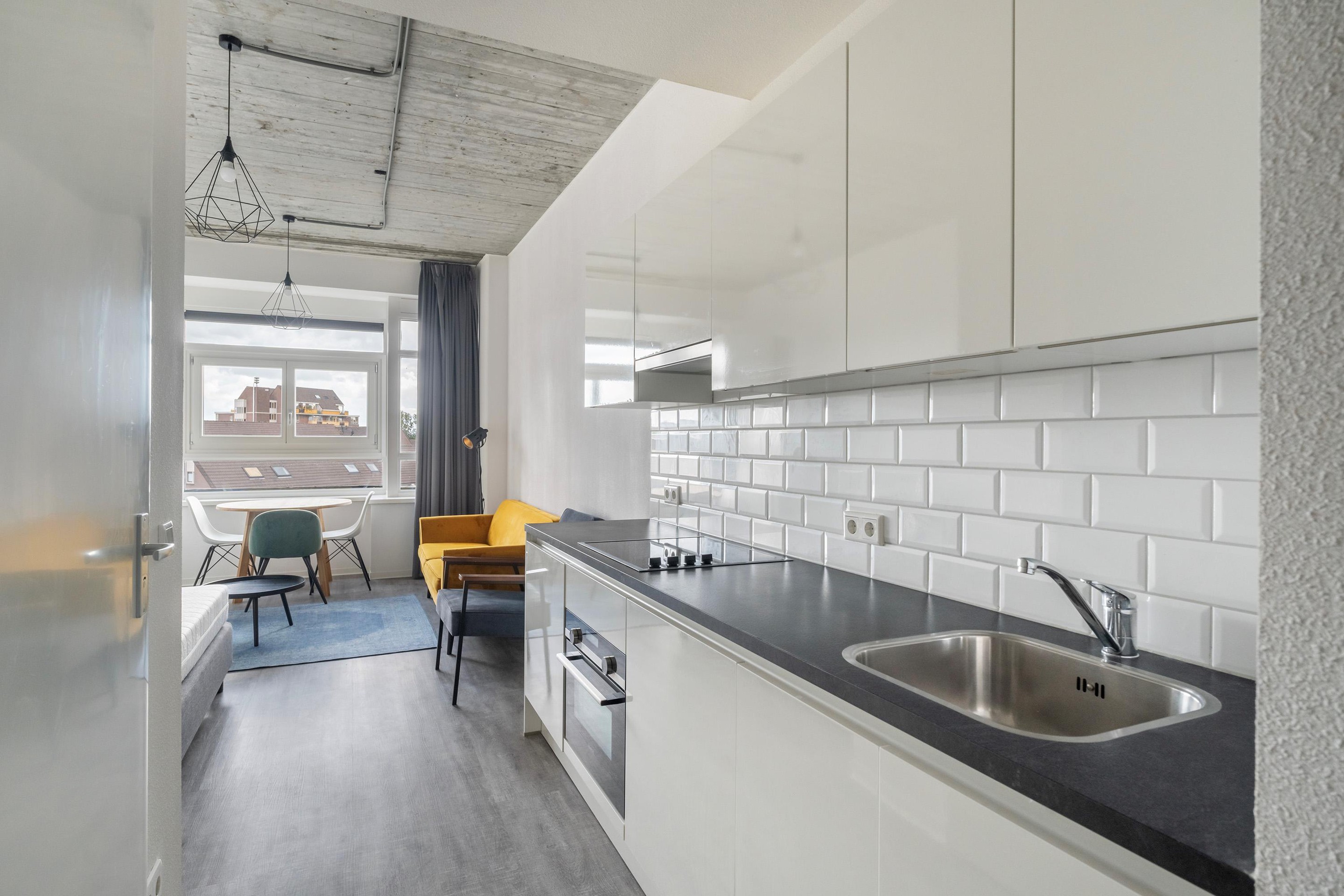 Deze efficiënte studio van ca. 27m2 op de 24e-verdieping ligt in The Sparkle, een stijlvol transformatieproject naast metrostation en winkelcentrum De Terp in Capelle aan den IJssel. U stapt zo het winkelcentrum binnen of pakt de metro naar het centrum van Capelle aan den IJssel (1 halte verder), Kralingse Zoom (Universiteit en Hoge school) of het bruisende centrum van Rotterdam – snel, direct en zonder overstappen.