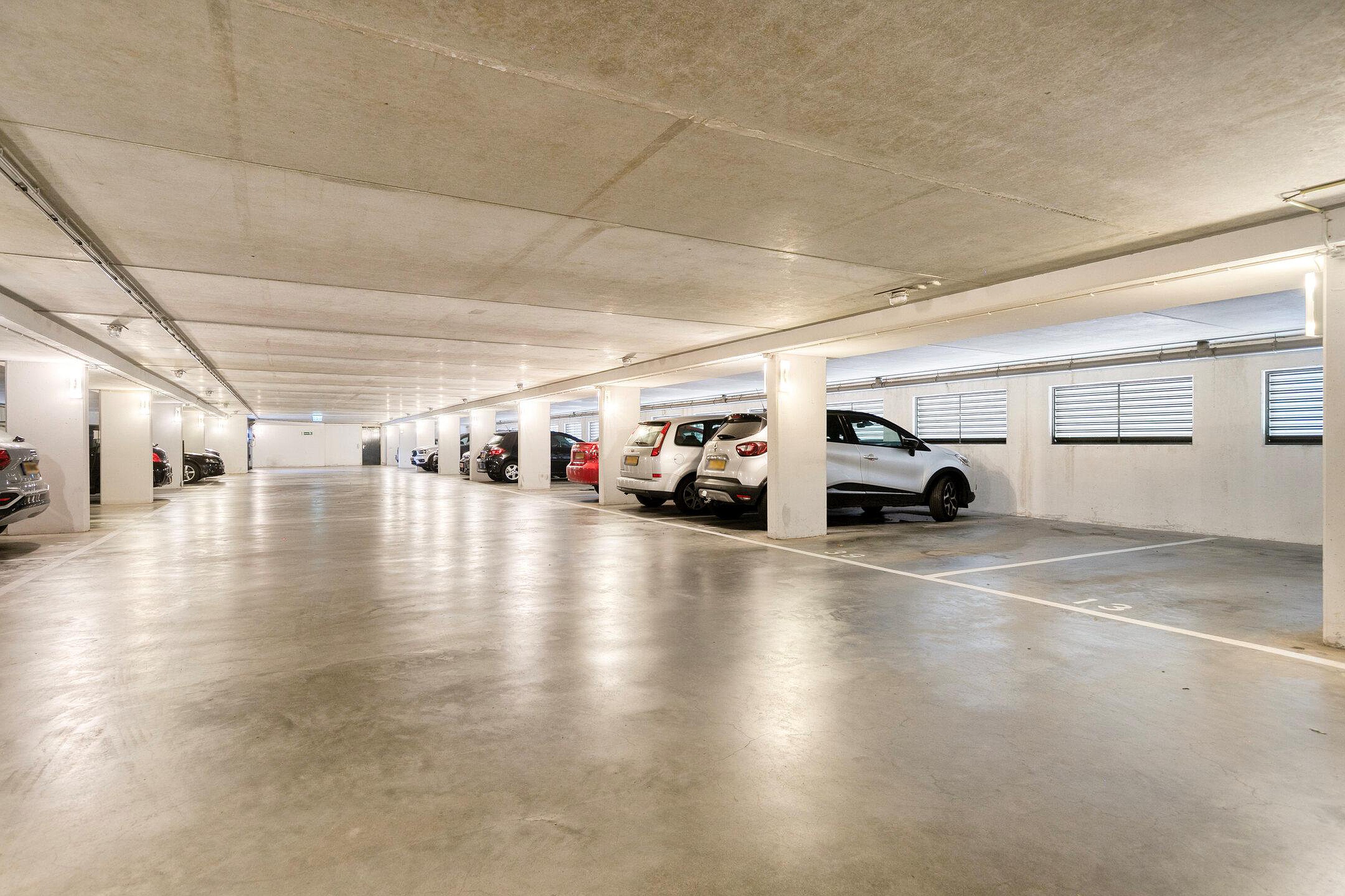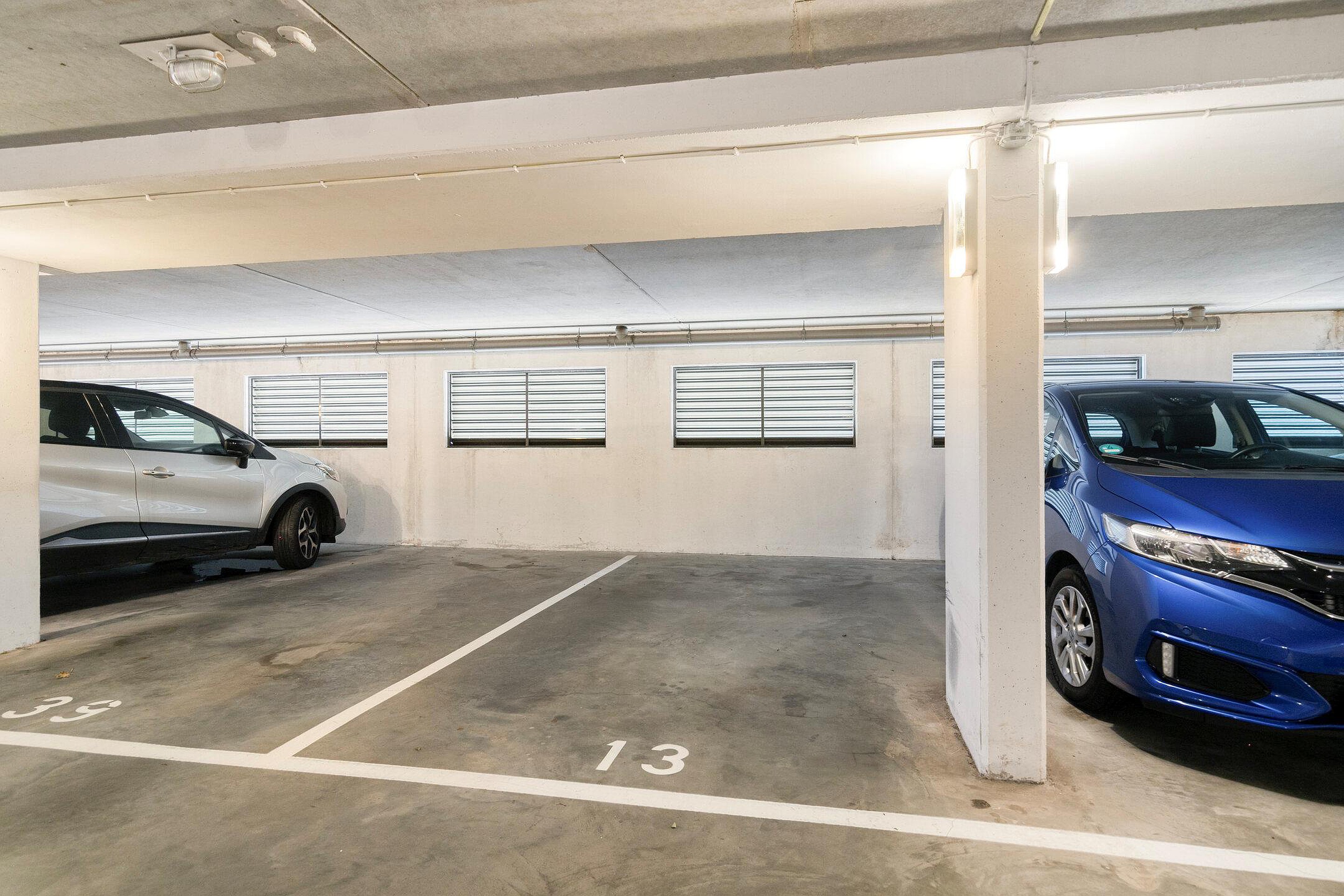 Bij het appartement zijn 2 parkeerplaatsen inbegrepen, 1 in de ondergelegen parkeergarage en 1 op het afgesloten parkeerdek.
