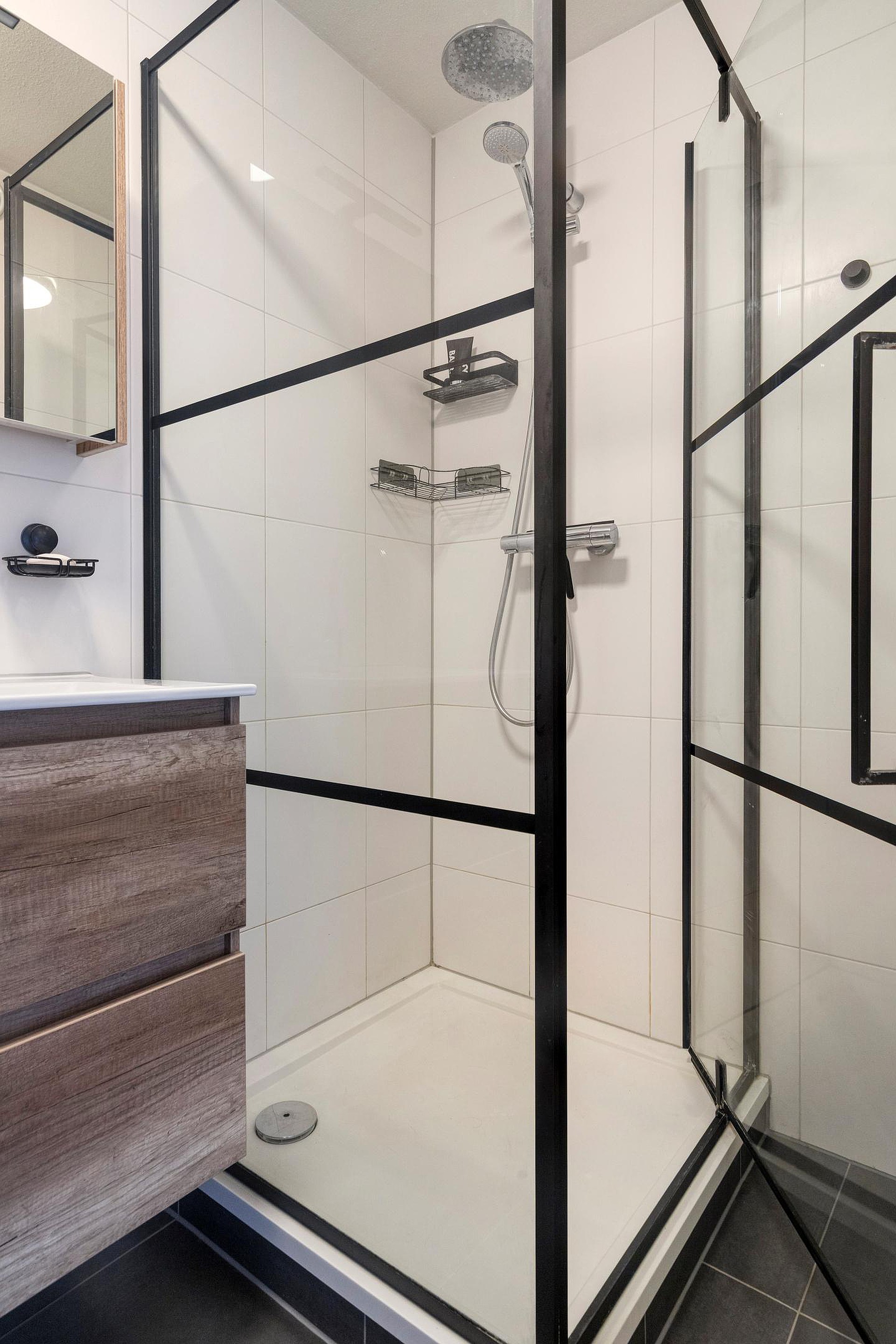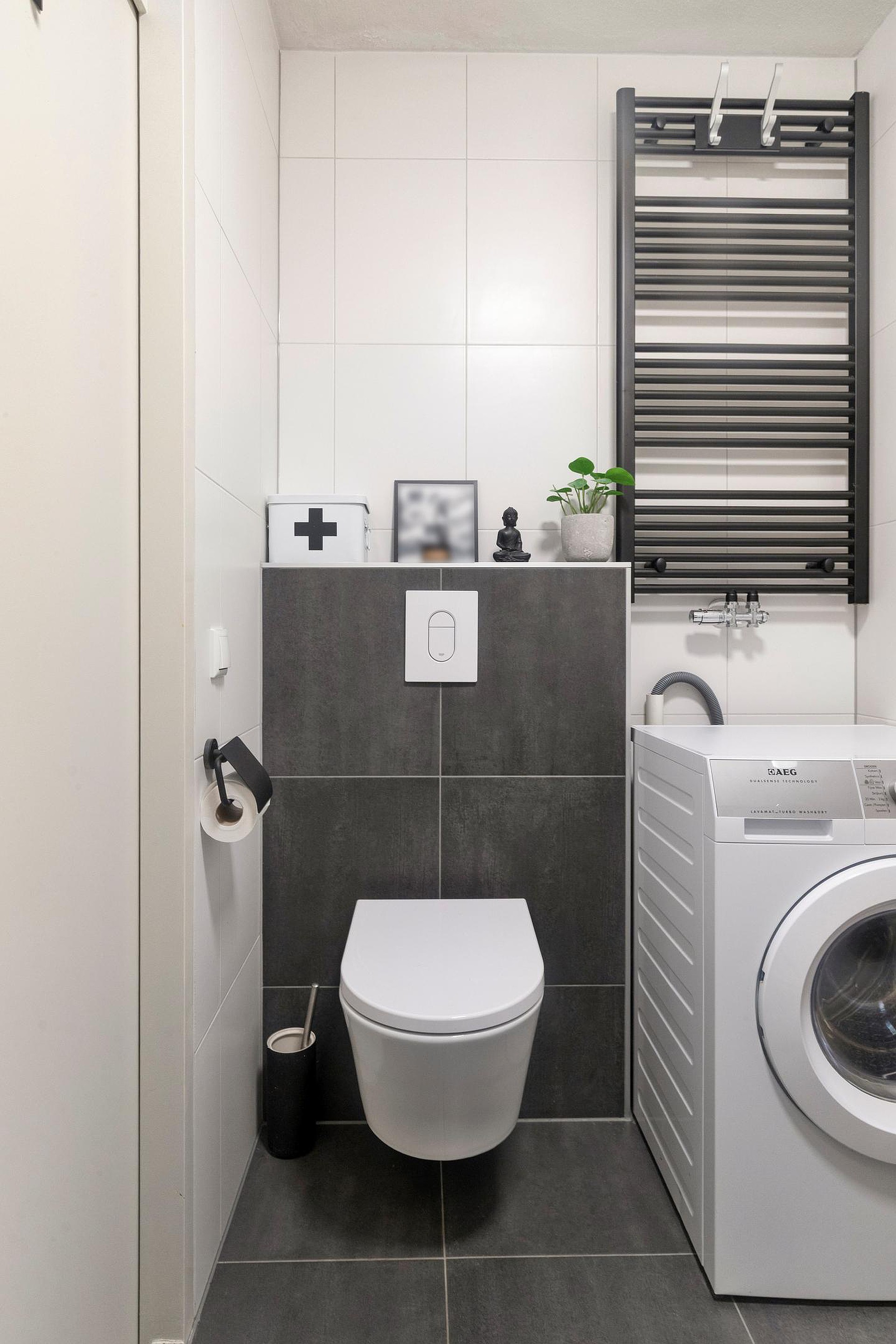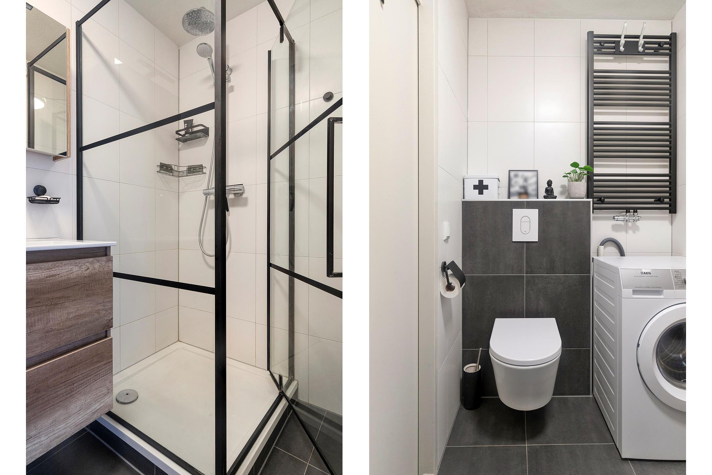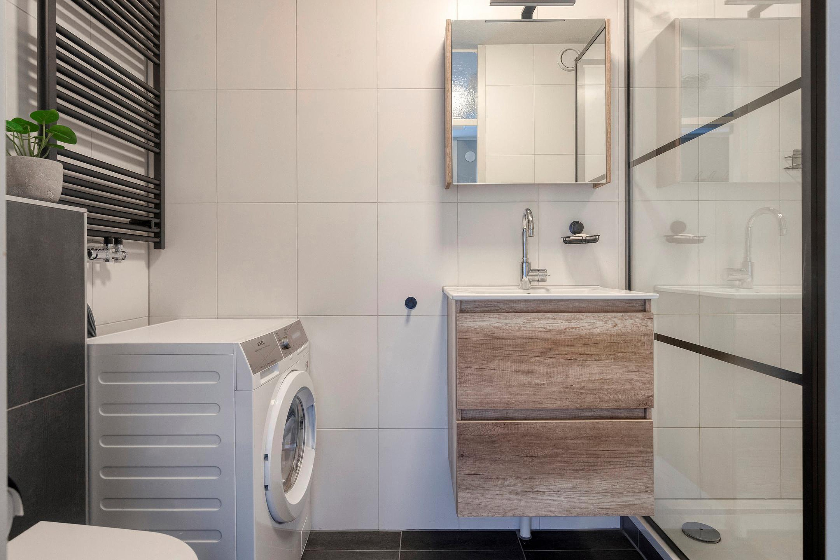 - Moderne badkamer met regendouche en wasmachineaansluiting