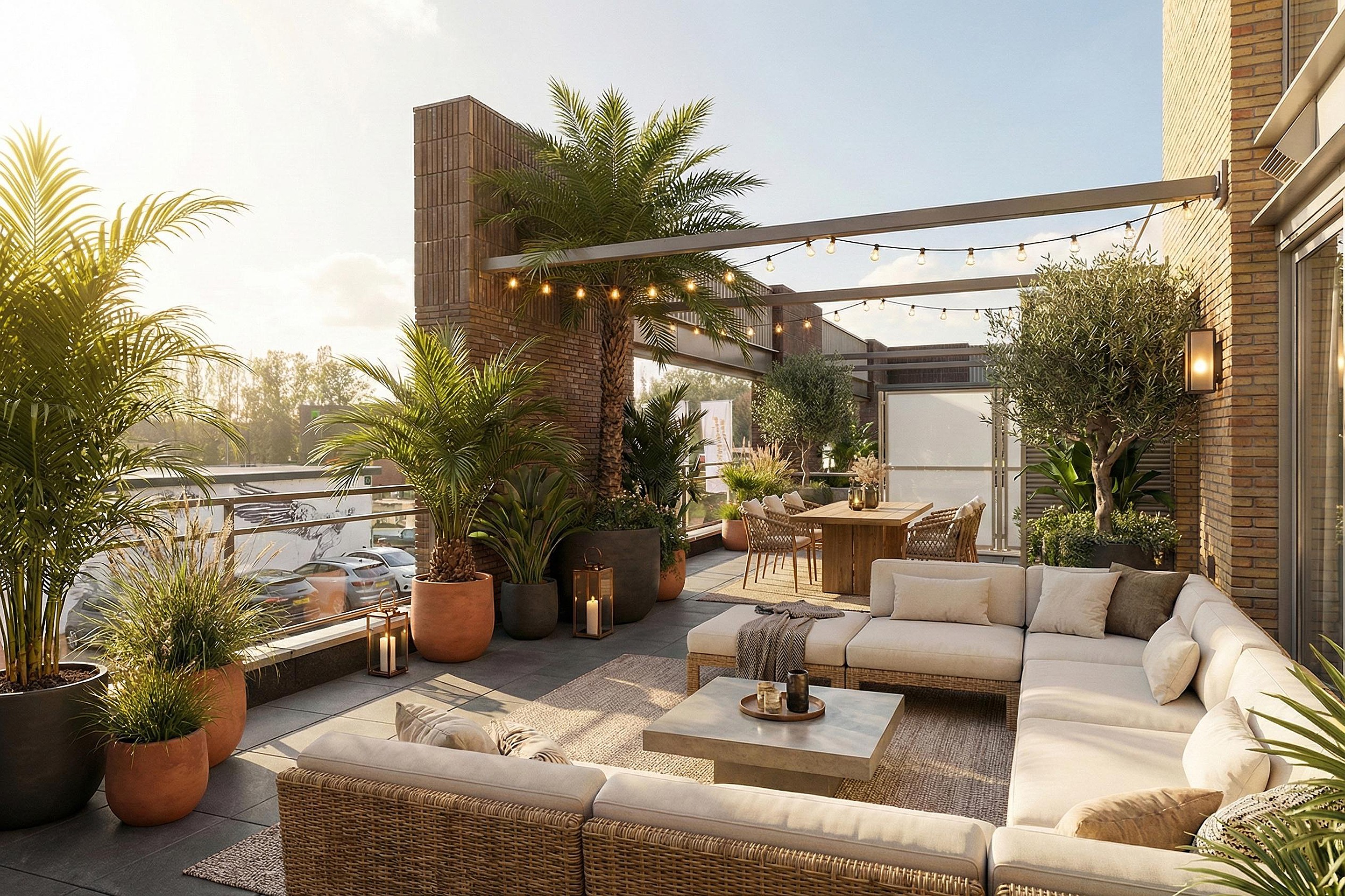 De kers op de taart is het royale en zonnige terras van ca. 57 m2 op het zuidwesten. Hier geniet je tot laat van de zon. Het perfecte plekje voor een goed glas wijn, een diner in de buitenlucht of gewoon een ontspannen middag met een boek.