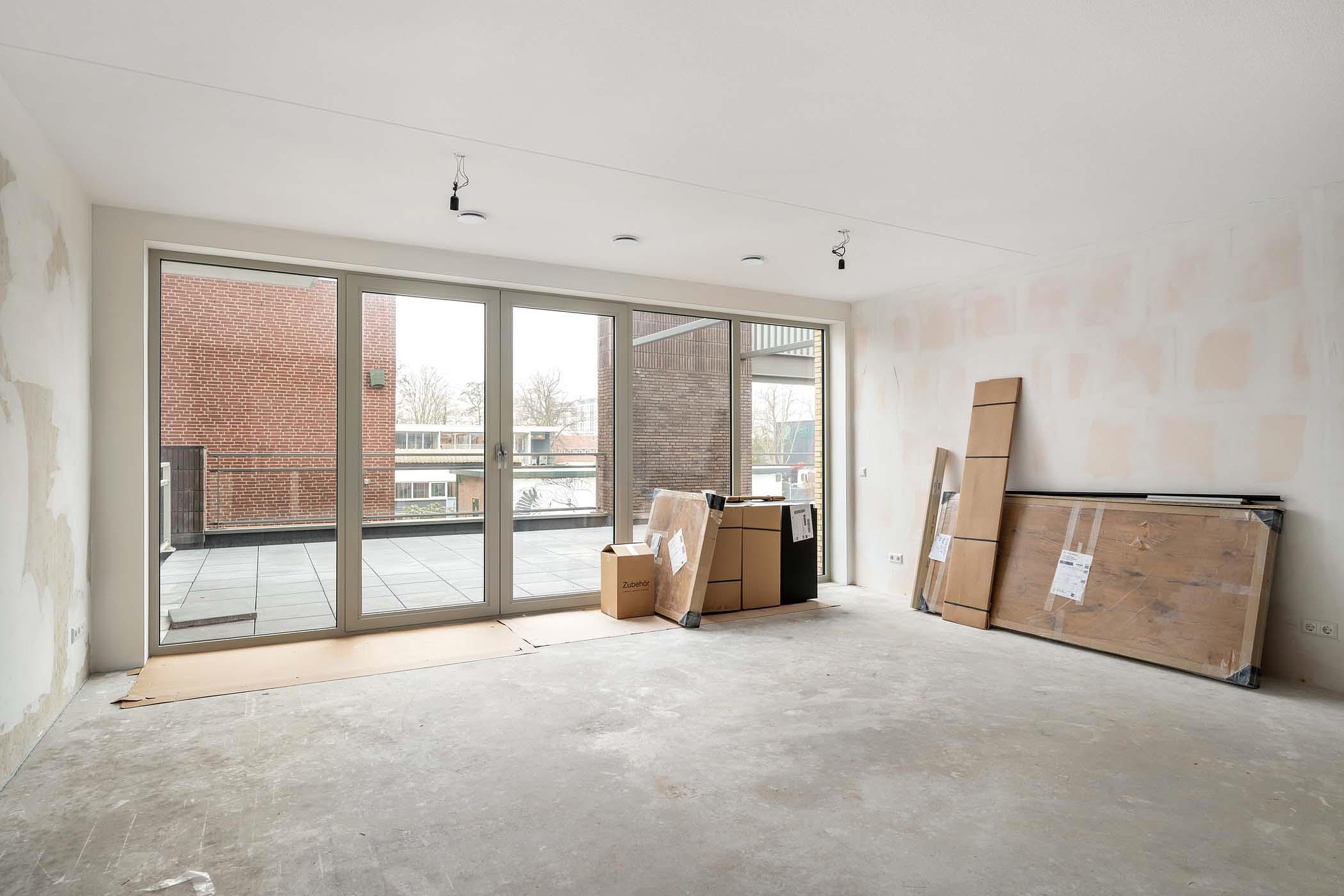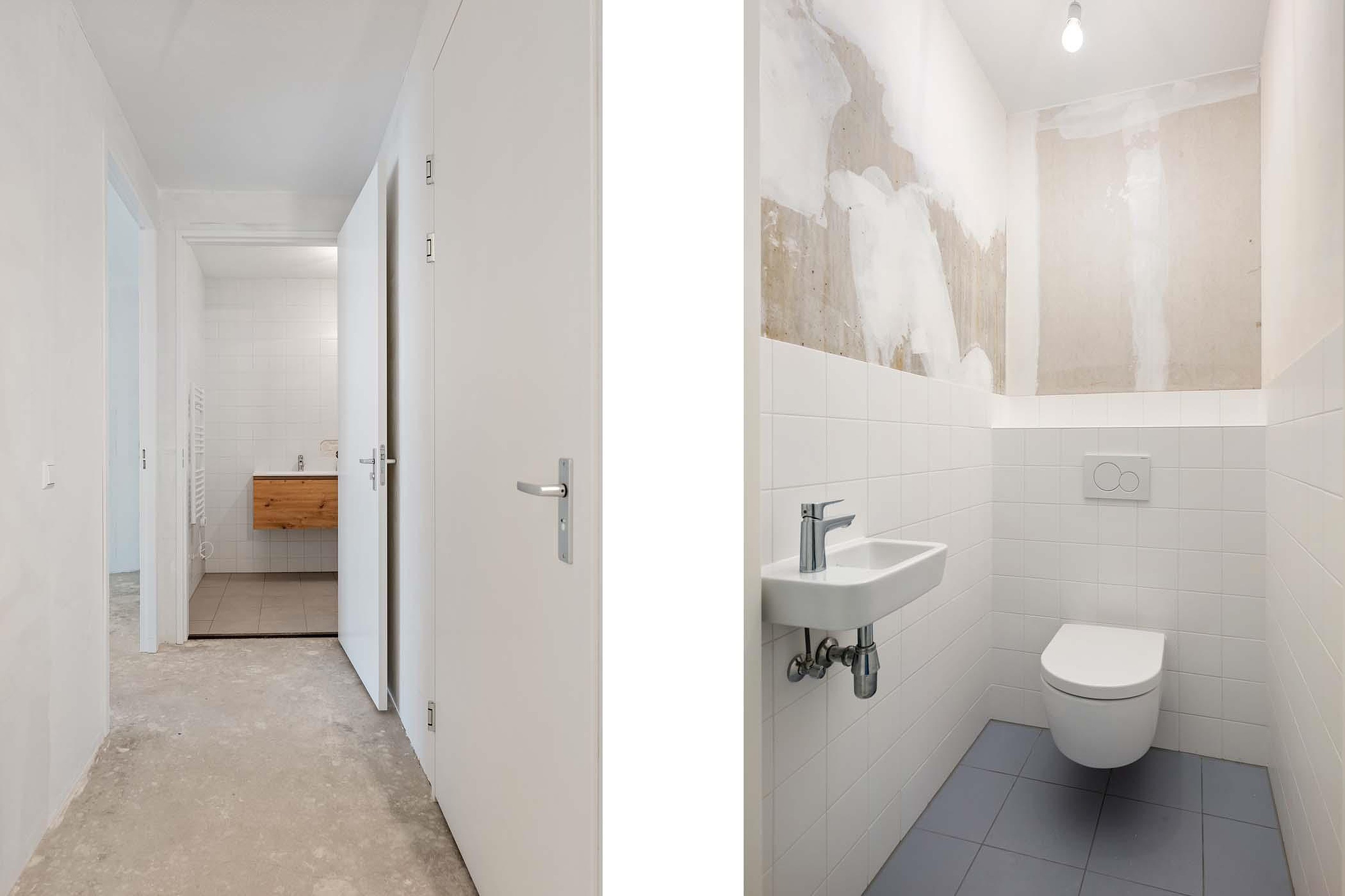 De badkamer en toilet zijn tijdens de bouw gerealiseerd. Verder zal het appartement 'casco' worden opgeleverd. Je kunt dus je eigen keuzes maken voor de vloer- en wandafwerking.