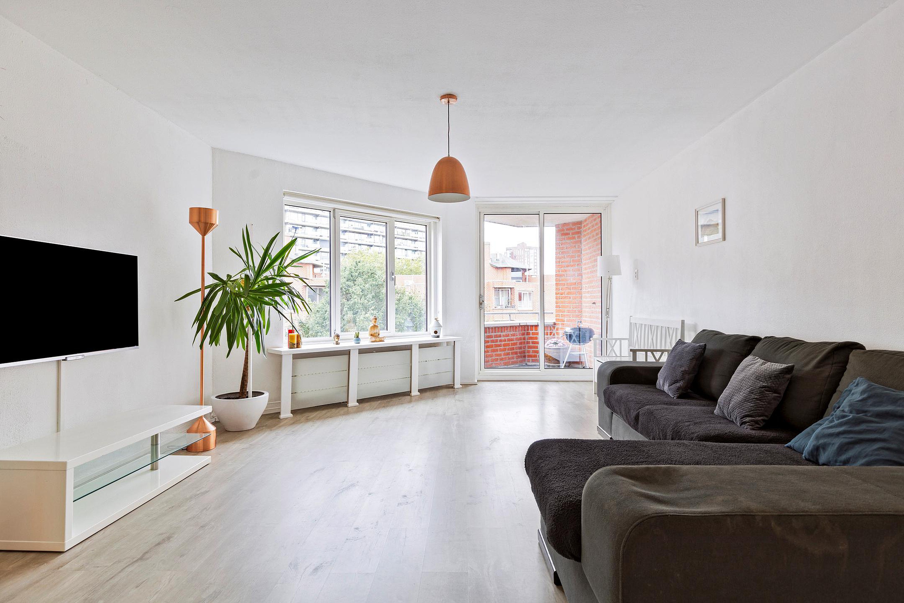 - Ruime en speelse woonkamer met toegang tot terras en balkon