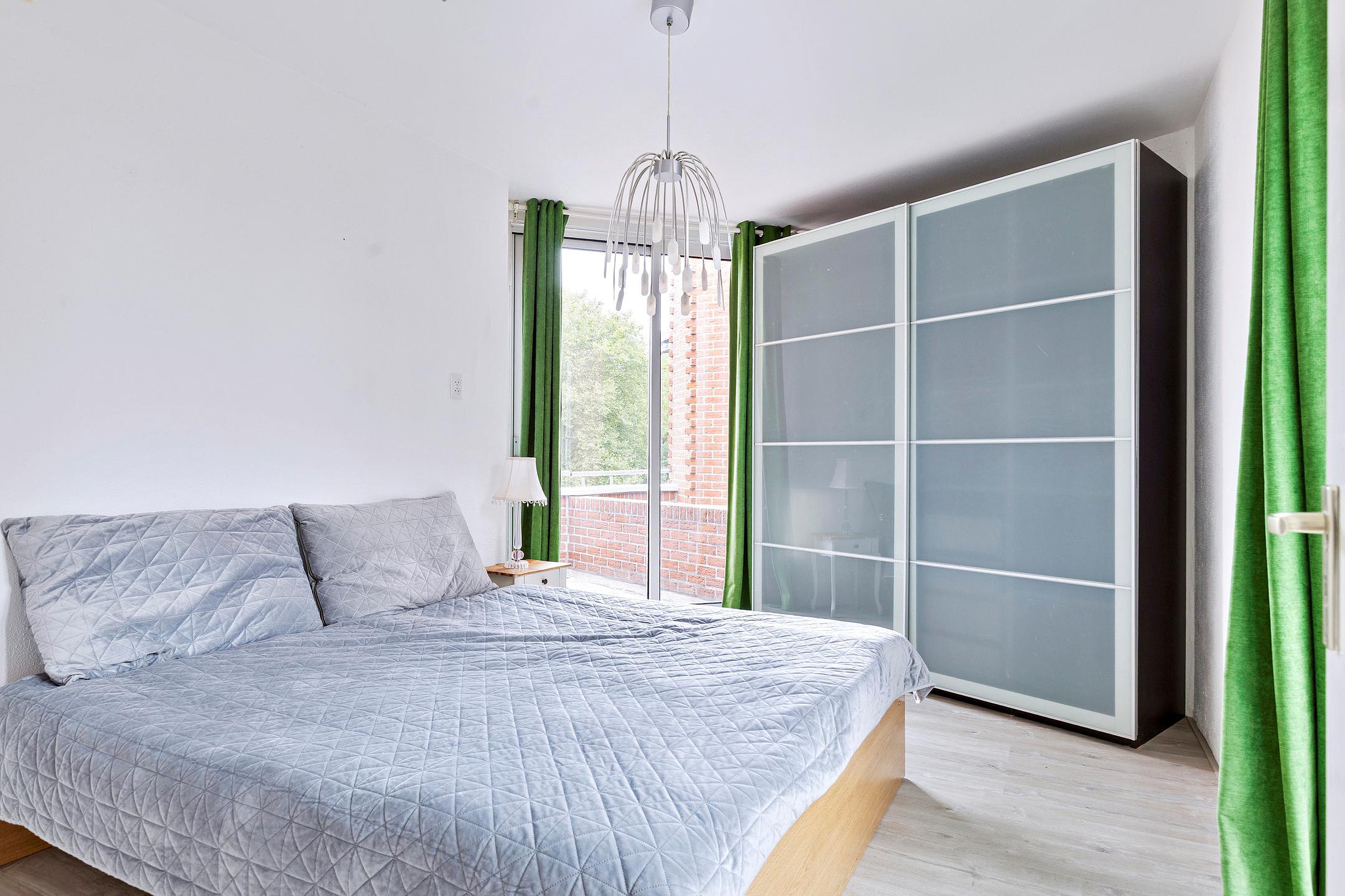Slaapkamer 1, een goed formaat slaapkamer, met toegang tot het dakterras en het balkon.