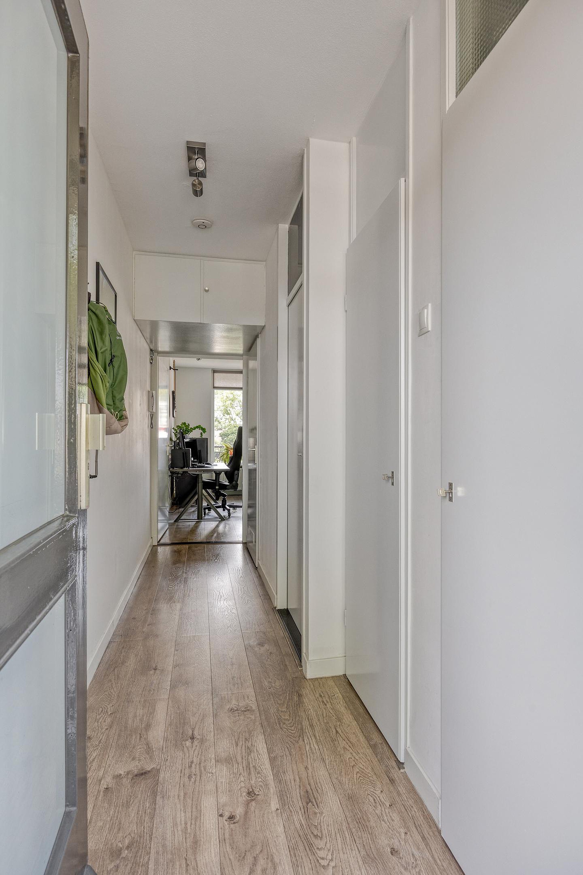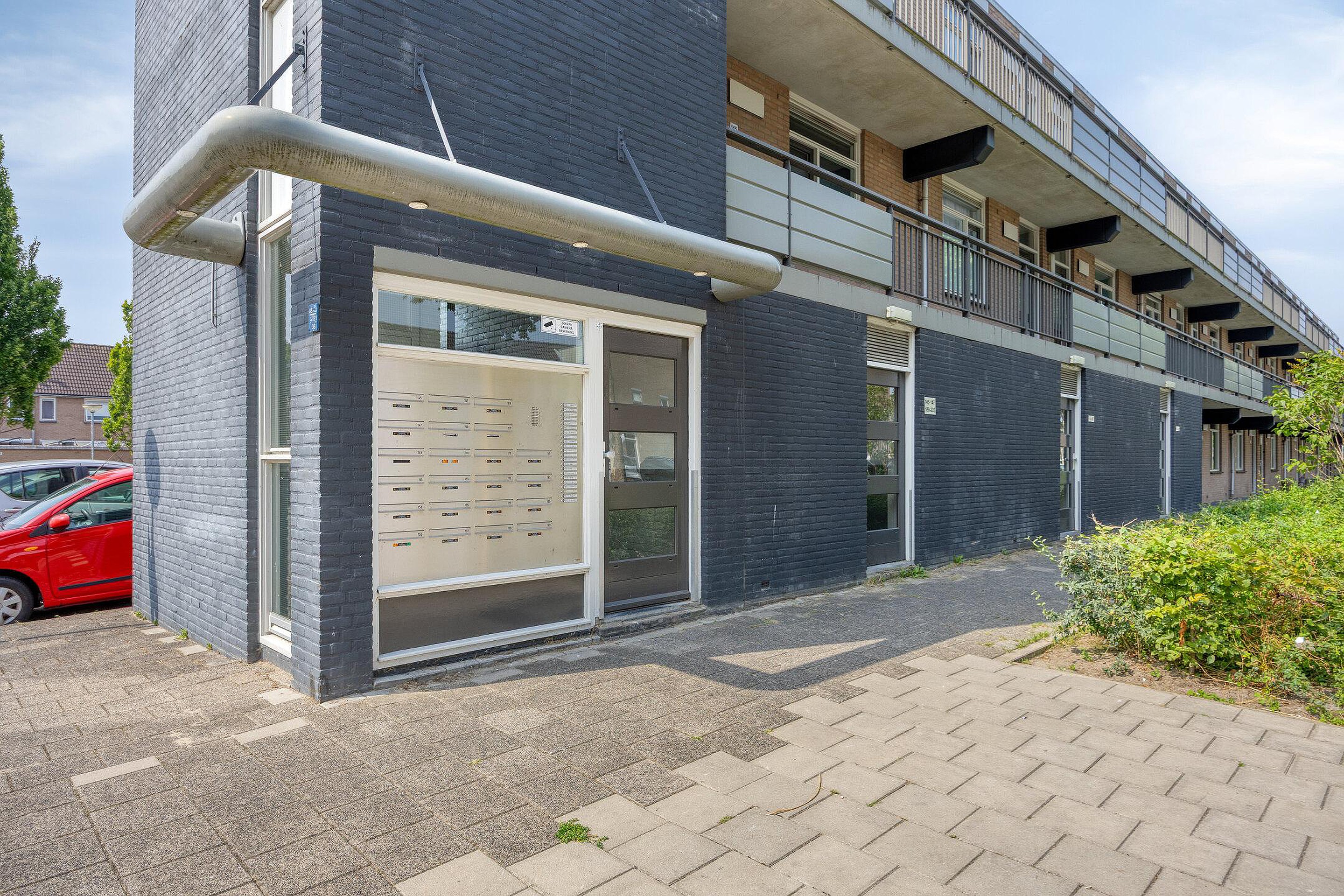 Beneden een bellentableau, een nette ontvangstruimte ruimte, op de begane grond. Hier bevindt zich ook de box welke tot het appartement behoord. Tevens is er een fietsenberging aanwezig.