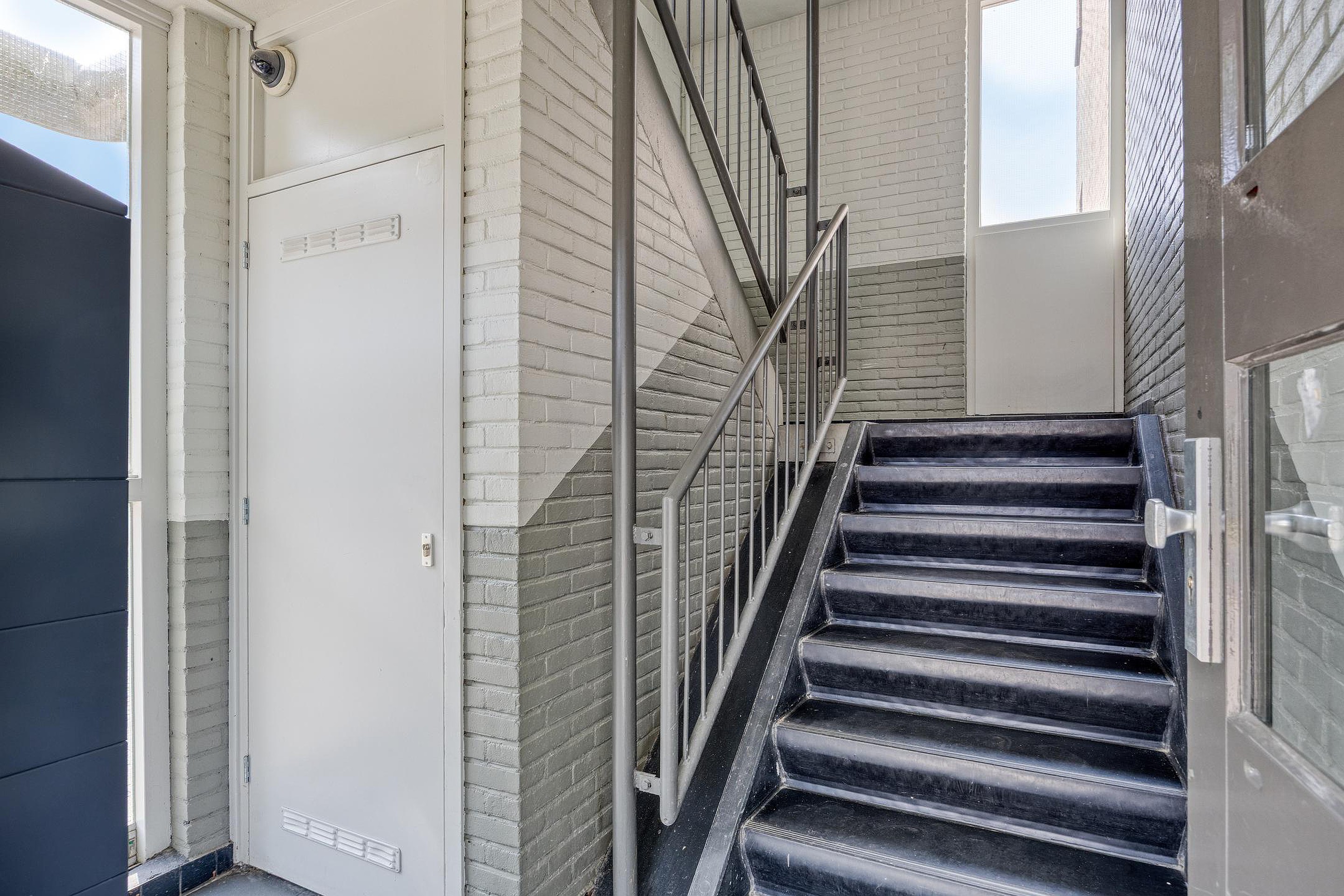 Met de trap naar de eerste verdieping, waar het appartement zich bevindt.