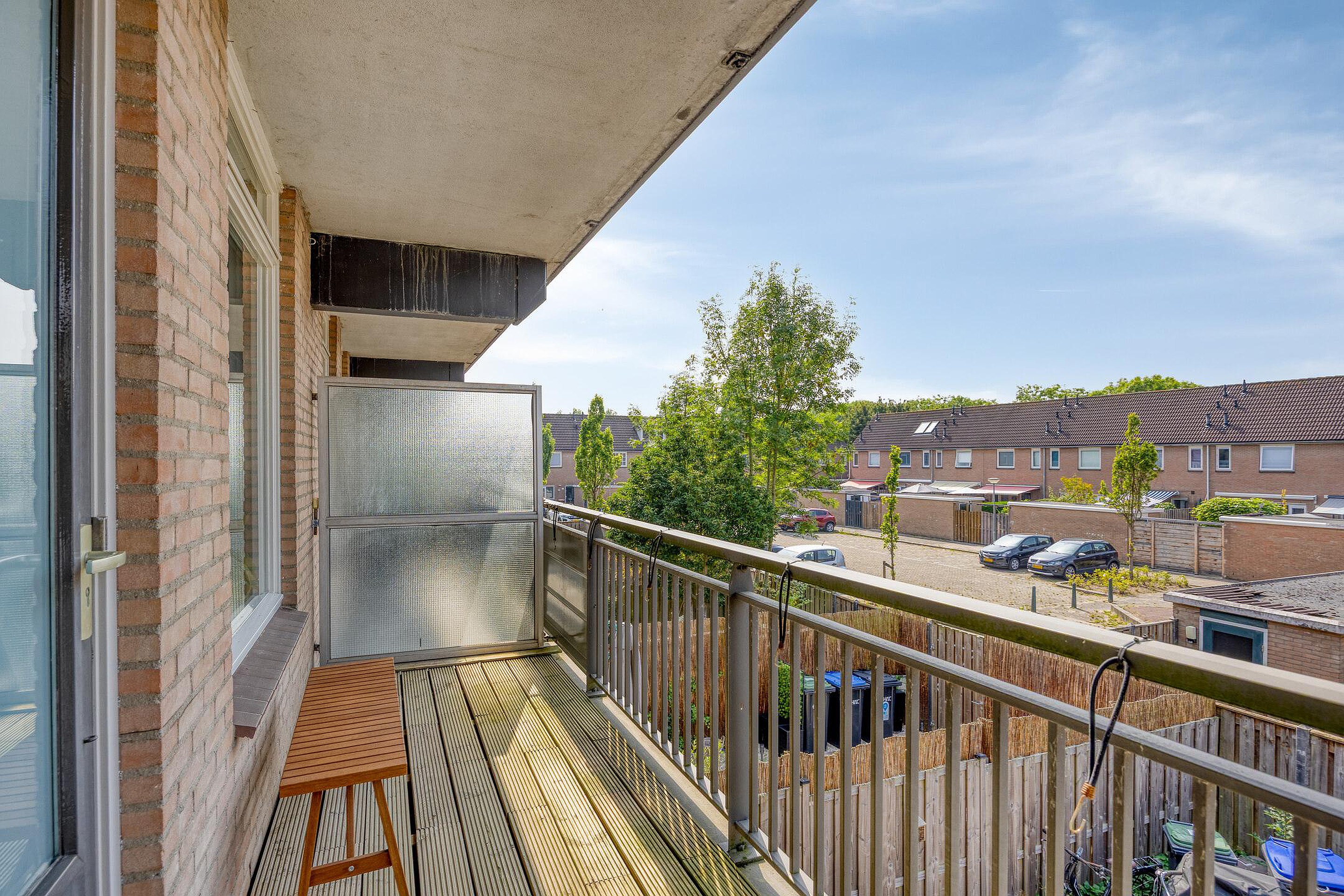 Aangekomen bij het appartement, een ruime hal met daarin de kast met CV-opstelling en meterkast. De hal geeft toegang tot de slaapkamer aan de voorzijde van het appartement, de badkamer in het midden van het appartement ( voorzien van douche, wastafel en toilet ) en de woonkamer aan de achterzijde. De lichte woonkamer geeft toegang tot het ruime balkon welke over de gehele breedte van het appartement is. Vanuit de woonkamer loopt u tevens de keuken in, die ook weer toegang geeft aan de slaapkamer.