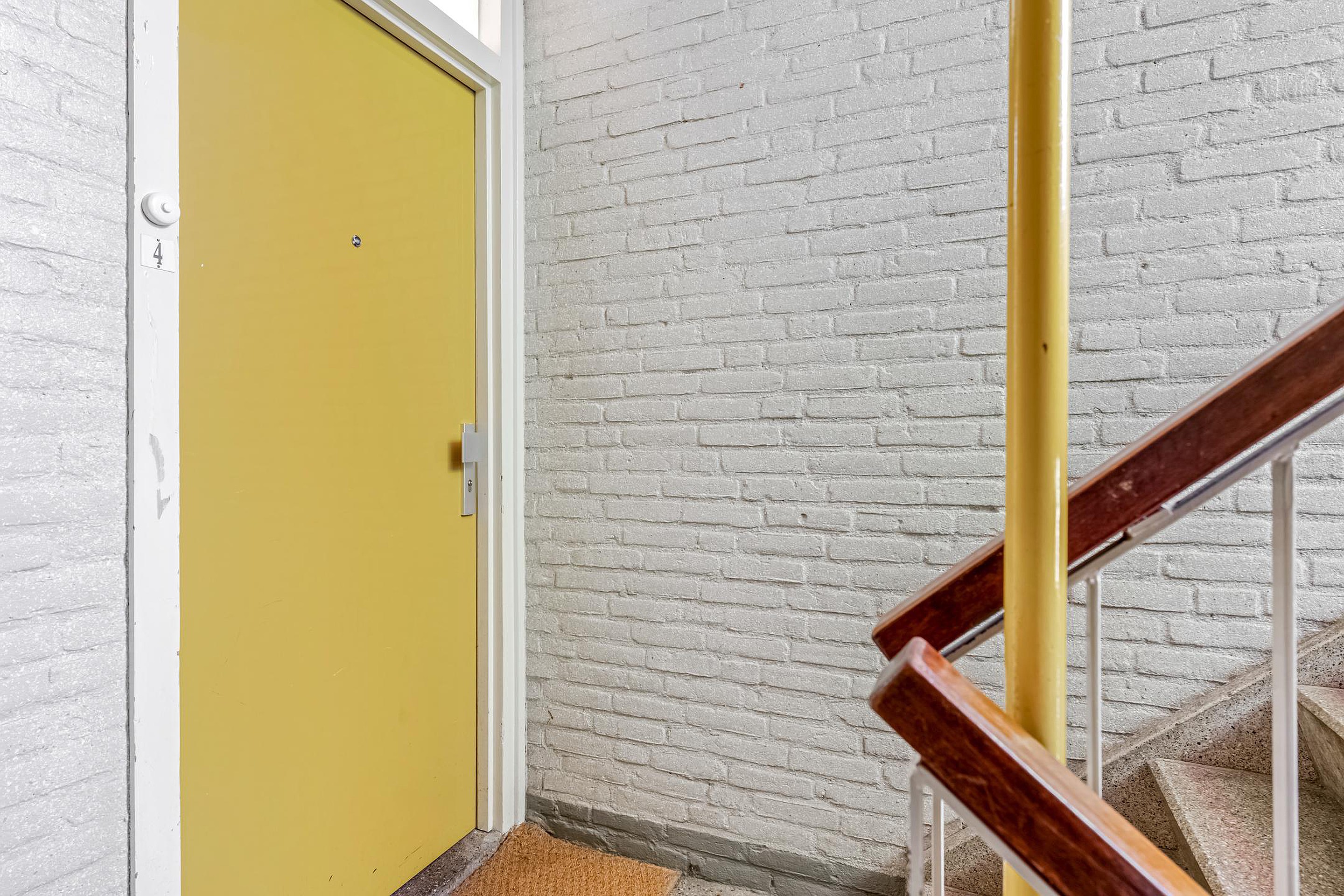De gezamenlijke entree is voorzien van brievenbussen, intercominstallatie en een elektrisch te openen toegangsdeur. Vanuit het afgesloten trappenhuis bereikt u de berging in de onderbouw en het appartement op de eerste verdieping.