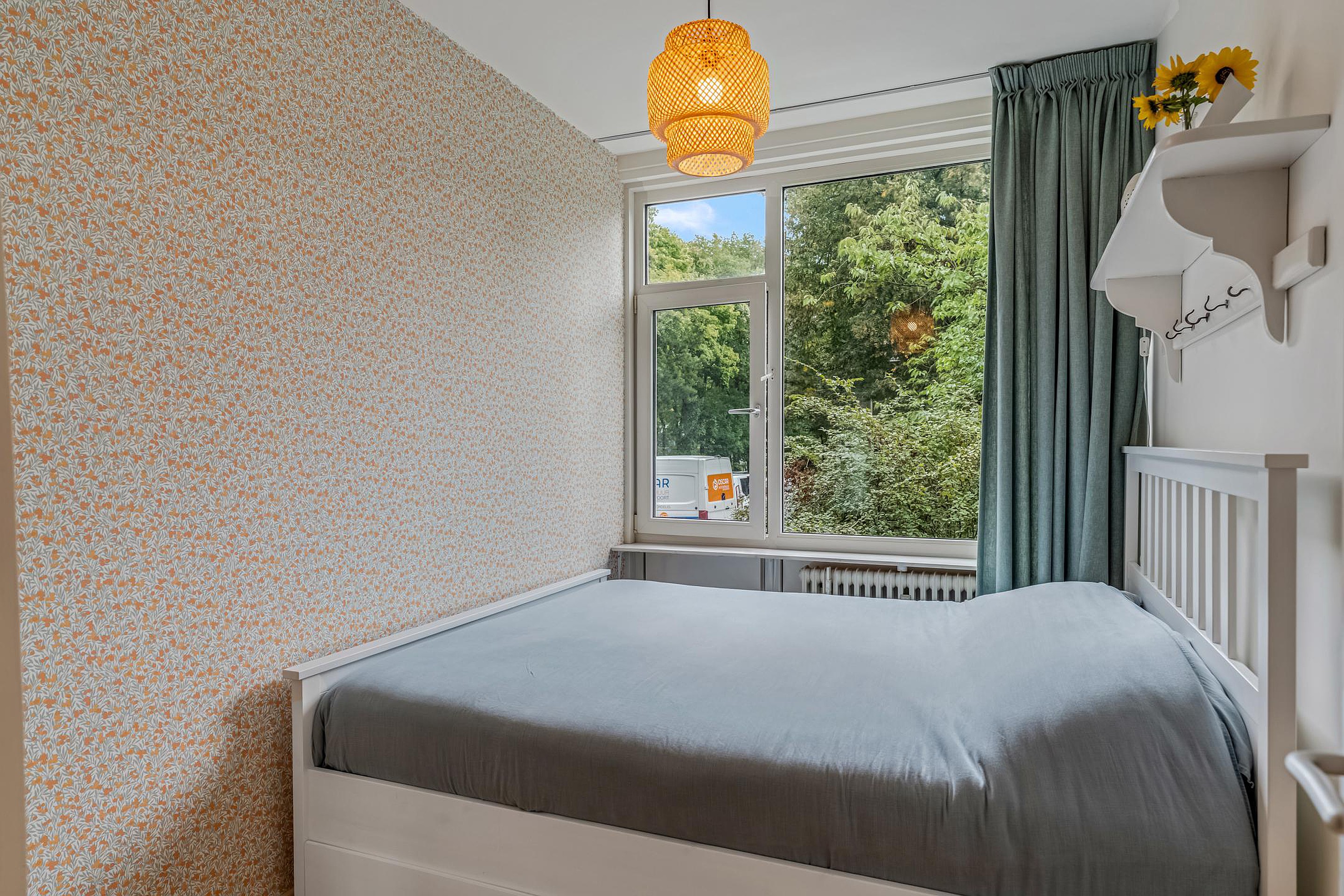 De ene slaapkamer is aan de voorzijde van de woning gelegen en de andere aan de achterzijde.