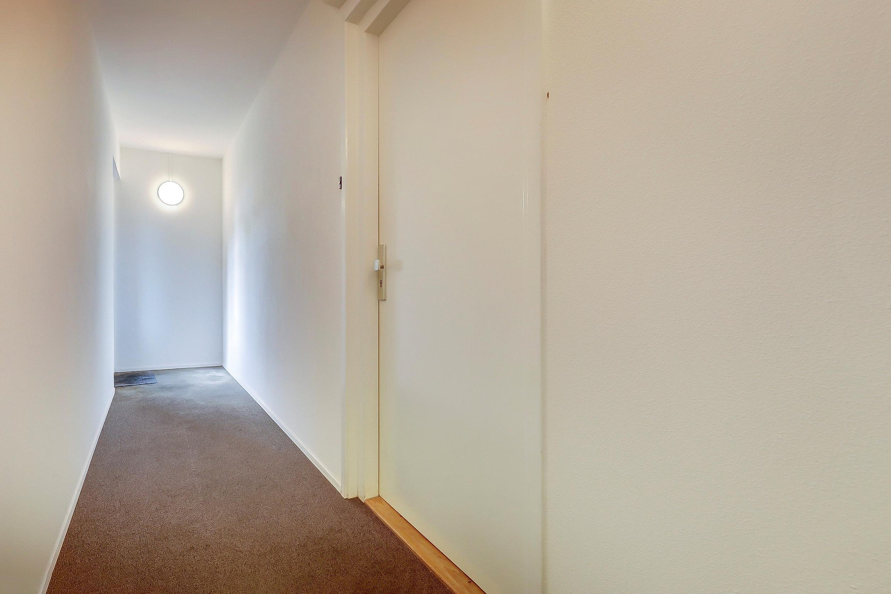 - Hal: een ruime, vergrote hal met toegang tot de badkamer en woonkamer.