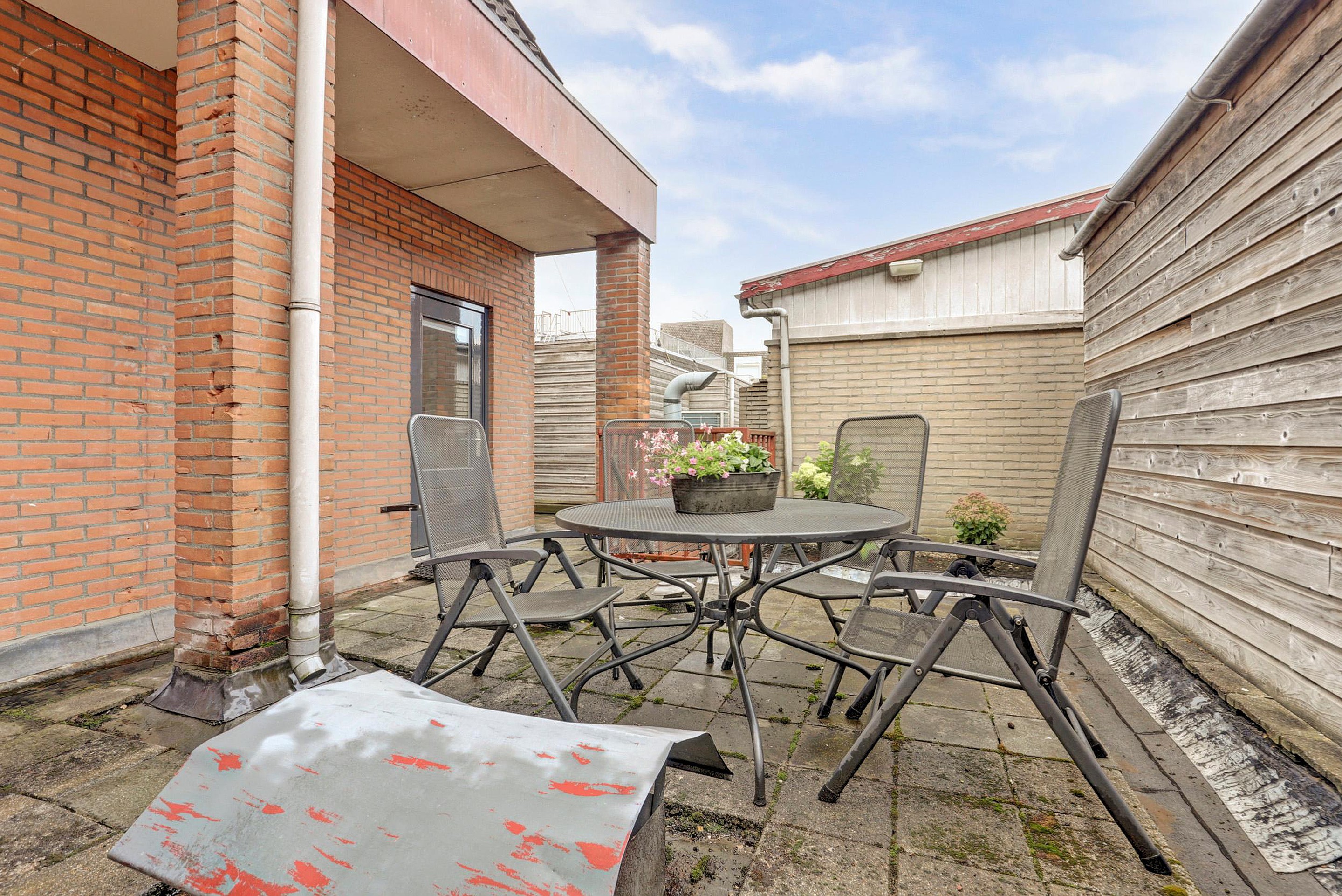Het appartement bevindt zich op de eerste verdieping en beschikt over een gezamenlijk royaal dakterras én een eigen berging.