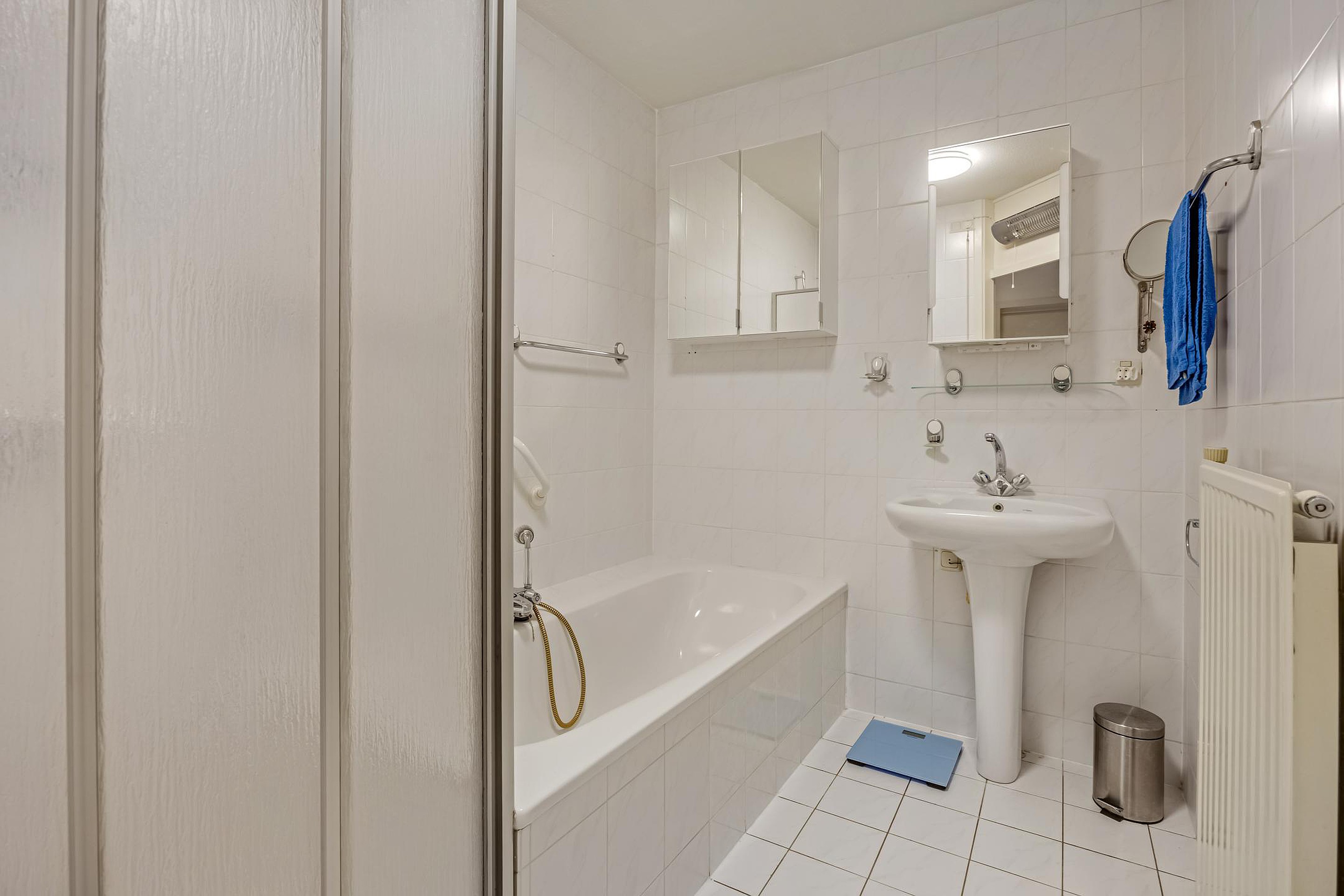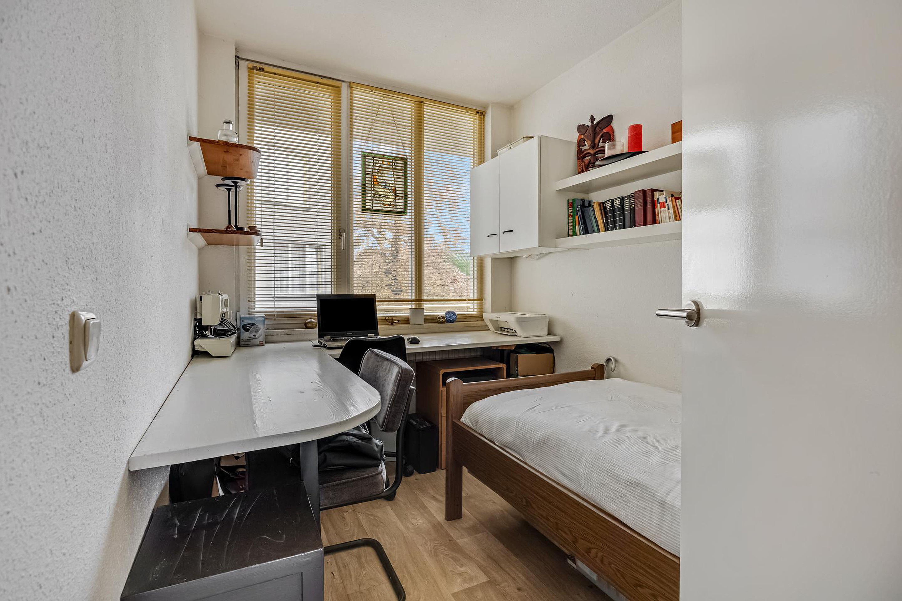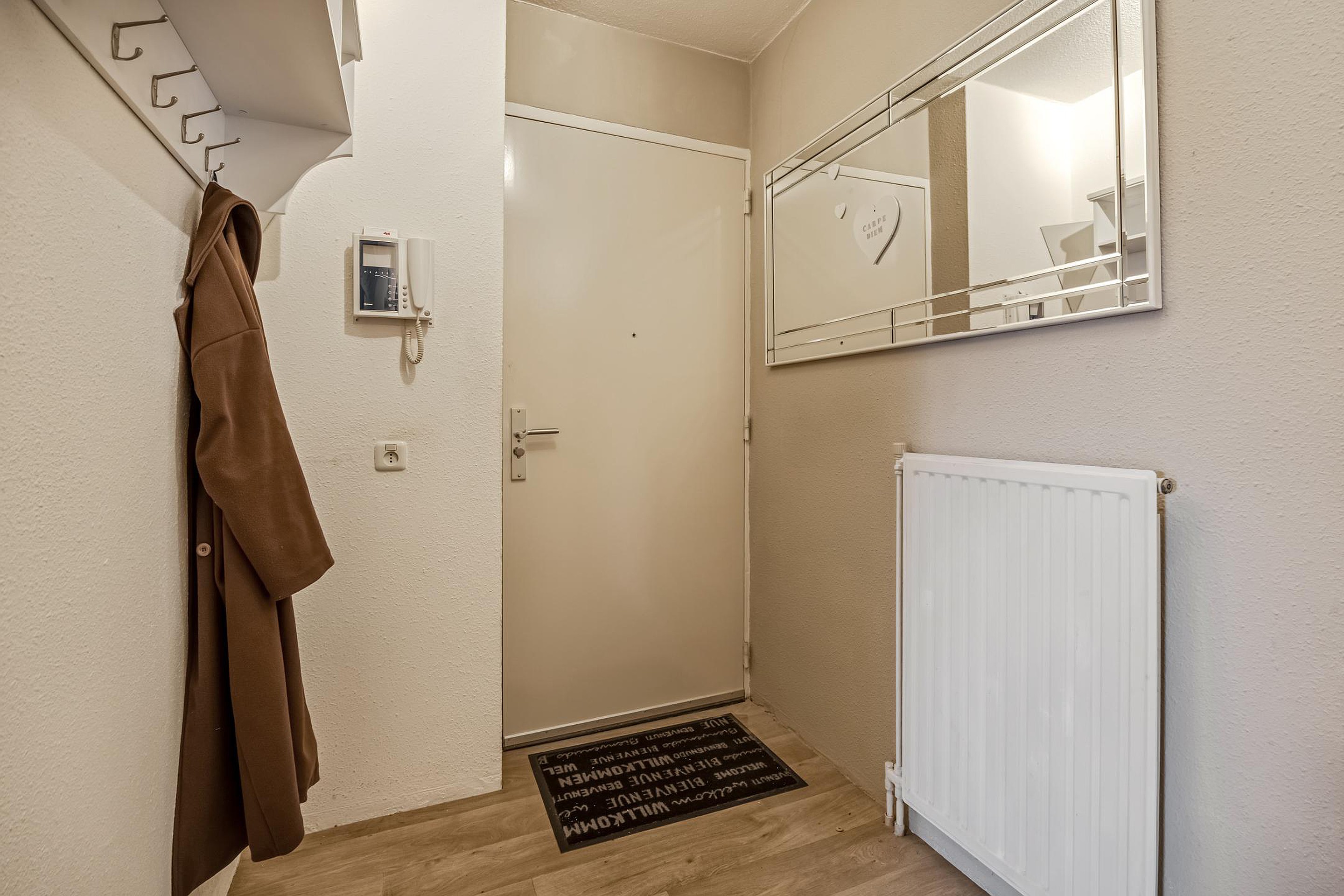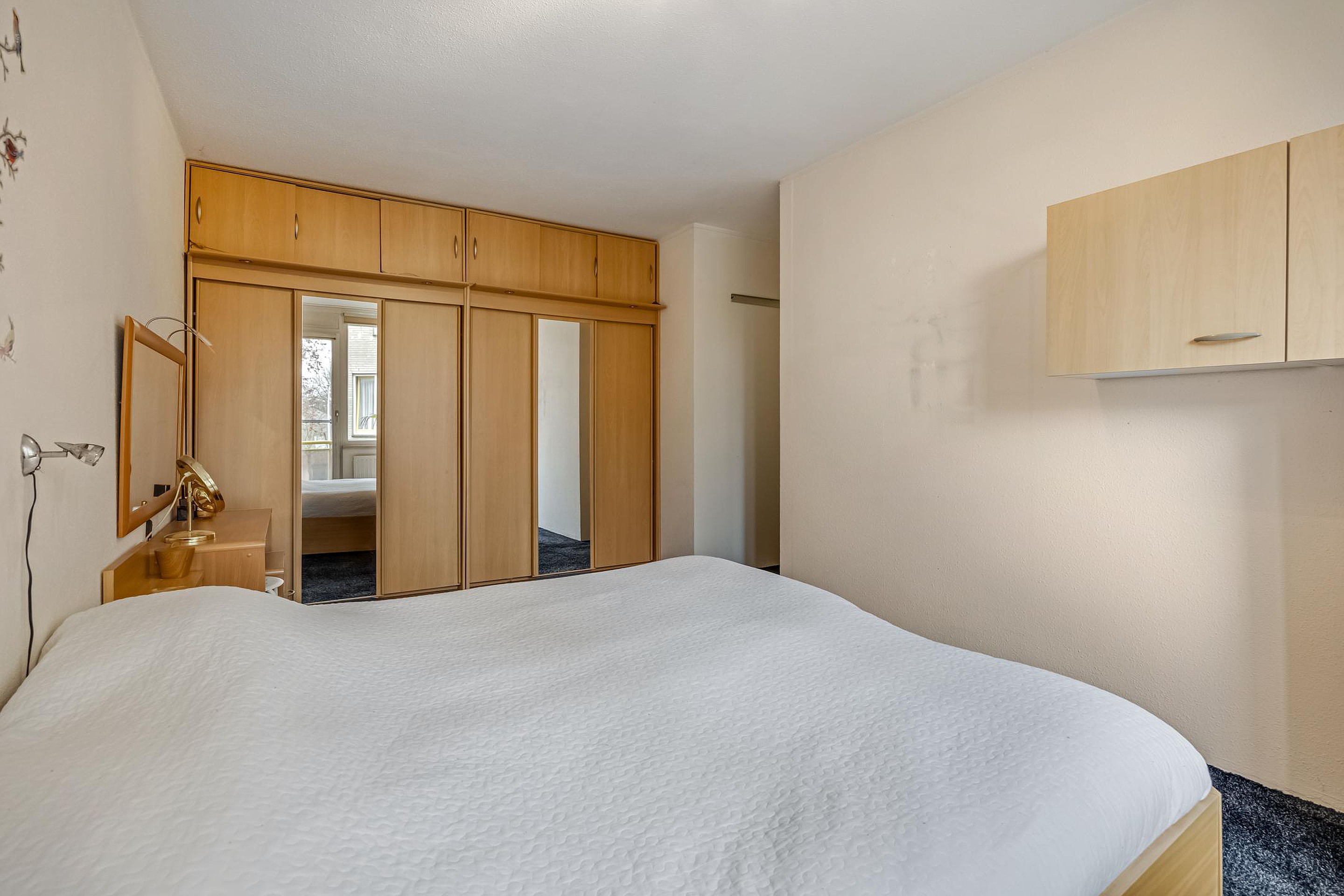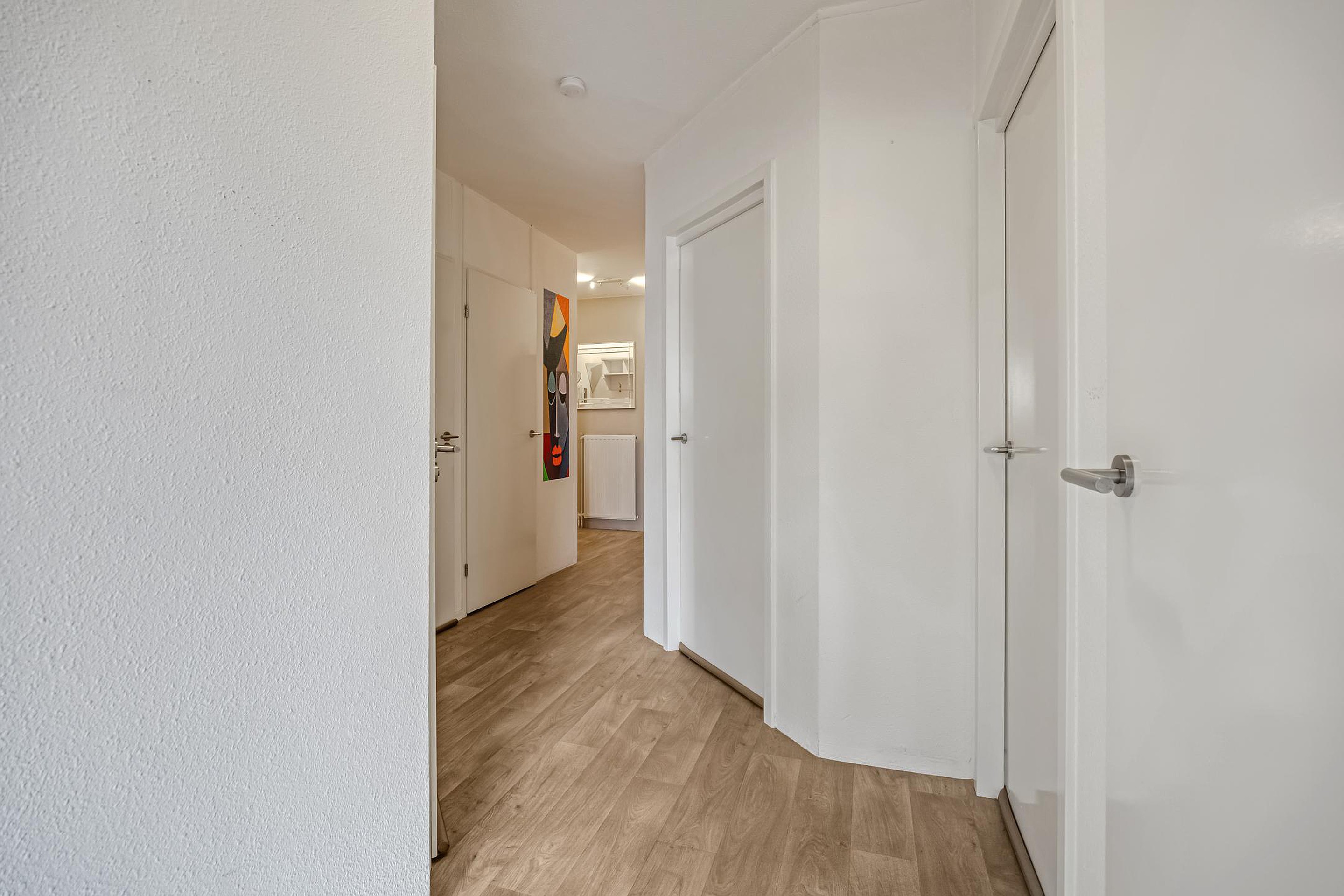 Wanneer je de woning binnenkomt, stap je de ruime hal binnen. Vanuit hier heb je direct toegang tot het toilet en de badkamer, die centraal en praktisch zijn gelegen. Vanuit de hal loop je door naar de twee slaapkamers, beide prettig van formaat en flexibel in te richten. De riante hoofdslaapkamer geeft toegang tot het tweede terras gelegen op het Westen.