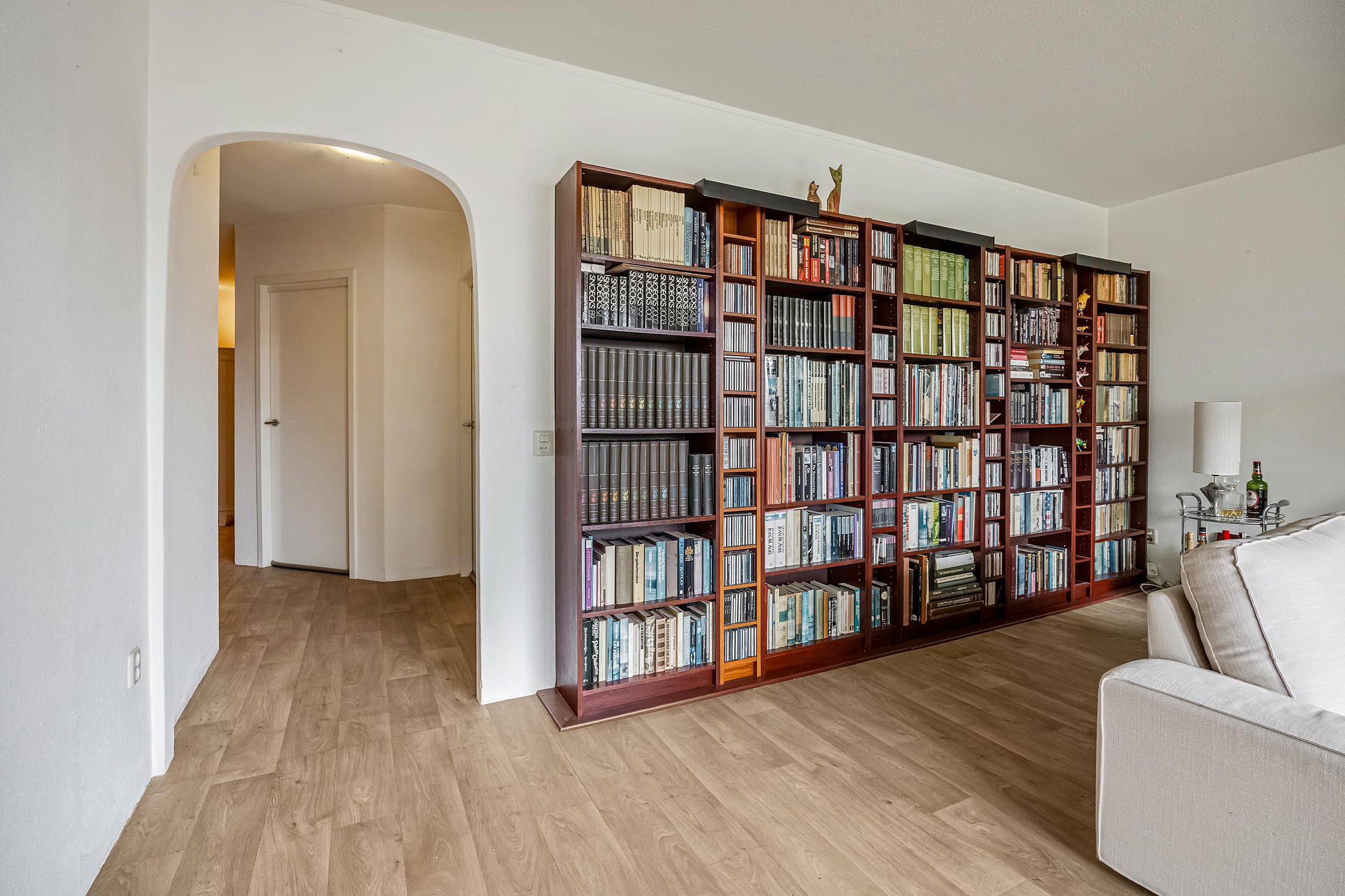 De woonkamer bereik je eveneens vanuit de hal. Dankzij de grote raampartijen geniet je hier van een zee aan natuurlijk licht, waardoor de ruimte open en uitnodigend aanvoelt.