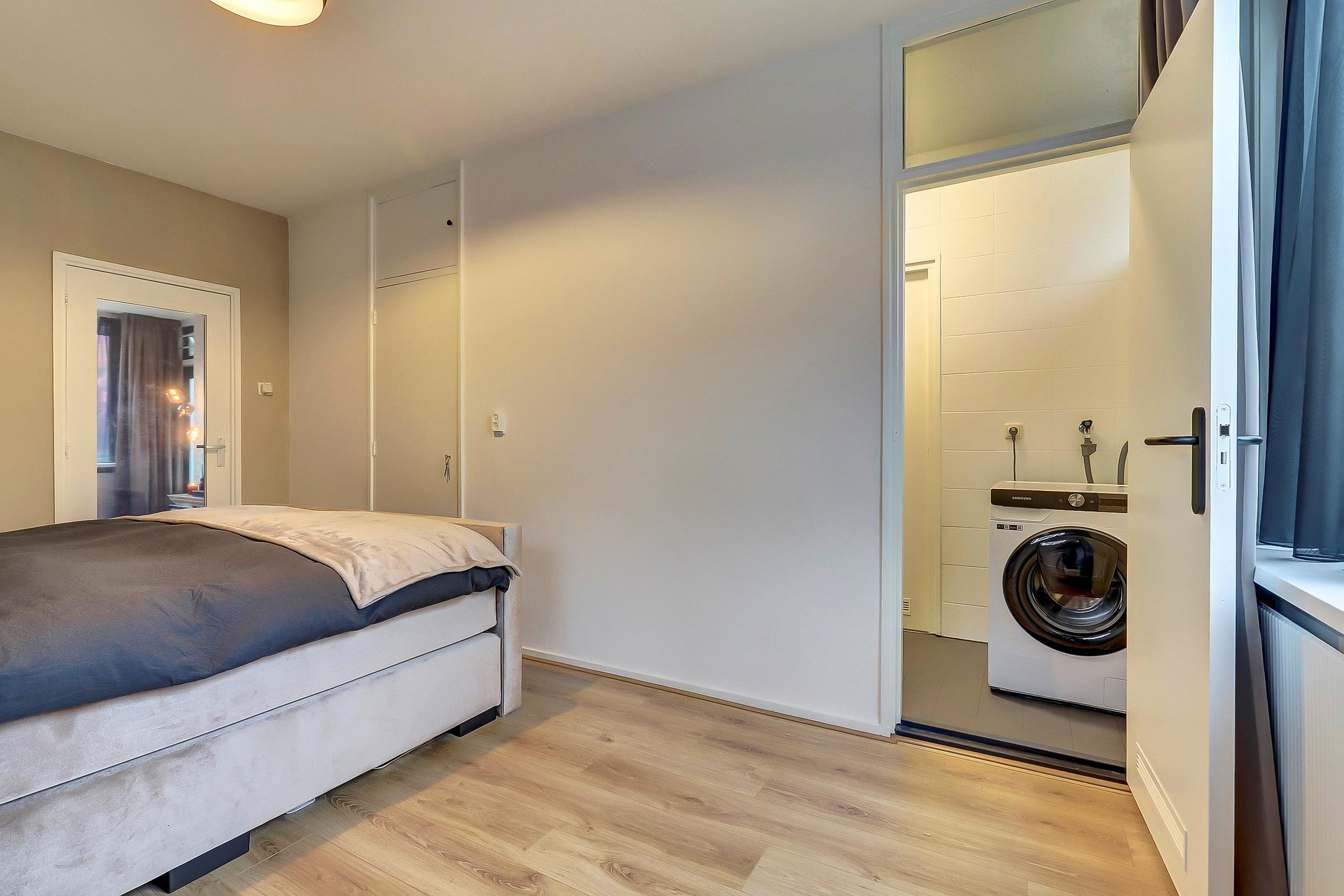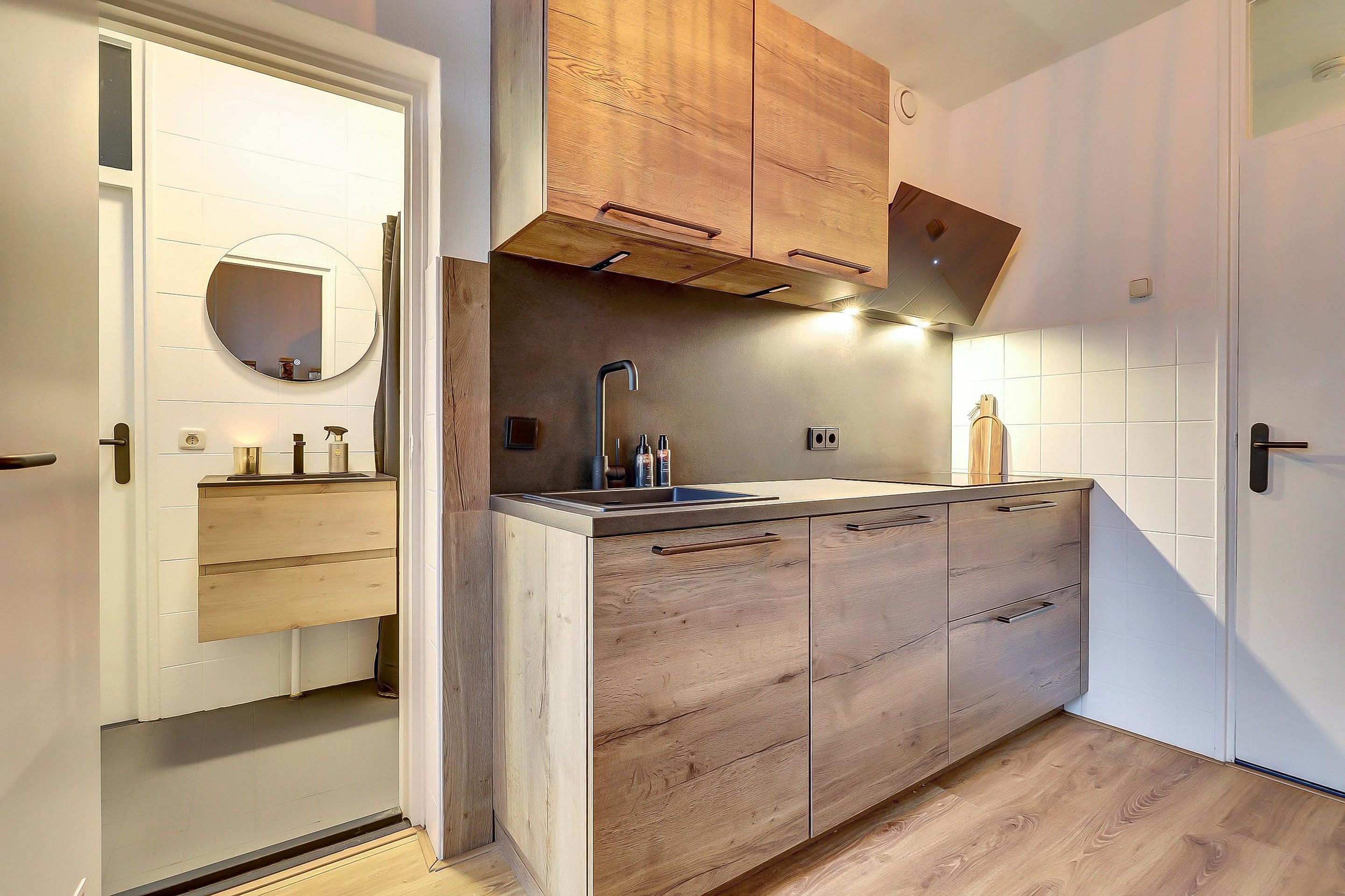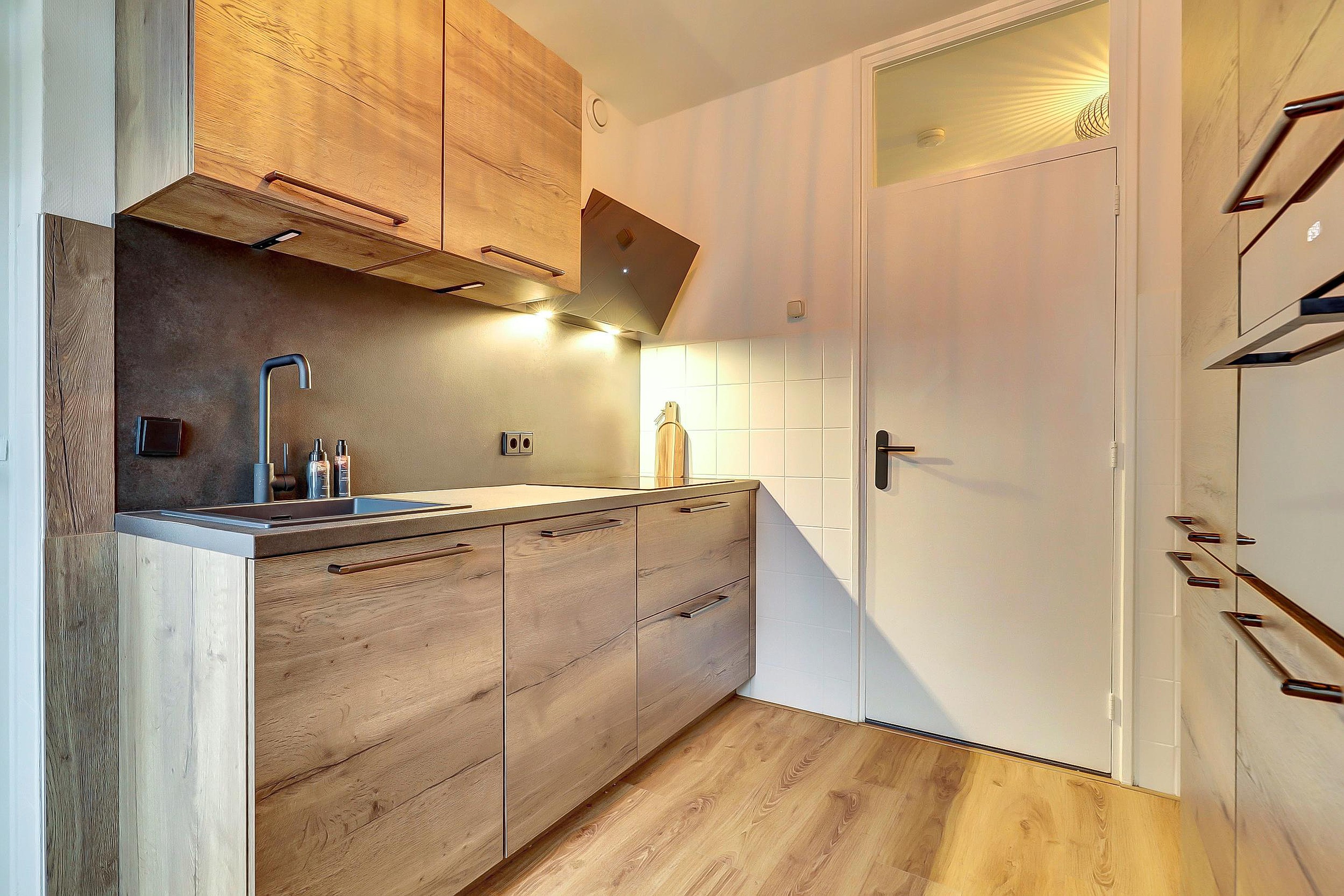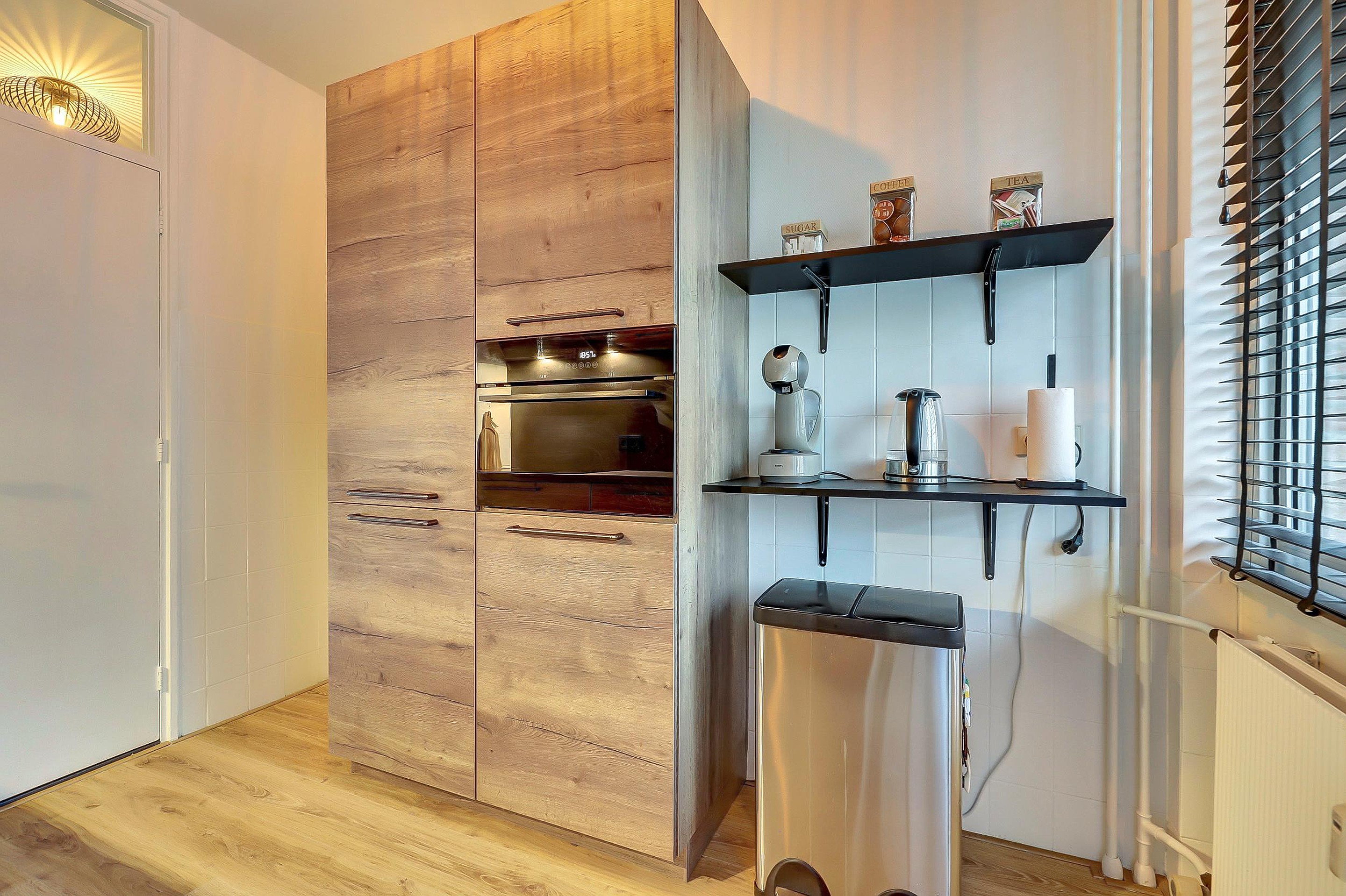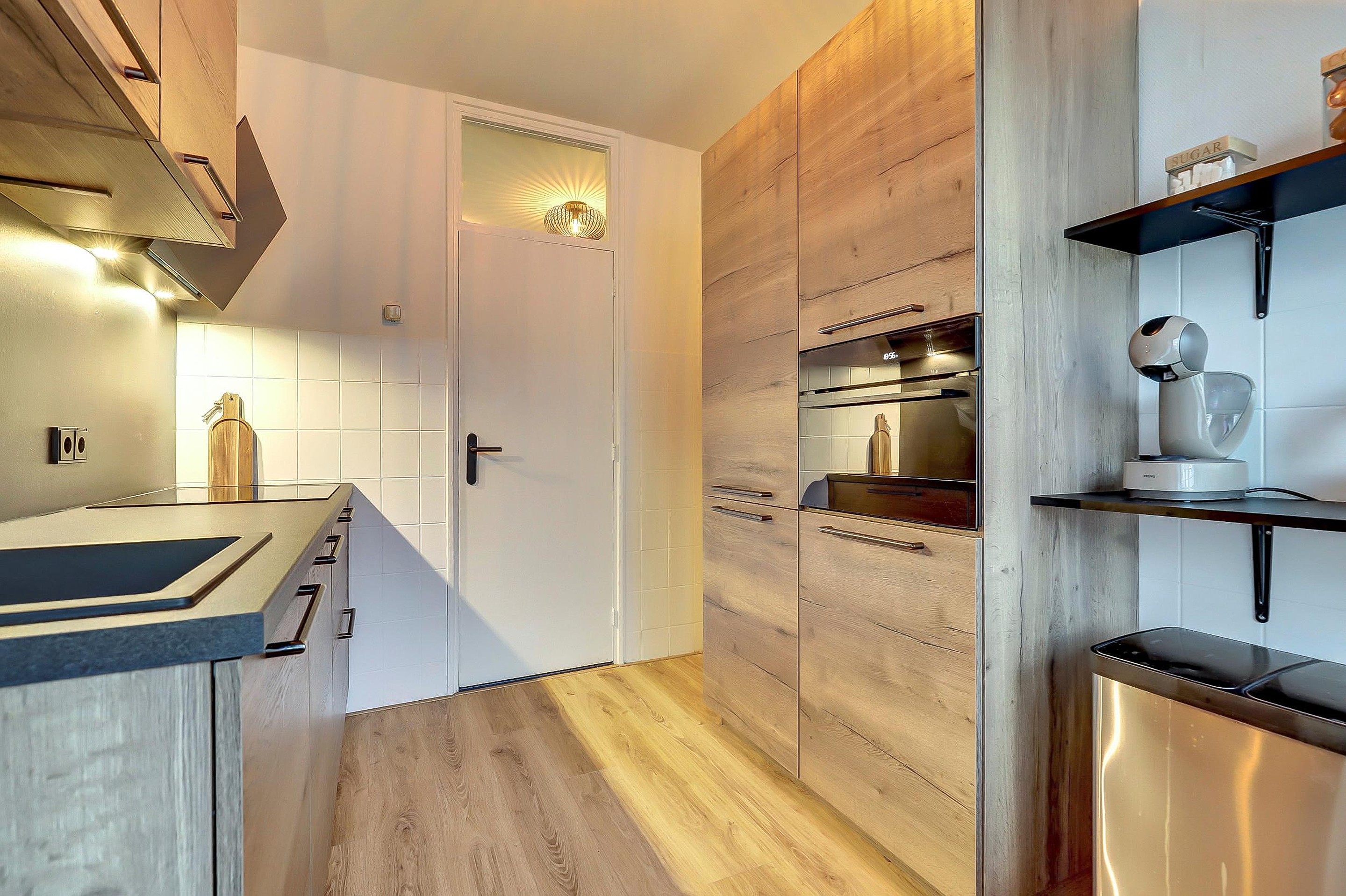 De moderne en fraaie keuken, geplaatst in 2023, is van alle gemakken voorzien en beschikt over een spoelbak, inductiekookplaat, afzuigkap, combimagnetron, vaatwasser en een koel-/vriescombinatie. Vanuit de keuken heeft u toegang tot het balkon aan de voorzijde. Zowel vanuit de keuken als vanuit de grote slaapkamer is de badkamer bereikbaar.