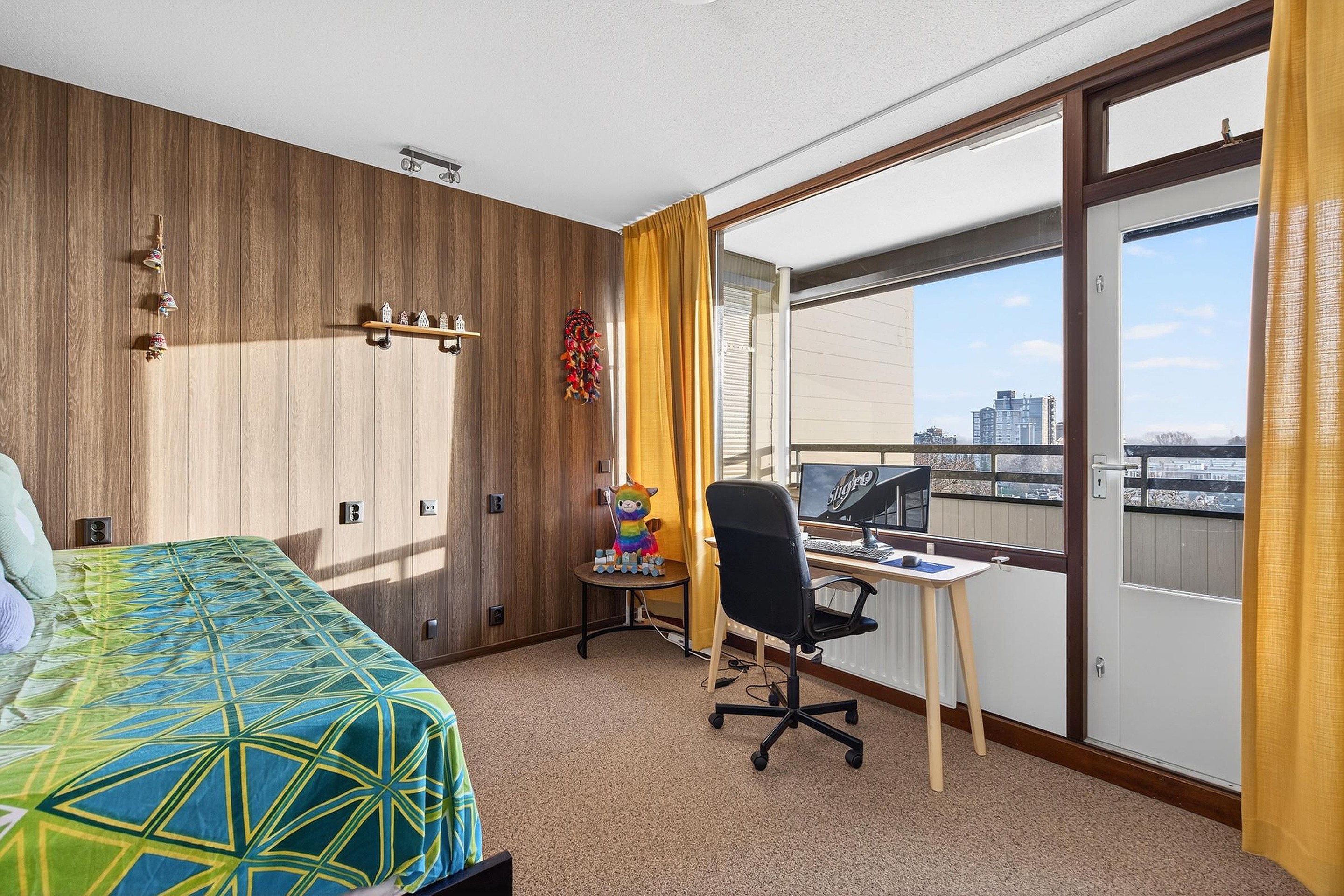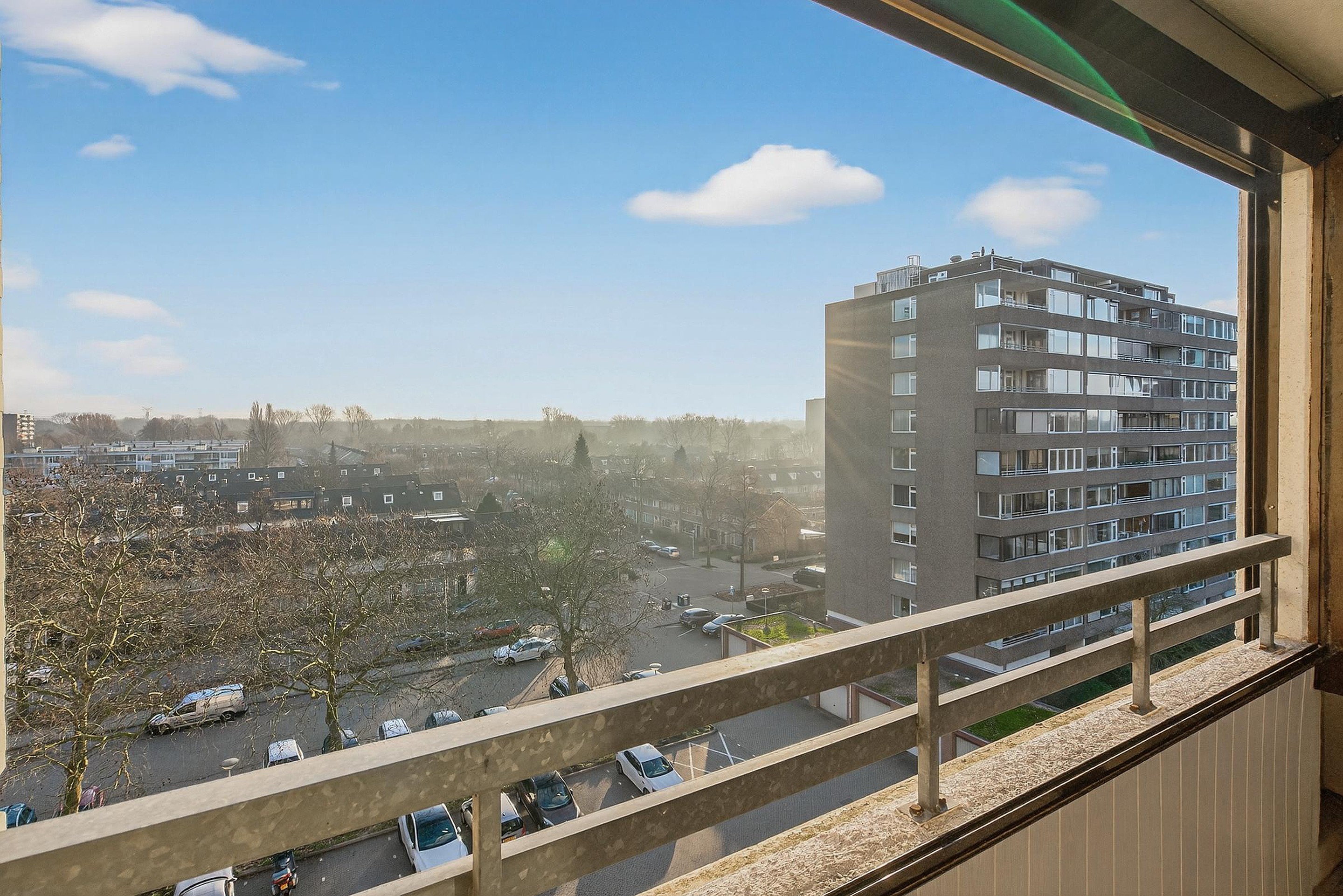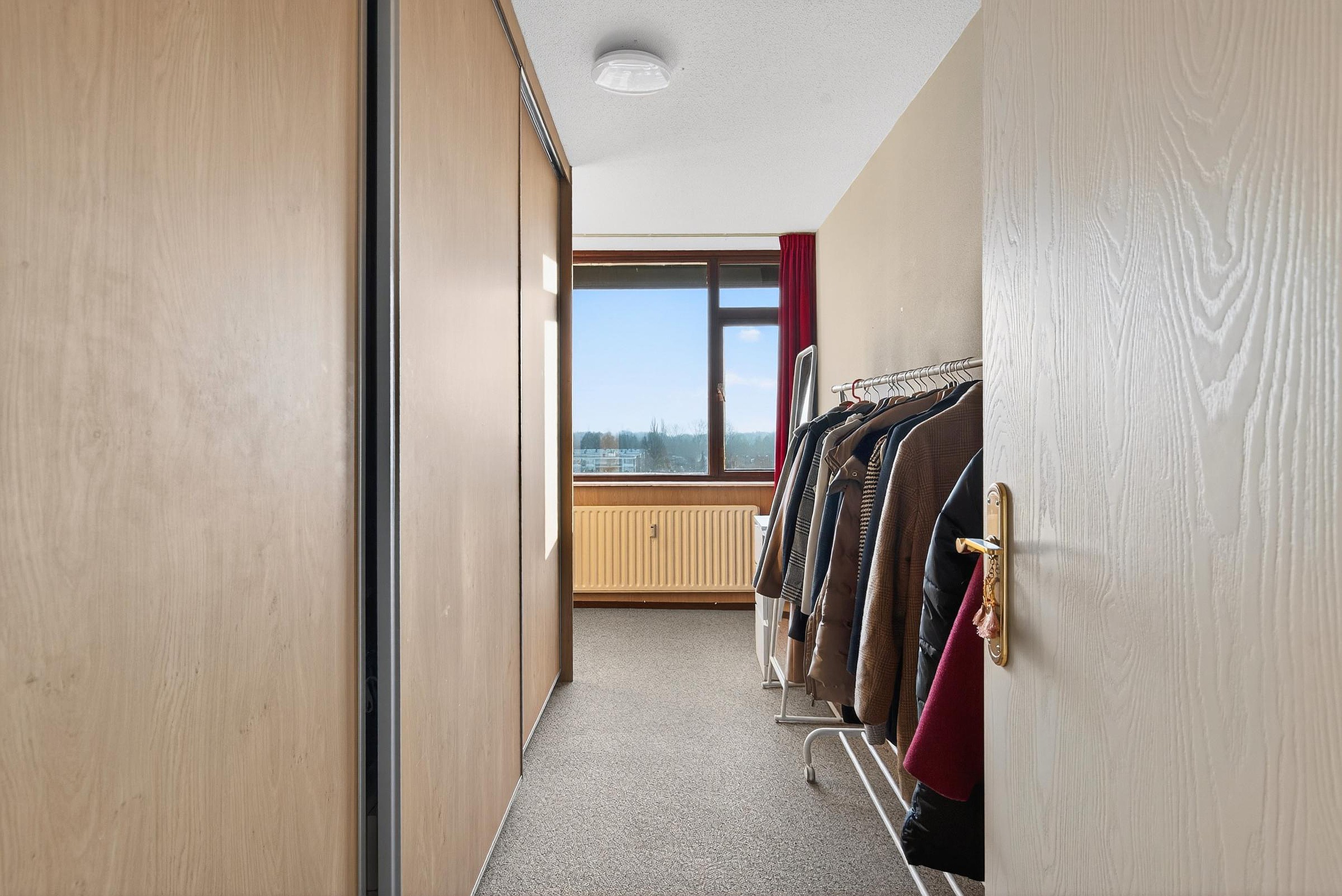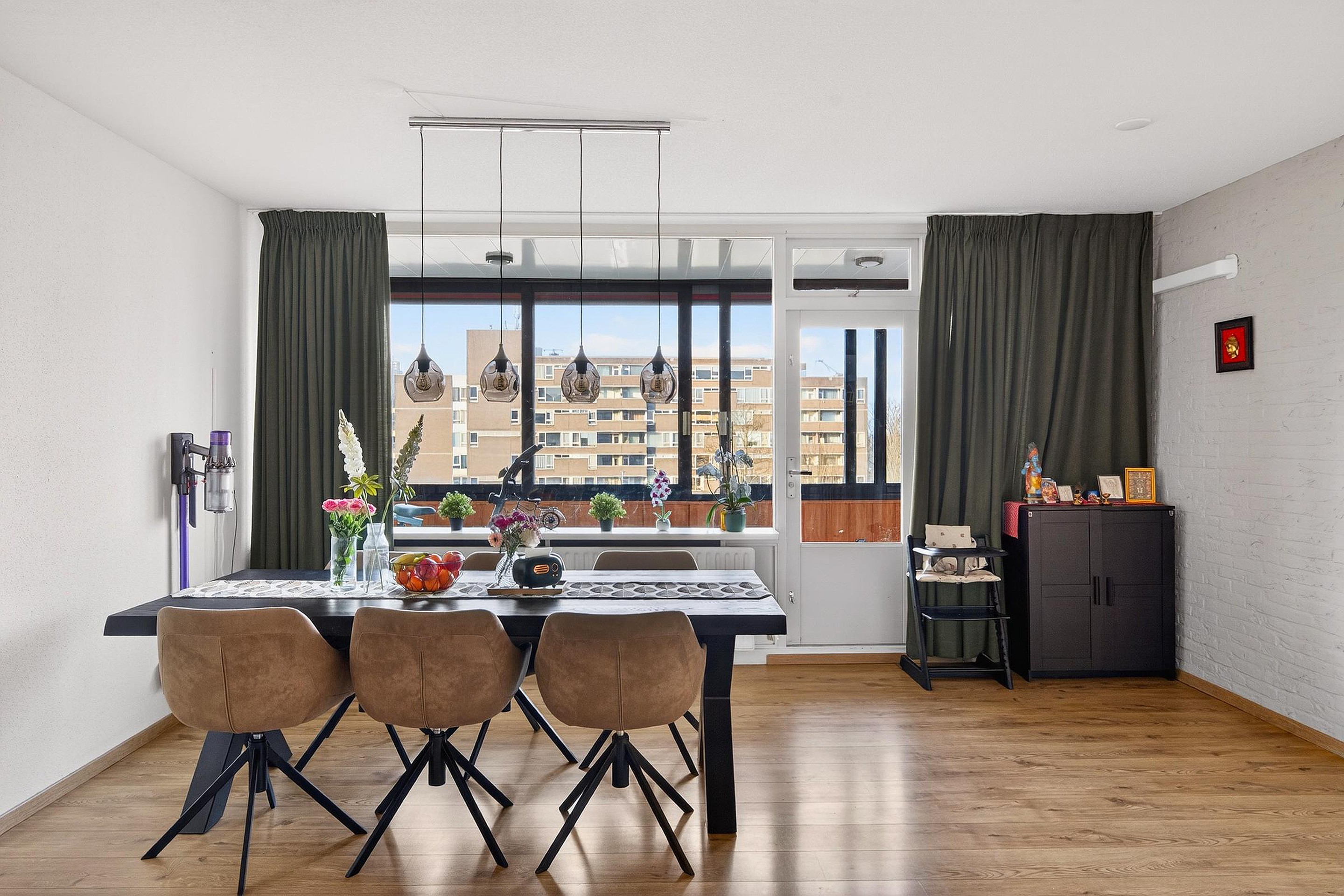 De woonkamer is ruim en beschikt over grote raampartijen, die zorgdragen voor een fraaie lichtinval en een fraai en vrij uitzicht. De woonkamer beschikt tevens een airco-unit hetgeen met name in de zomer prettig is omdat het appartement op het zuidwesten georiënteerd is. De airco kan ook verwarmen.
