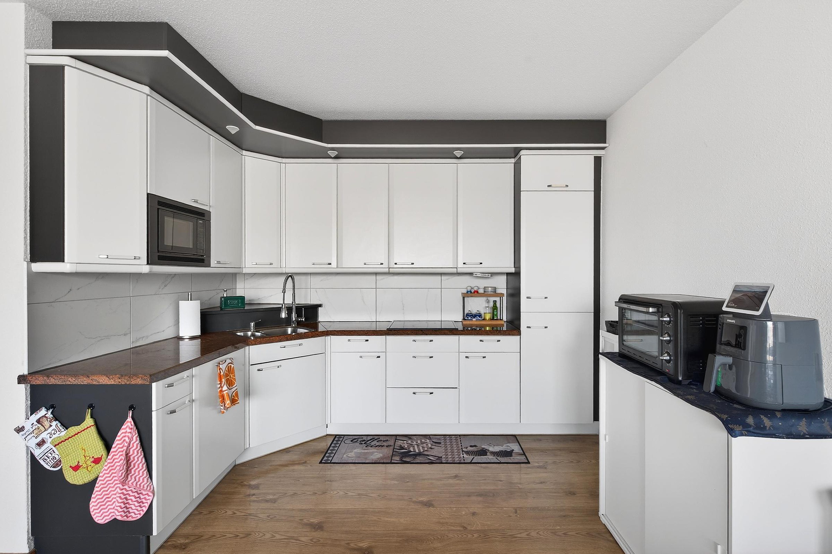 Vanuit de wooneetkeuken is de loggia bereikbaar. Deze is afgesloten door schuiframen en zomers tot een heerlijk balkon kan dienen.