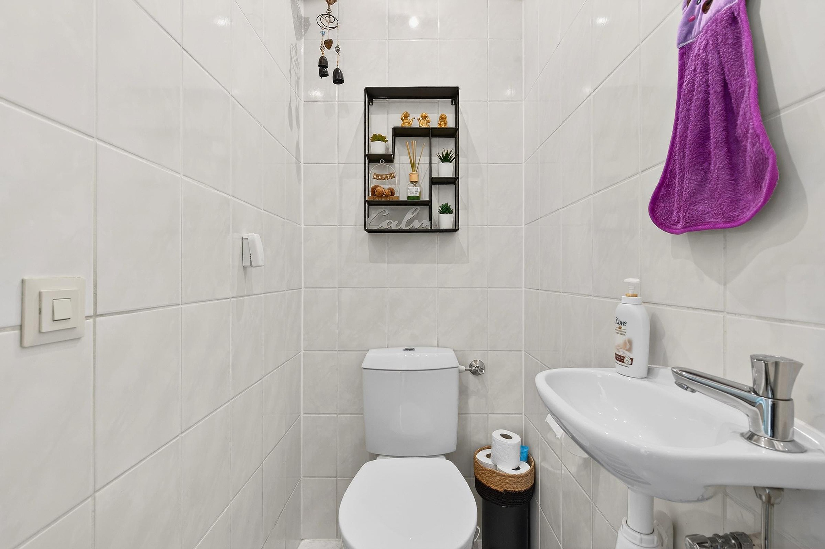 Het separate toilet is zowel het private toilet alsook voor eventuele gasten. Ook deze ruimte is geheel betegeld en voorzien van een fonteintje.